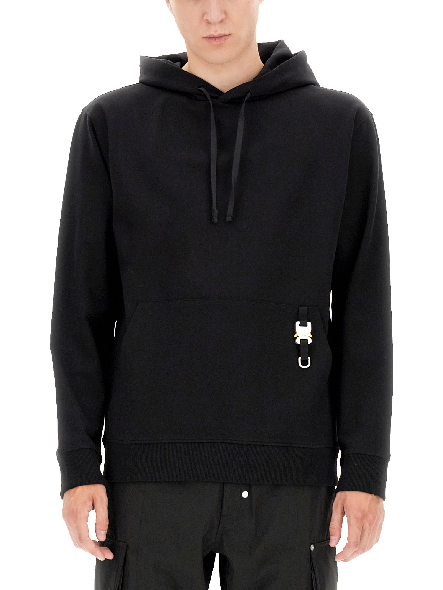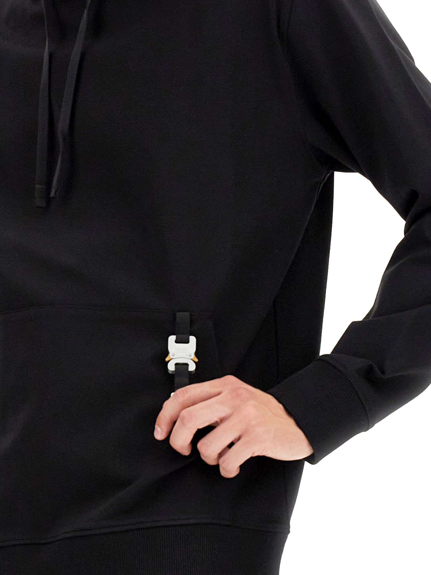 Introducing 1017 Alyx 9SM’s sleek and stylish black viscose blend sweatshirt. Designed with a drawstring hood, this sweatshirt effortlessly combines comfort and fashion. Made from high-quality materials, it guarantees durability and a perfect fit. Elevate your wardrobe with this versatile piece that exudes confidence and sophistication.