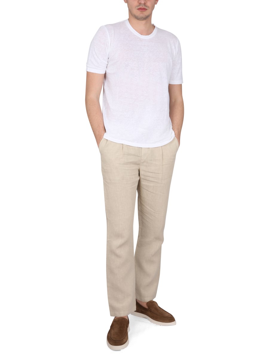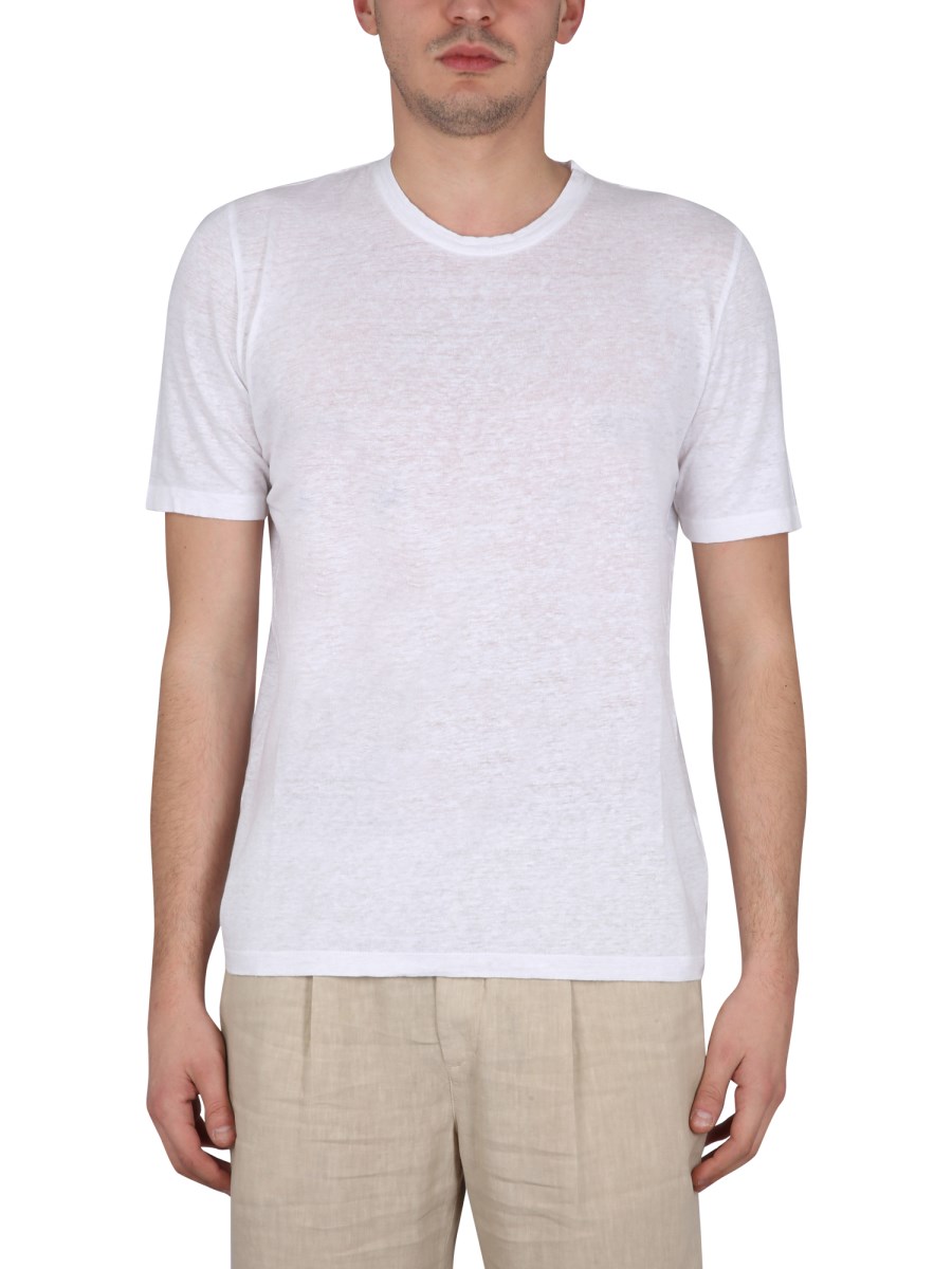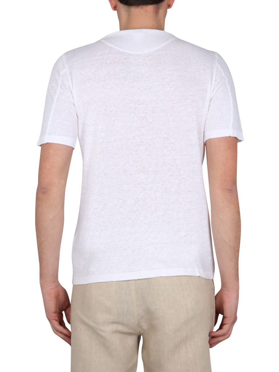 For any casual day, this Men's T-shirt from 120% Lino is ideal. Half sleeves are linen, and the crew neck is fitting. It works great as a base layer or for layering. This linen T-shirt is a go-to for casual wear because to its fabric's rich linen content and discreet half-sleeves. It is ideal for warm days because the thin fabric is cosy and delicate to the touch.