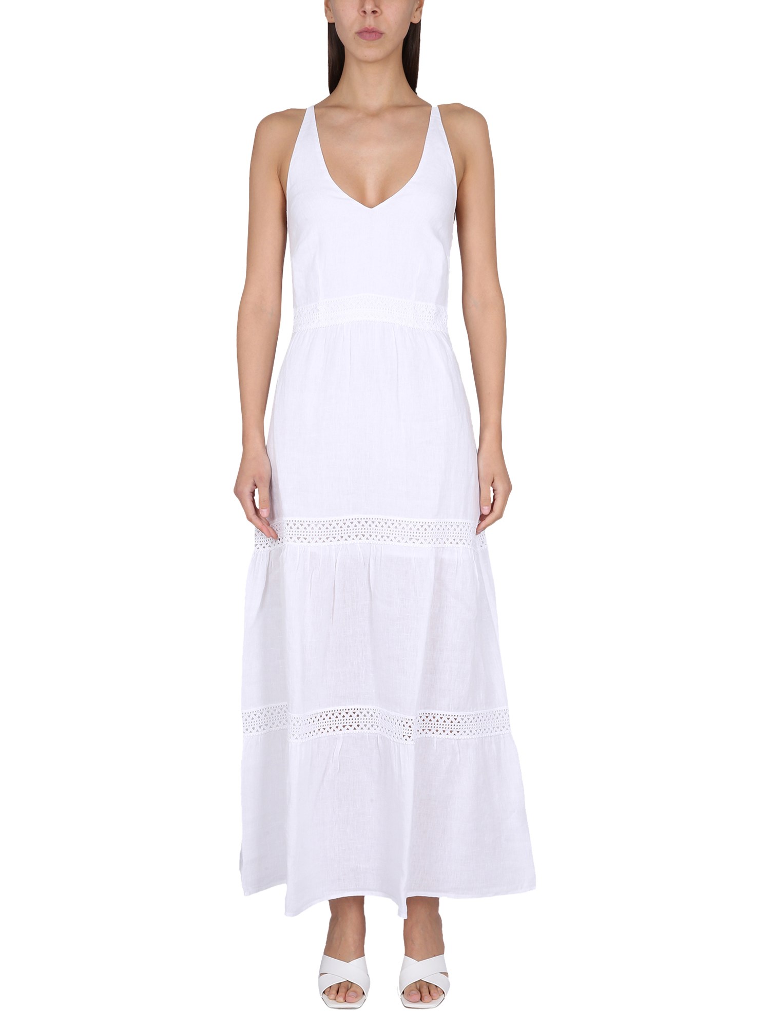 The dress from 120% Lino is a flattering silhouette that is both feminine and fashionable. The “ruffles on bottom” make this dress look elegant and stylish. The beautiful lace-up closure and adjustable straps make this dress easy to wear and versatile. The ruffles on the bottom add a fun touch and make this dress perfect for a night out on the town.
