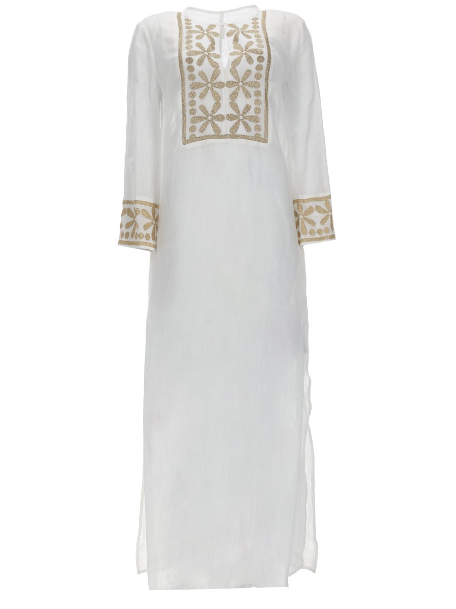 ABITO IN LINO CON DECORAZONI FLOREALI