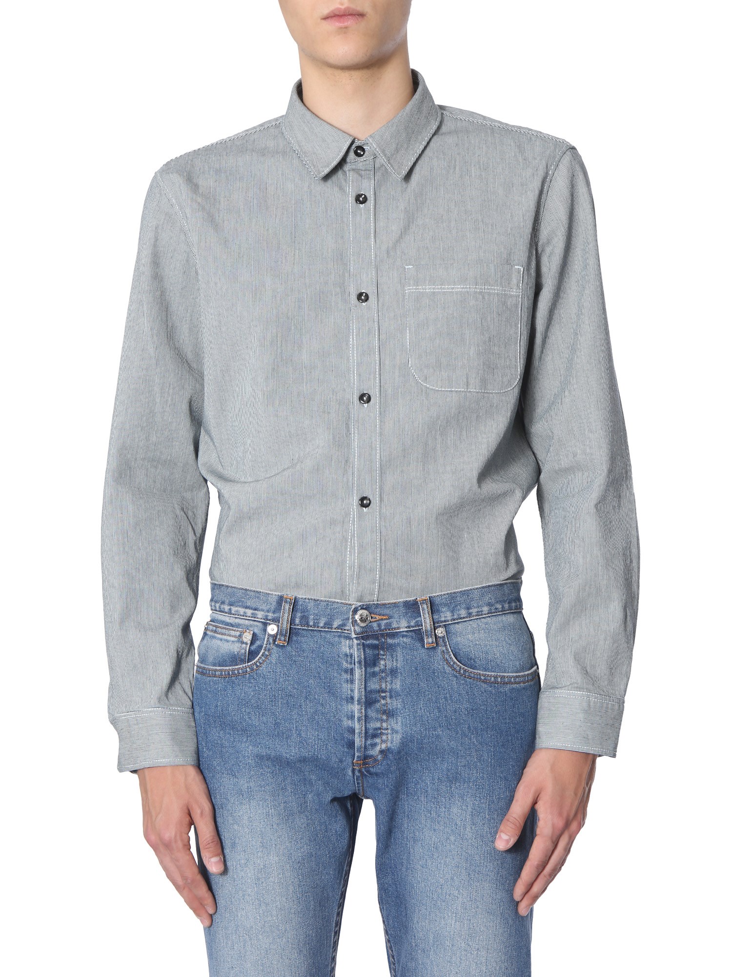 Give your formal wardrobe a stylish update with this trek shirt brought to you by A.P.C. The shirt is made from a blend of cotton and elastane that makes it durable. It features a classic collar design with button-down closure. It comes with a plain and simple front panel that allows you to pair it with any bottom wear in your closet.