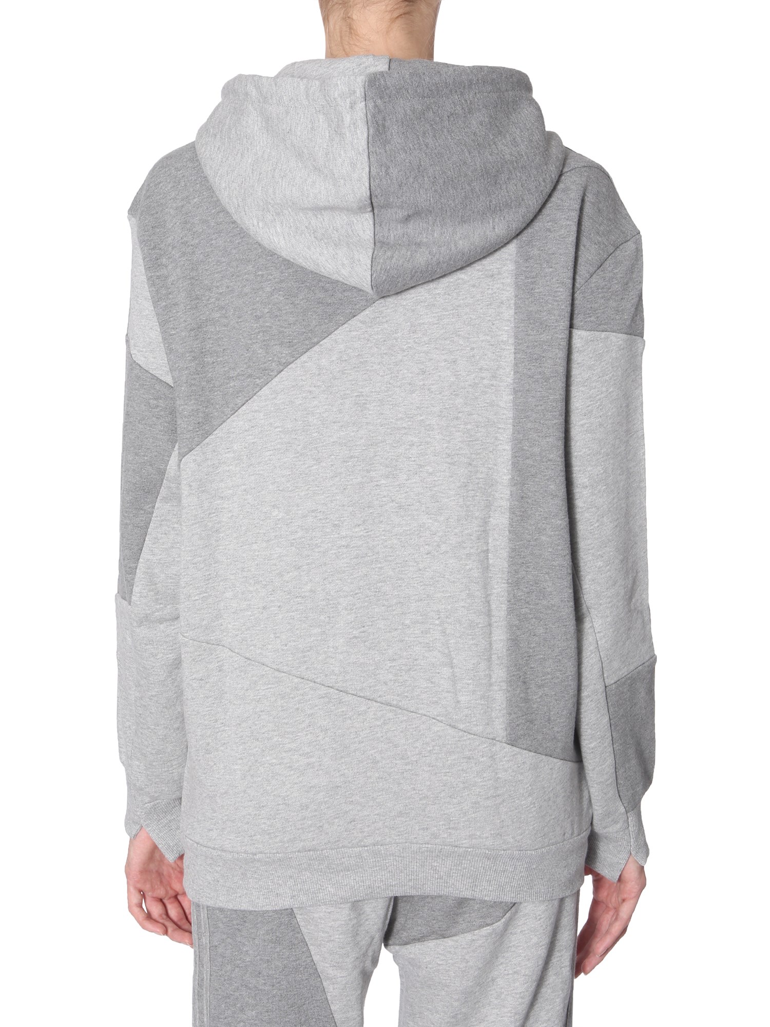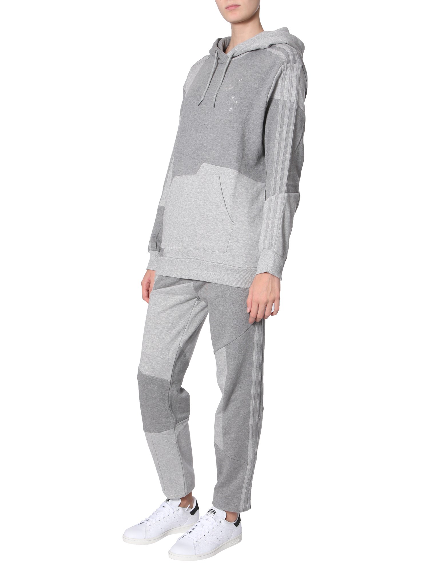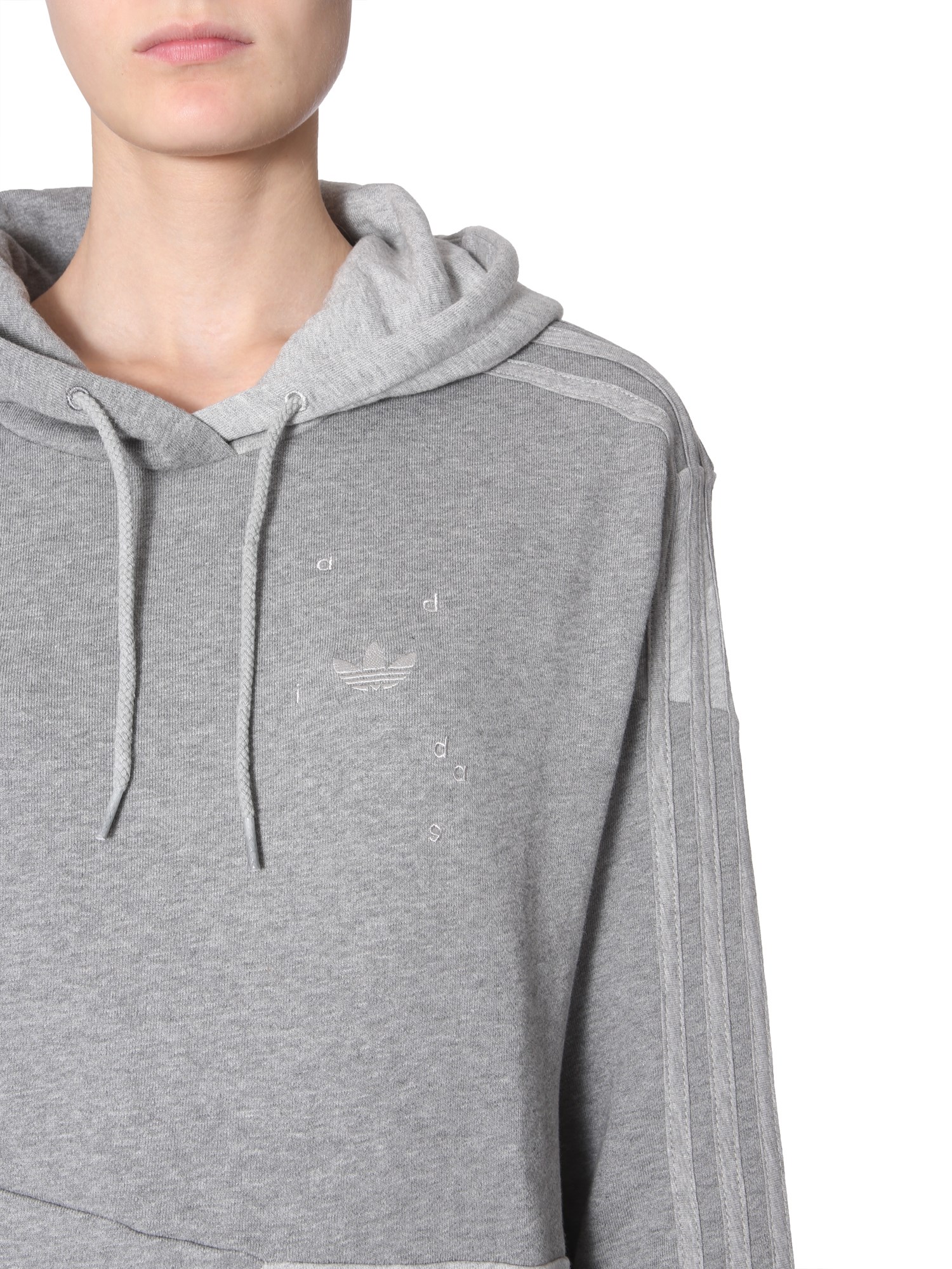 Upgrade your winter wardrobe with this hooded sweatshirt from Adidas Originals By Danielle Cathari. Its unique and stylish design features an asymmetric stitched pattern with matching stripes. The ribbed hem and cuffs add a textural contrast while the front pocket will let you keep your hands warm. Team it with a pair of track pants and sports shoes for a smart look.