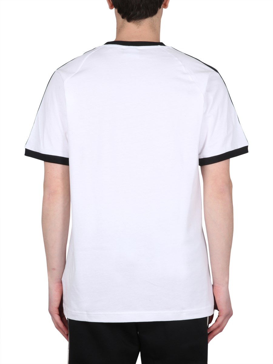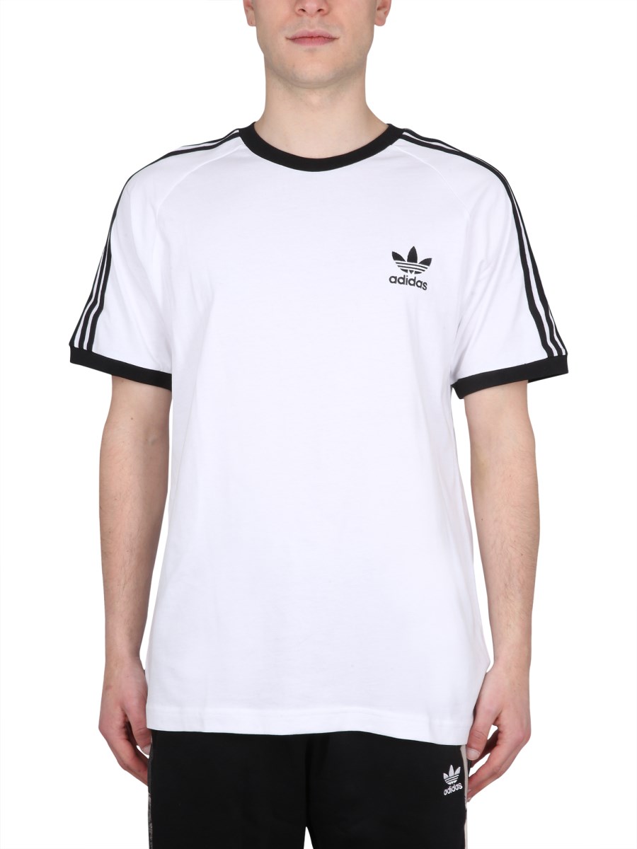 Keep it comfy and stylish by wearing the stylish T-shirt from Adidas Originals. Designed with a classic crew neckline with short sleeves, the breathable tee offers comfort all day long. The straight hemline offers a nest and polished look while the signature three-stipe design makes a statement. It has a comfortable fit and pull-on style.