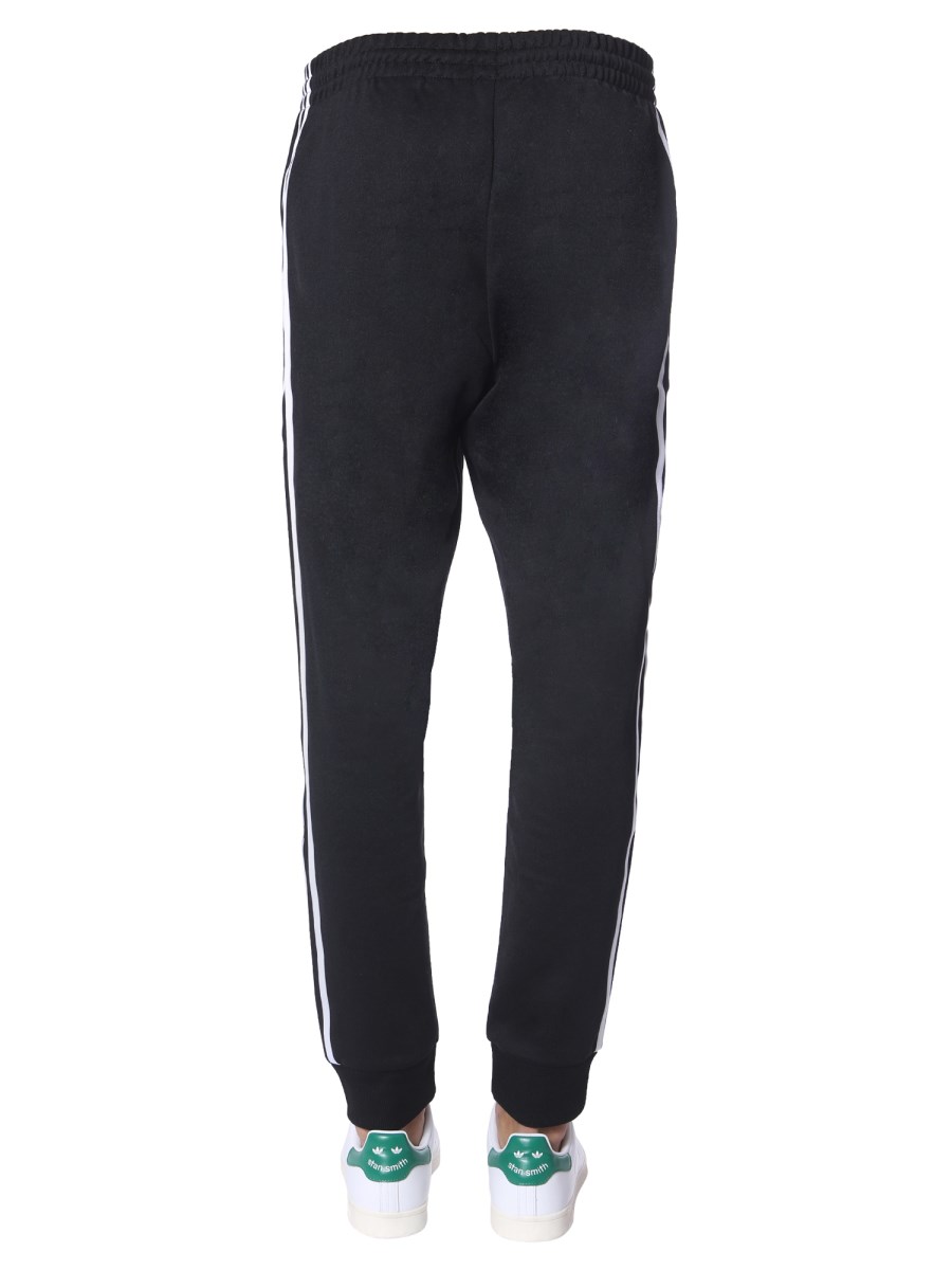 Go for the Adidas Originals jogging pants with a logo and side bands for a perfectly relaxing companion to your everyday ventures. These classic trousers are made from a comfortable and breathable fabric that comes with a smooth finish inside out. Plus, the elasticated waistband and ankles facilitate an adjustable fit.