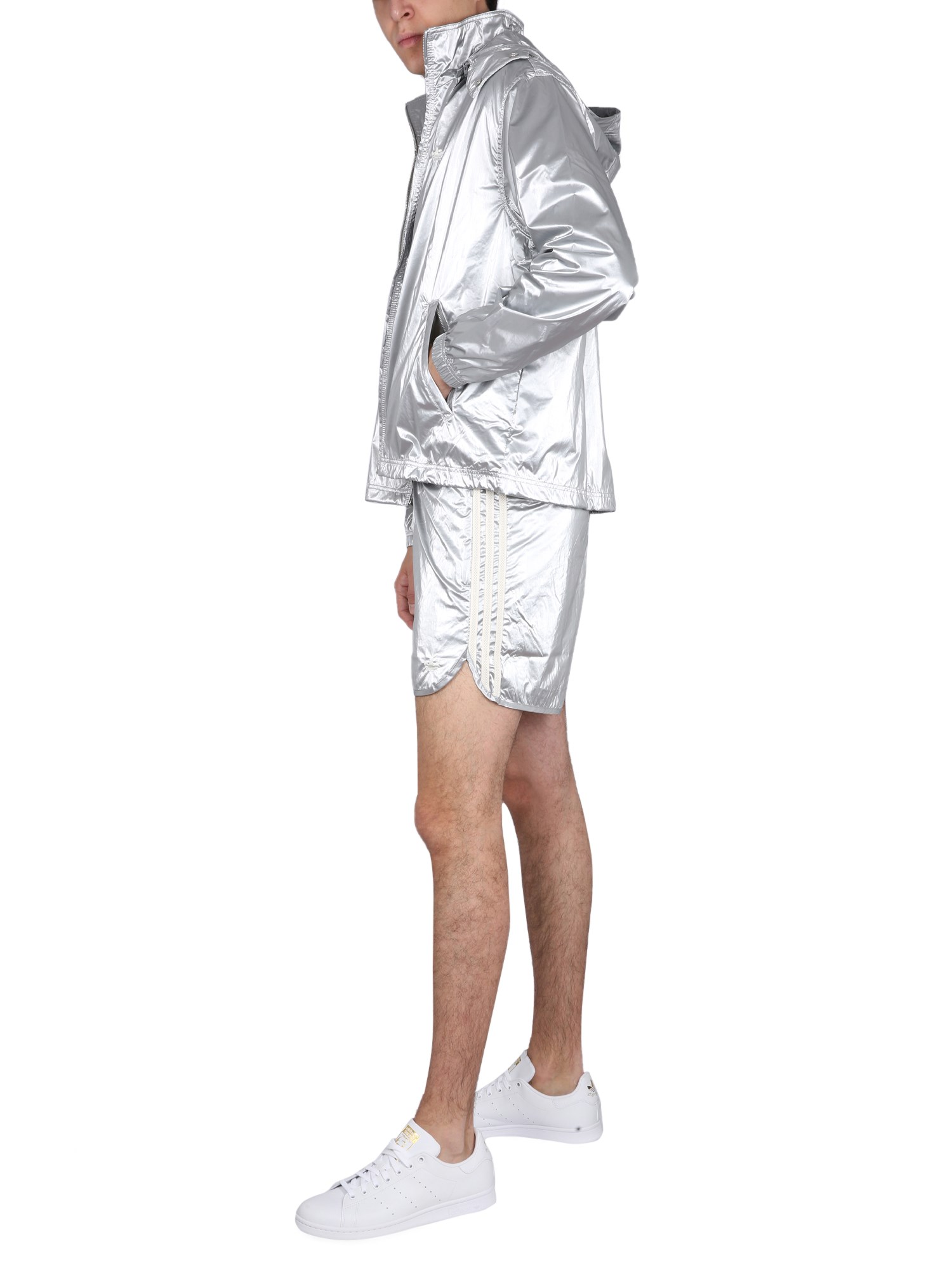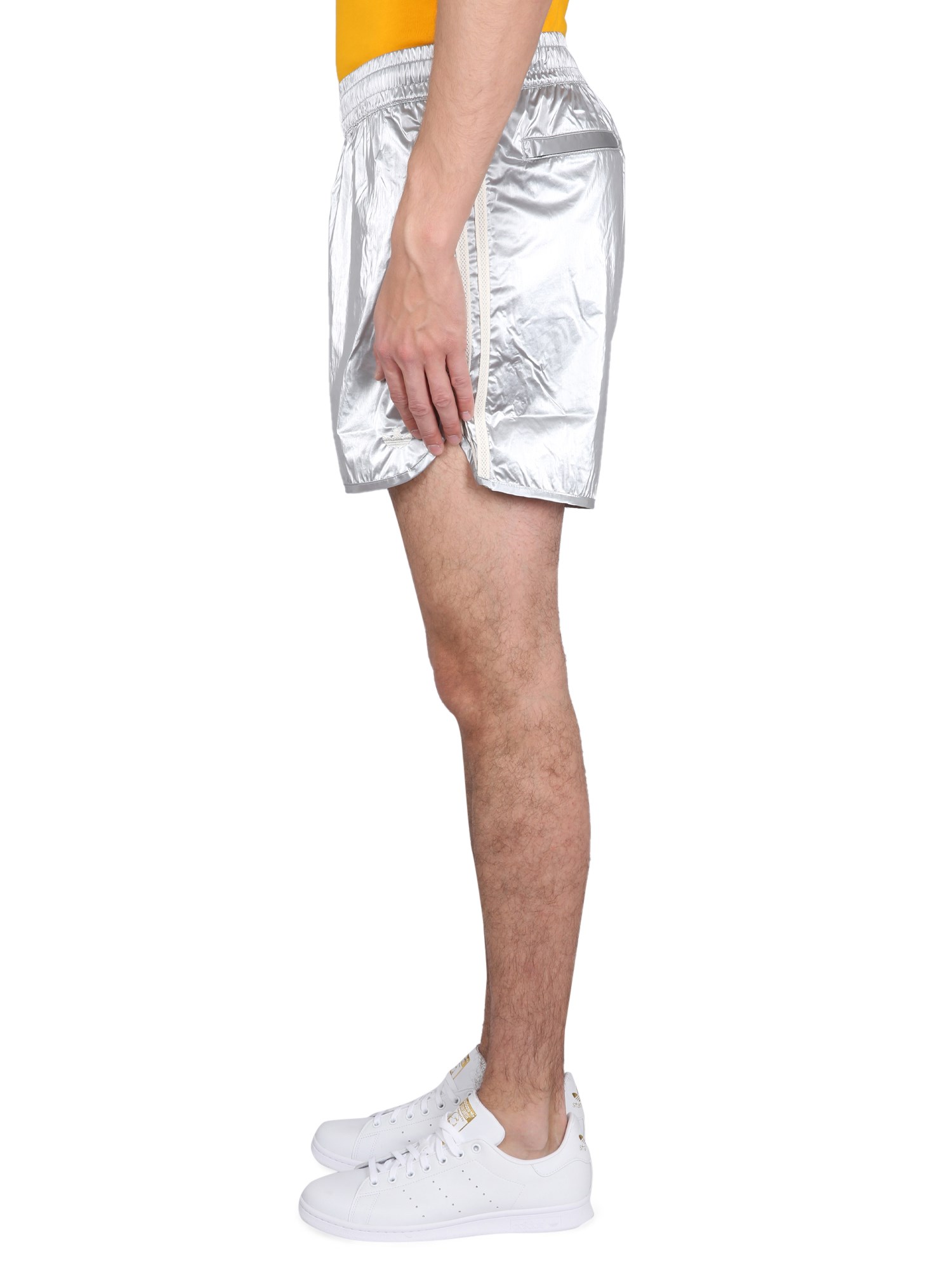 The Silver Shorts shimmer with a luxurious coated nylon. The silhouette is a classic — reimagined here in a futuristic hue, and finished with Trefoil embroidery, the Wales Bonner logo and a drawcord-elastic waist.