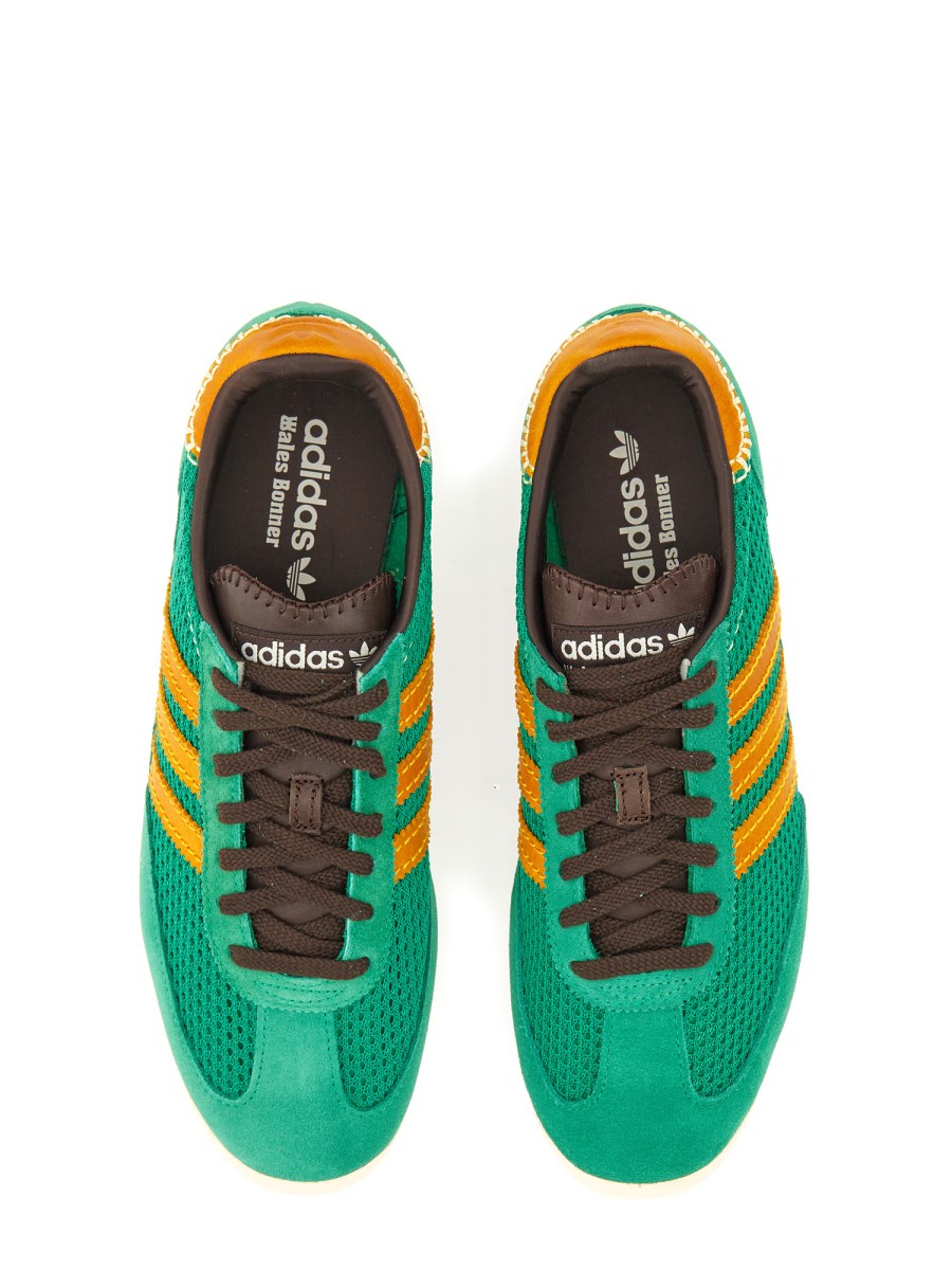 The SL72 shoes find one of adidas' iconic silhouettes animated with Wales Bonner's craft and storytelling. A knit mesh upper is detailed with aged leather on the 3-Stripes and heel to create an archival aesthetic while an EVA midsole adds softness and comfort.