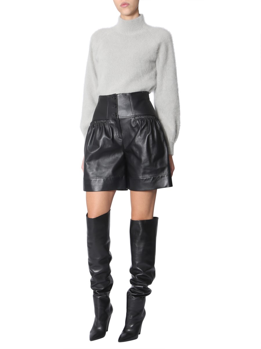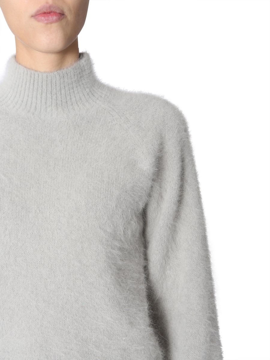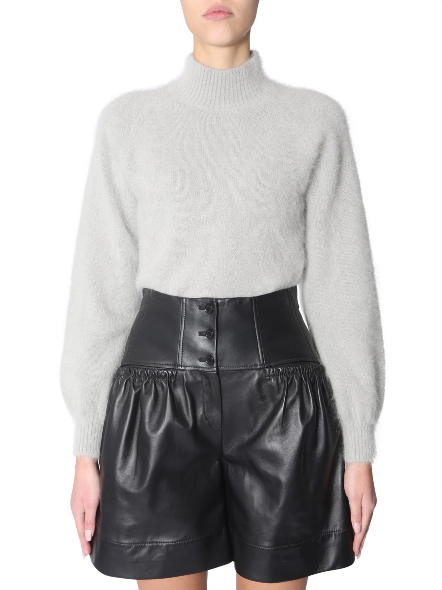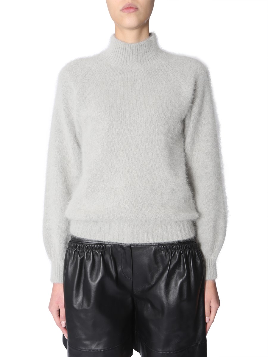 Angora is a lightweight knit sweater by Alberta Ferretti that is meant to offer soft, cold-weather comfort. Made with angora-rich fabric, the sweater features turtleneck and long sleeves for extra warmth. Its long silhouette can be tucked inside for a sleek look. Made in Italy, the sweater teams well with leather pants, skirts, and shorts.