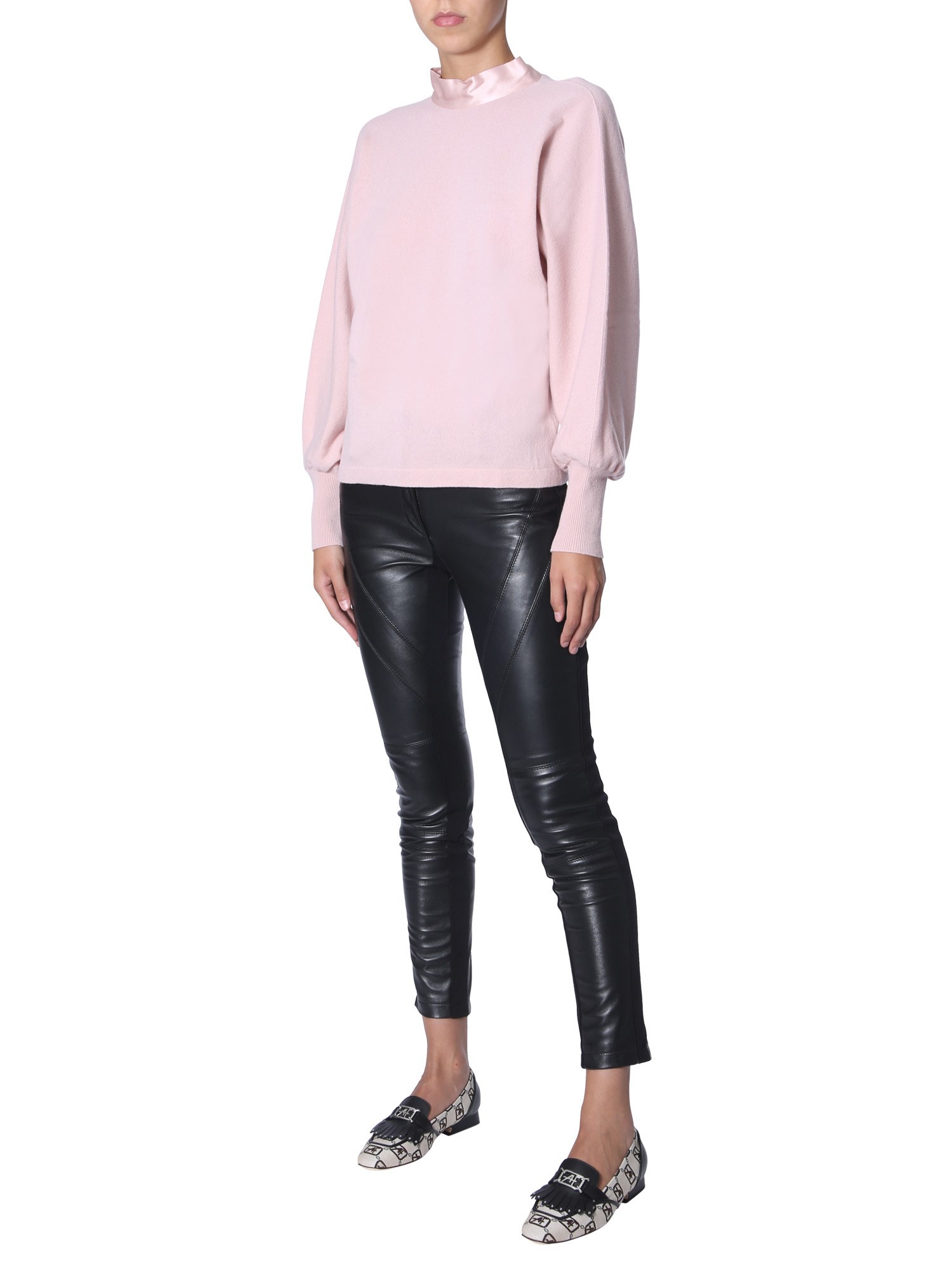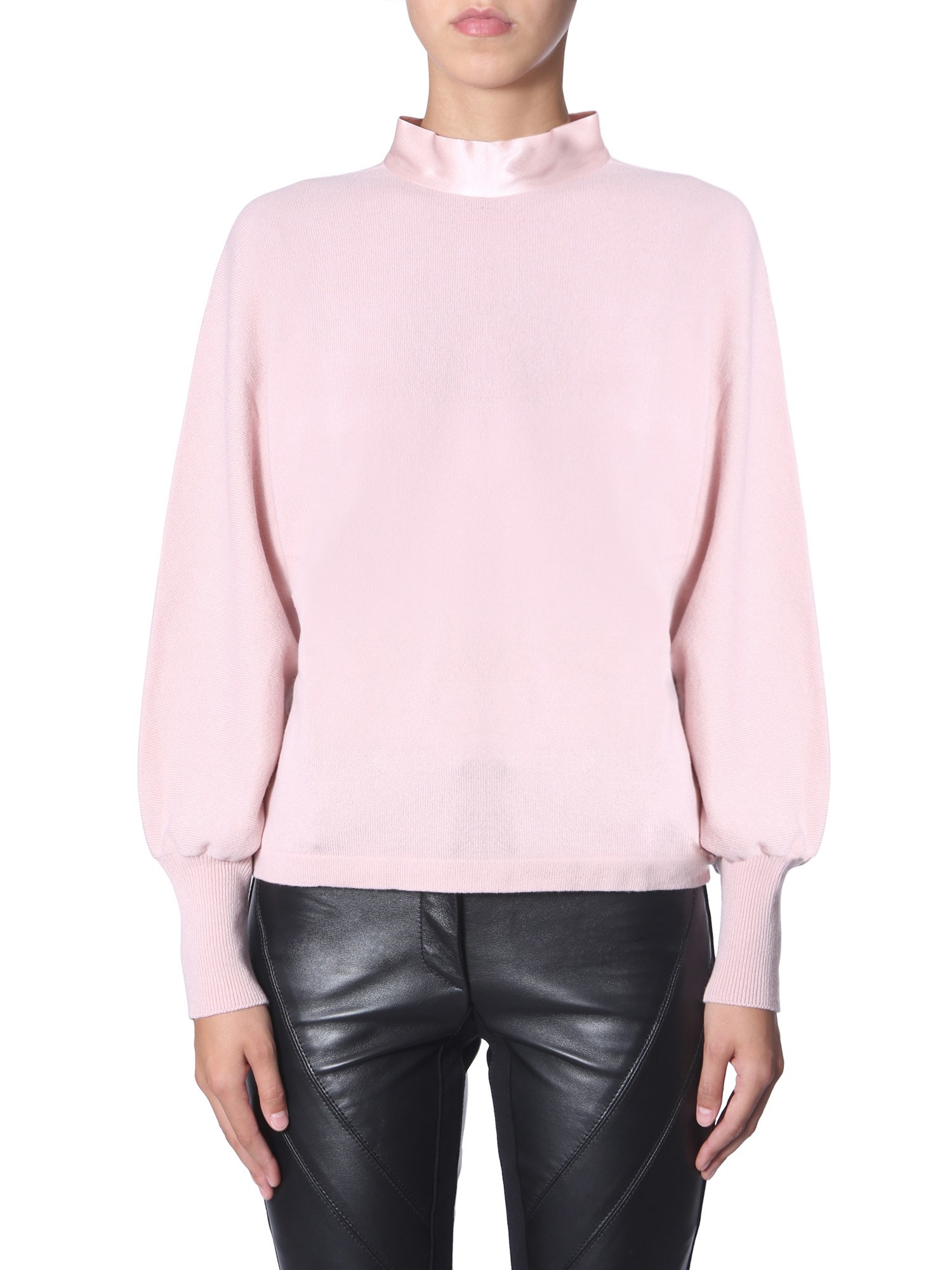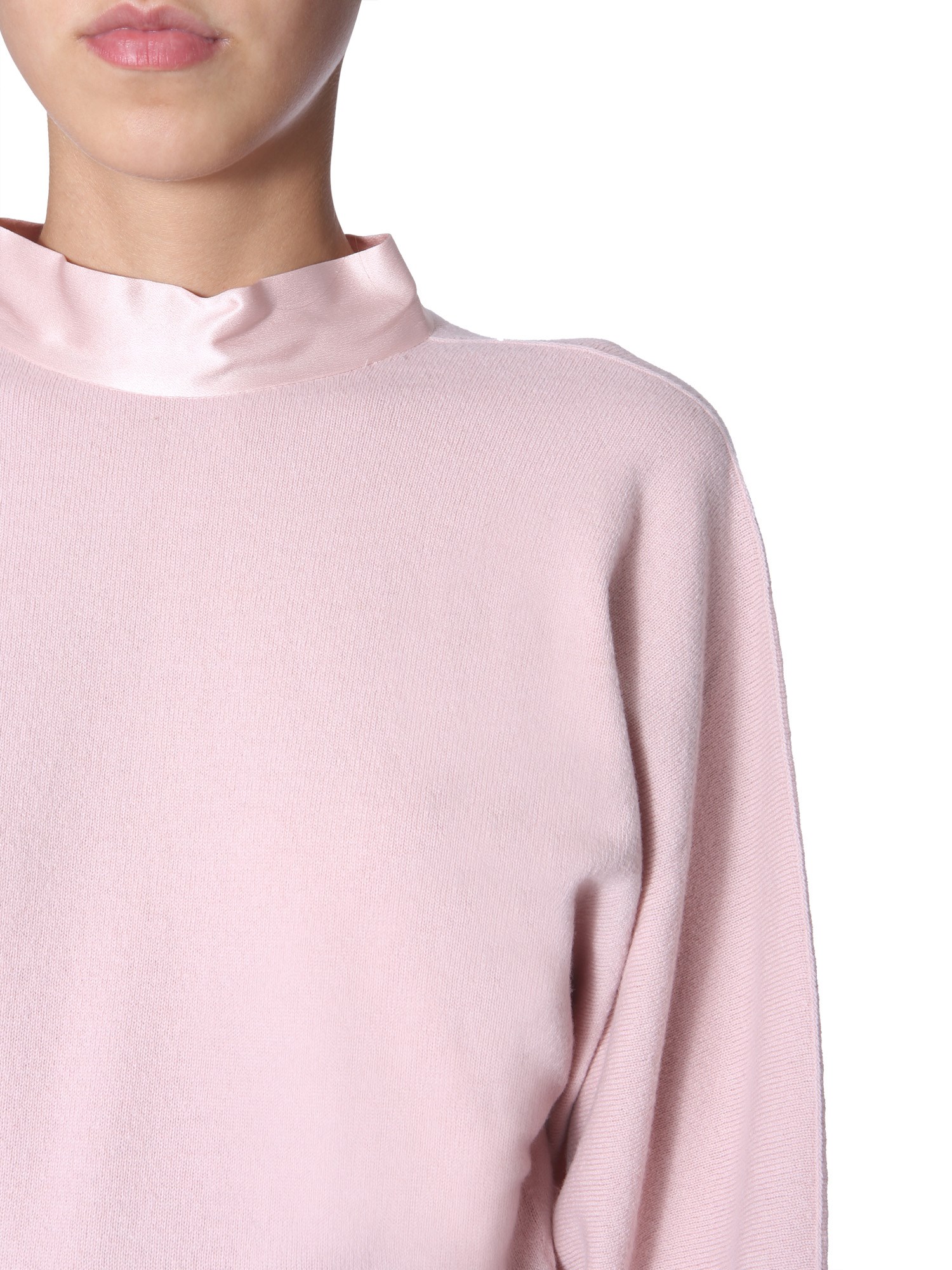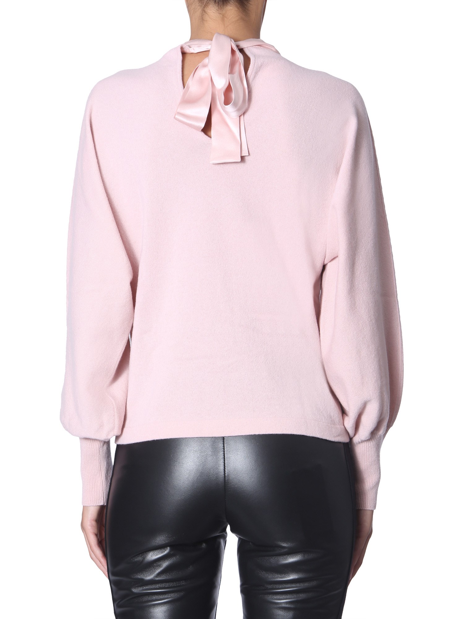 Look trendy and stay comfortable in the sweater from Alberta Ferretti. This sweater is made of 70% wool and 30% cashmere that feels soft to touch and keeps you warm. It has a silk bow at the back with drop neck that makes the top look attractive and stylish.