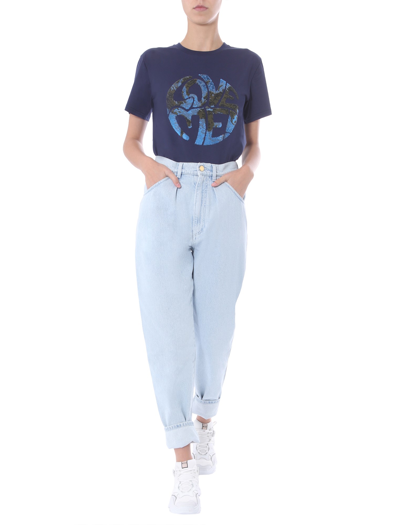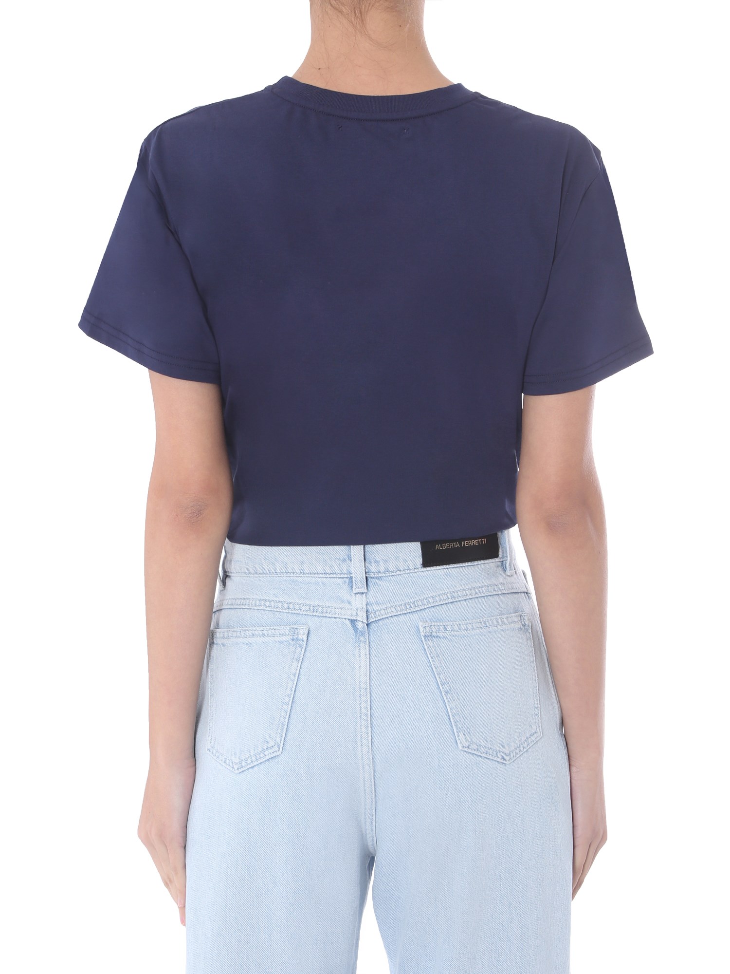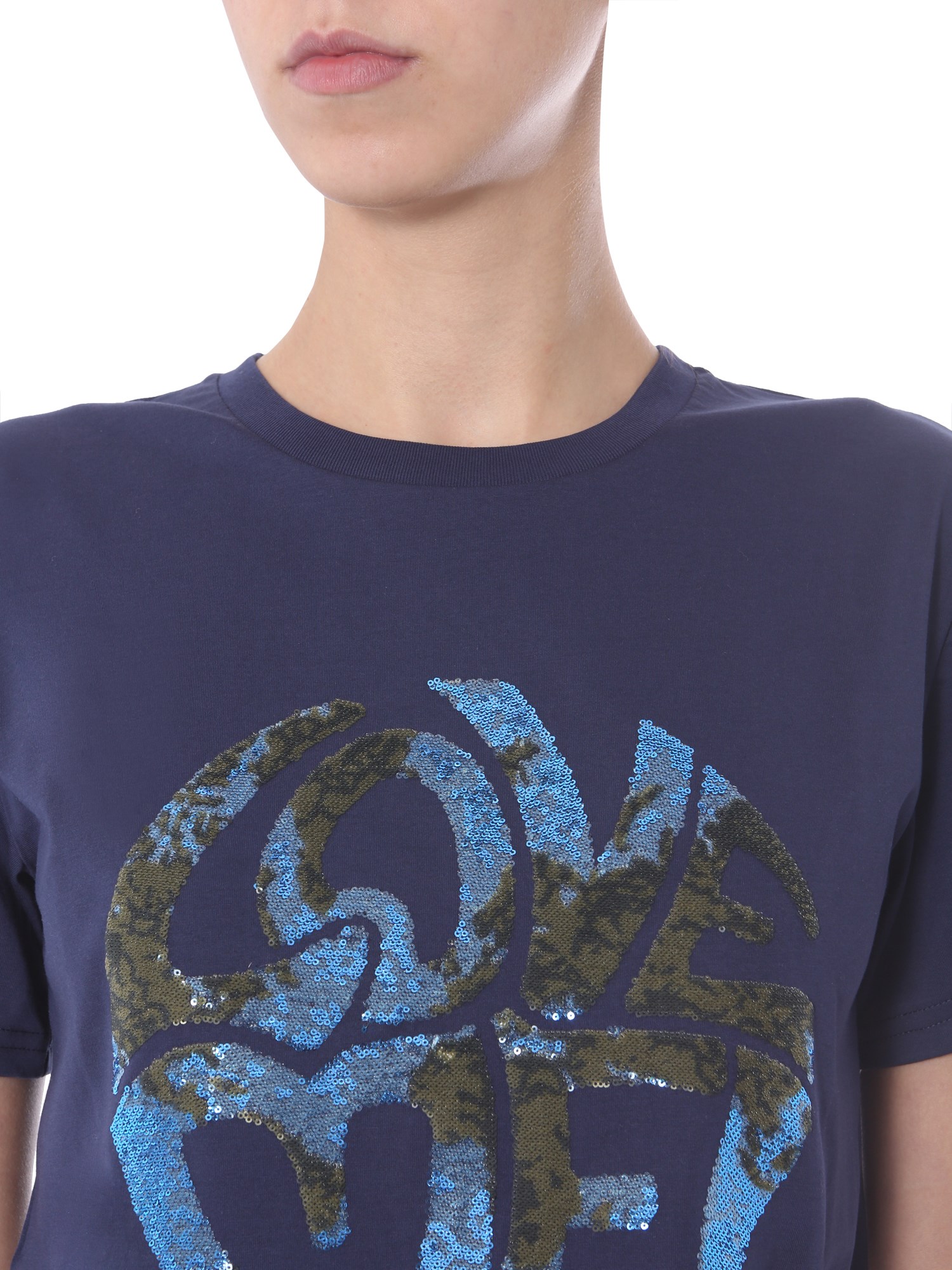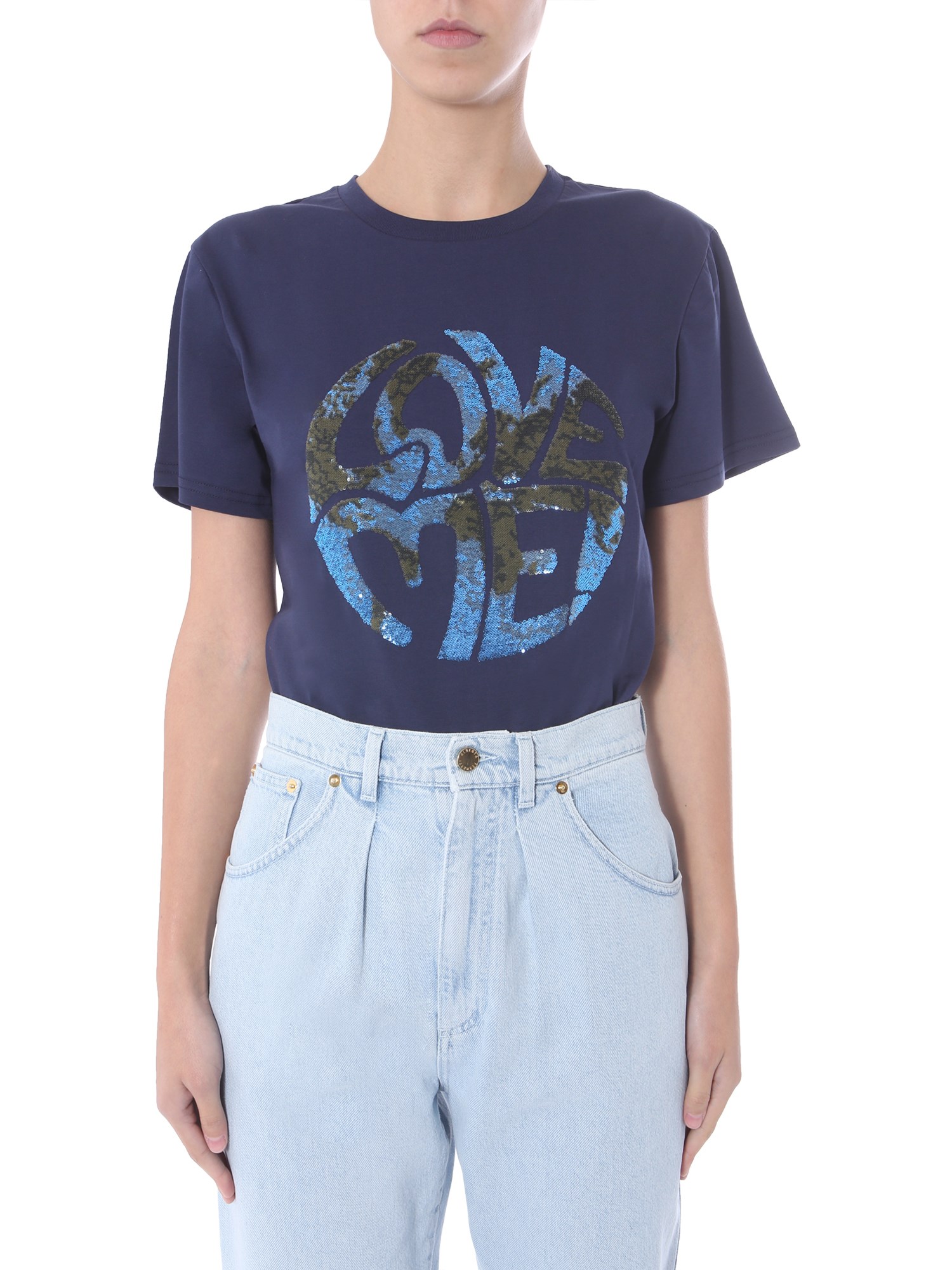 With shimmery sequin, this "love me" round neck T-shirt from Alberta Ferretti is sure to keep your fashion metre high. The pure cotton manufacture does not let you compromise with the comfort and breathability. It features a classic crew neck and shorts sleeves, perfect for casual hangouts with friend. Match it with your favourite jeans and sneakers for lunch date.