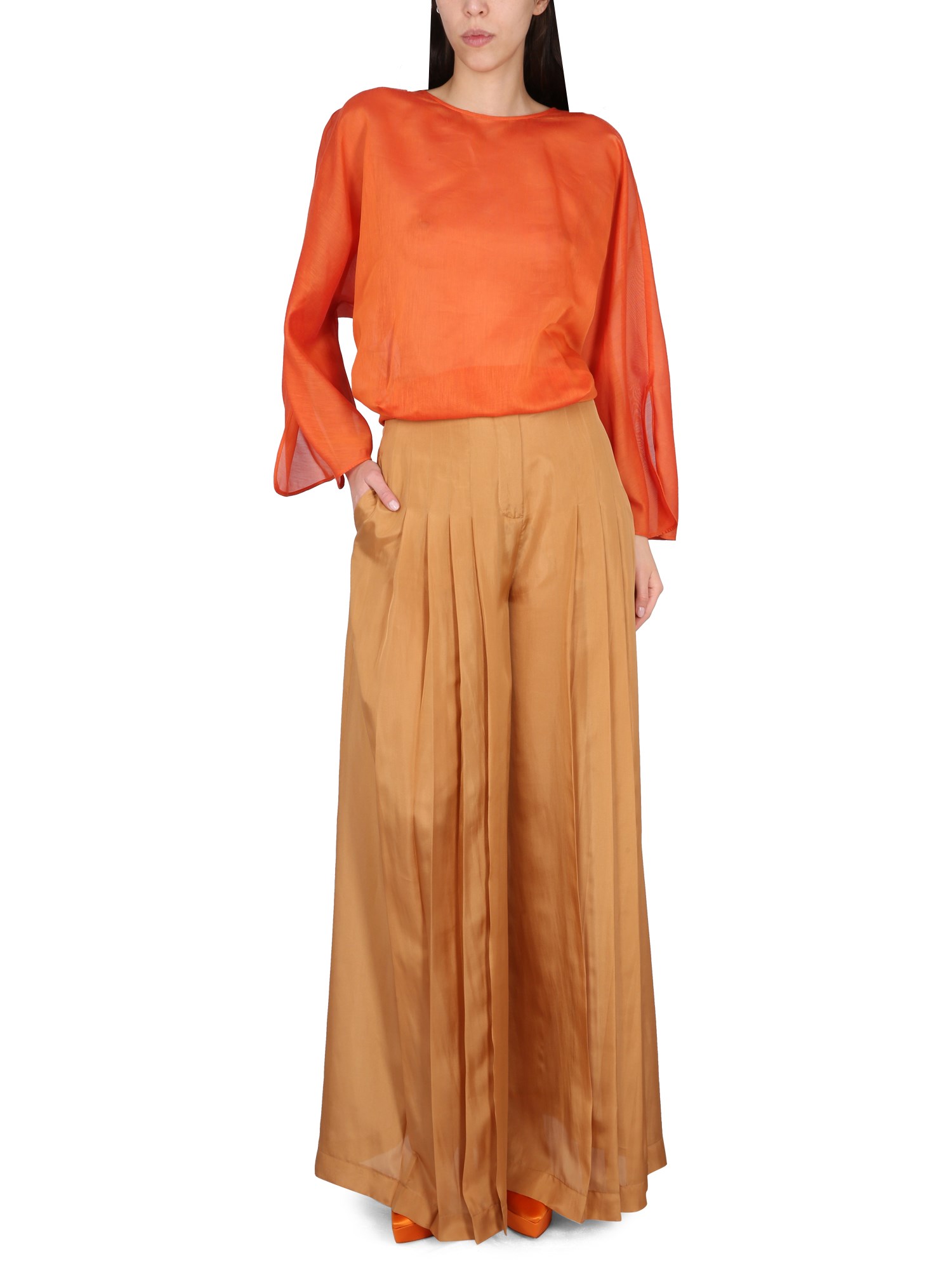These classic pants from Alberta Ferretti are perfect for a work day or a weekend brunch. The black pants have a button and zipper closure on the side pockets, and the regular fit is comfortable enough to wear all day long. The fabric is silk, which is soft and luxurious.