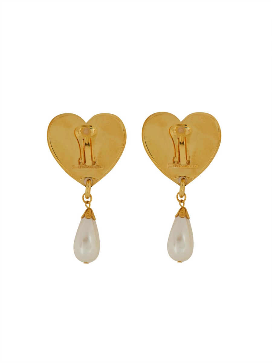 Elevate your accessory game with these stunning metal heart earrings featuring a delicate pendant pearl from Alessandra Rich. The combination of the bold heart shape and the elegant pearl creates a unique and eye-catching design that is perfect for adding a touch of sophistication to any outfit. Crafted with high-quality materials, these earrings are a must-have for any fashion-forward individual looking to make a statement. Whether for a special occasion or everyday wear, these earrings are sure to become a favourite in your jewellery collection.