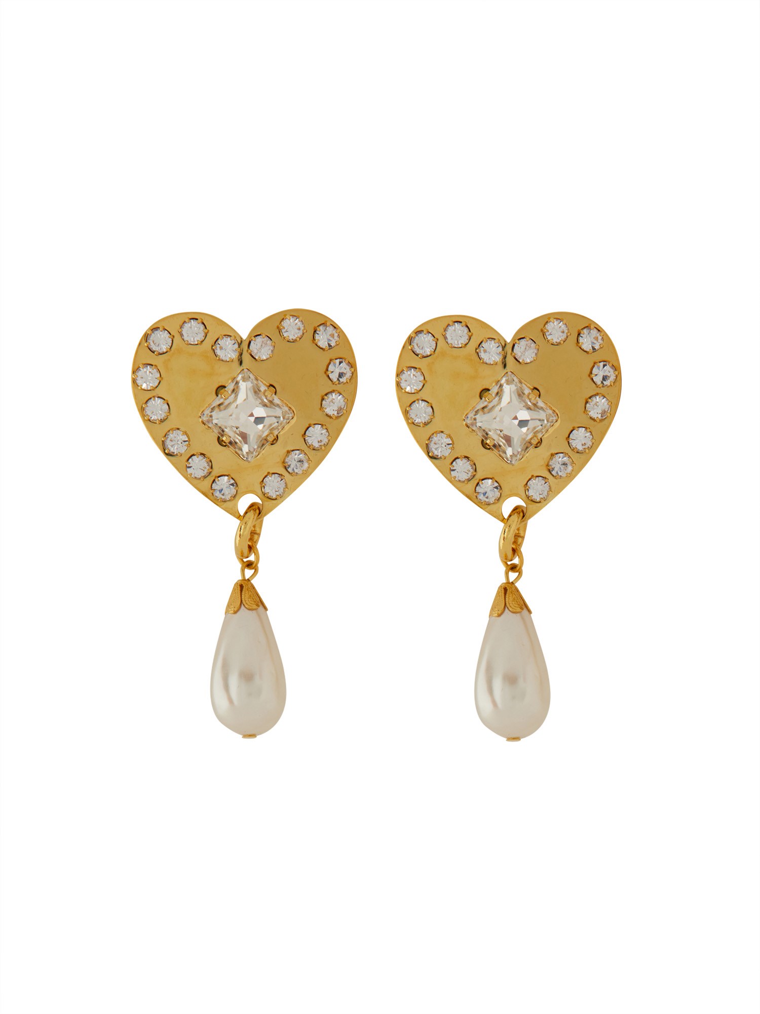 Elevate your accessory game with these stunning metal heart earrings featuring a delicate pendant pearl from Alessandra Rich. The combination of the bold heart shape and the elegant pearl creates a unique and eye-catching design that is perfect for adding a touch of sophistication to any outfit. Crafted with high-quality materials, these earrings are a must-have for any fashion-forward individual looking to make a statement. Whether for a special occasion or everyday wear, these earrings are sure to become a favourite in your jewellery collection.