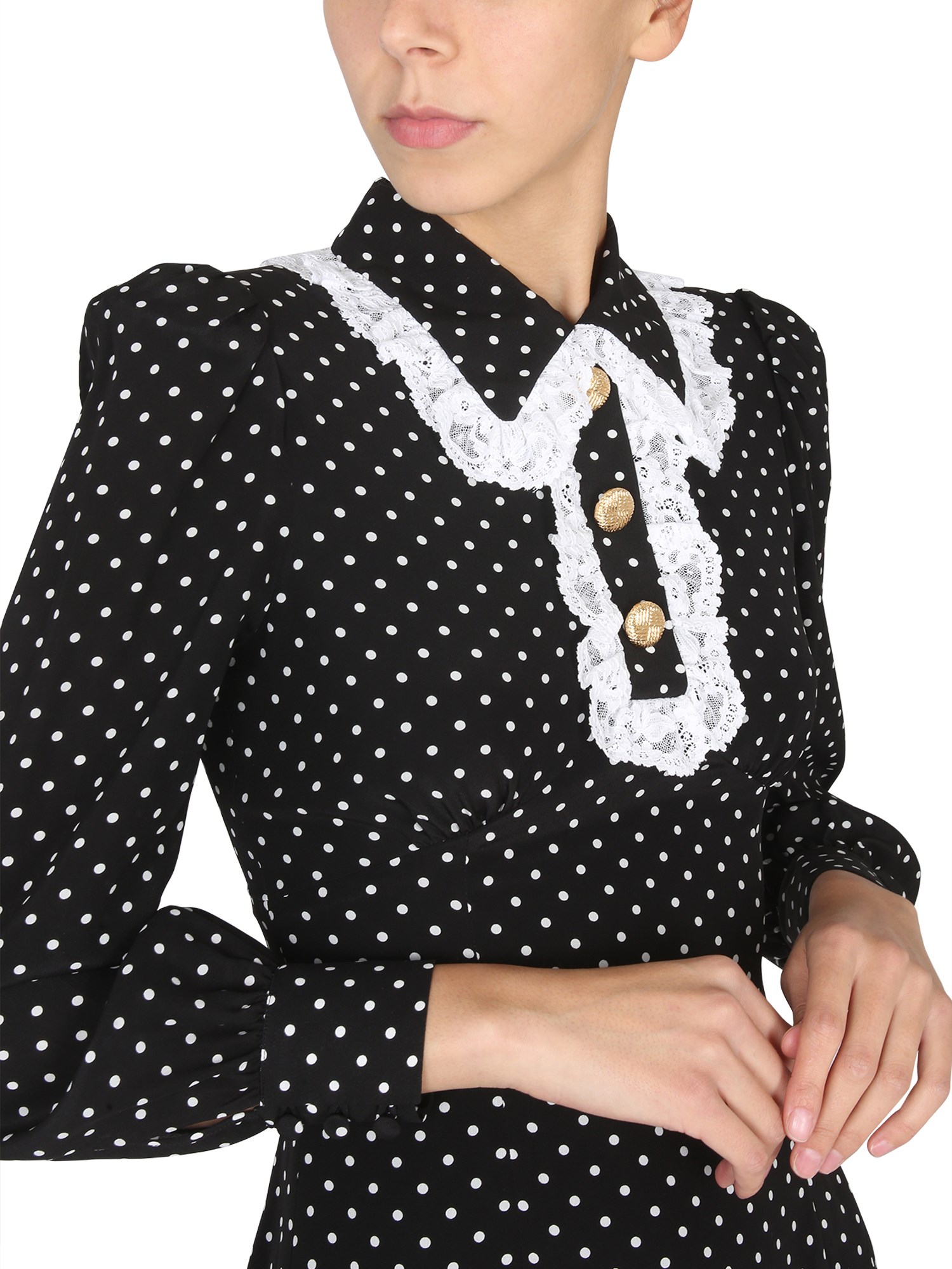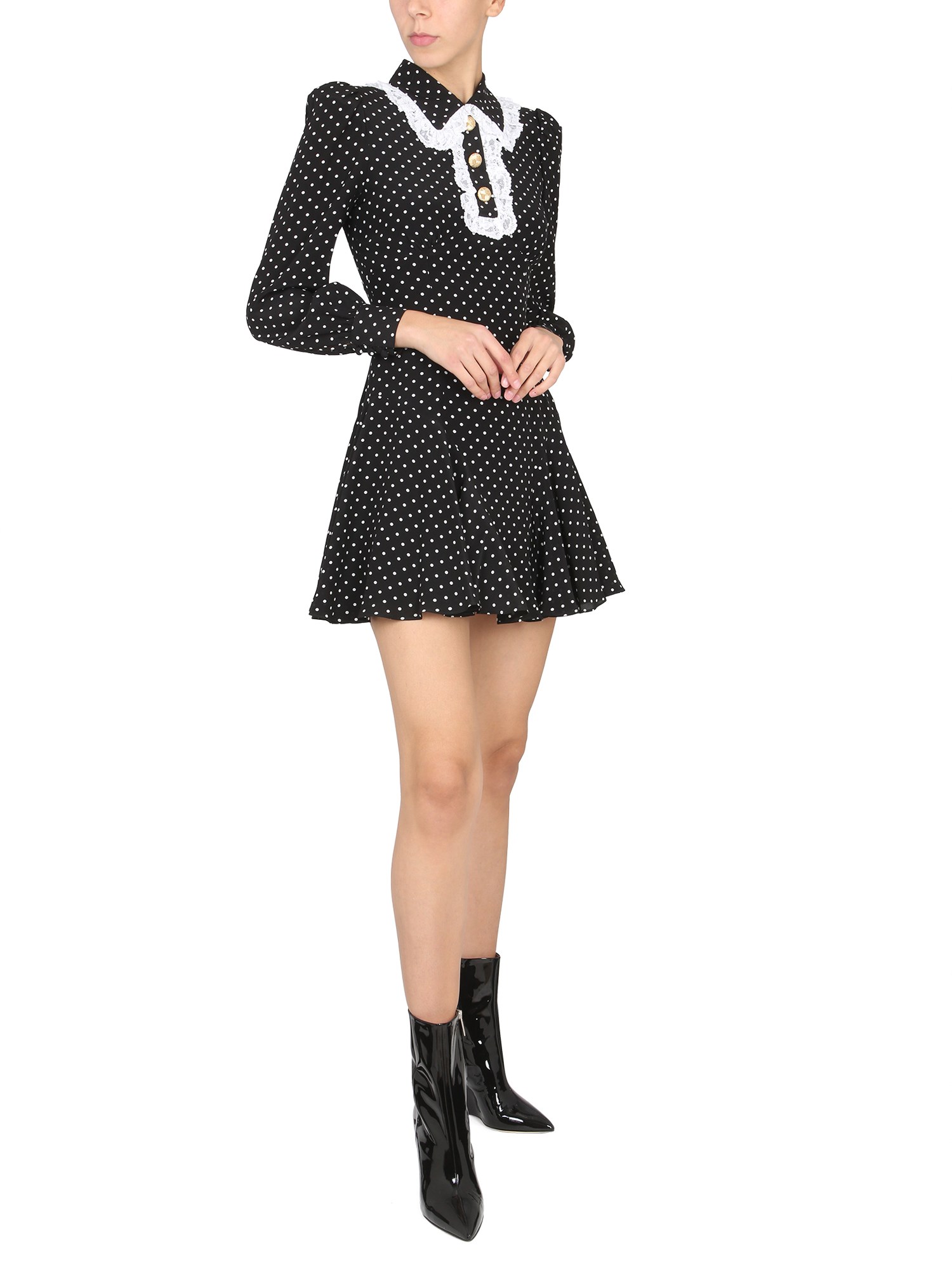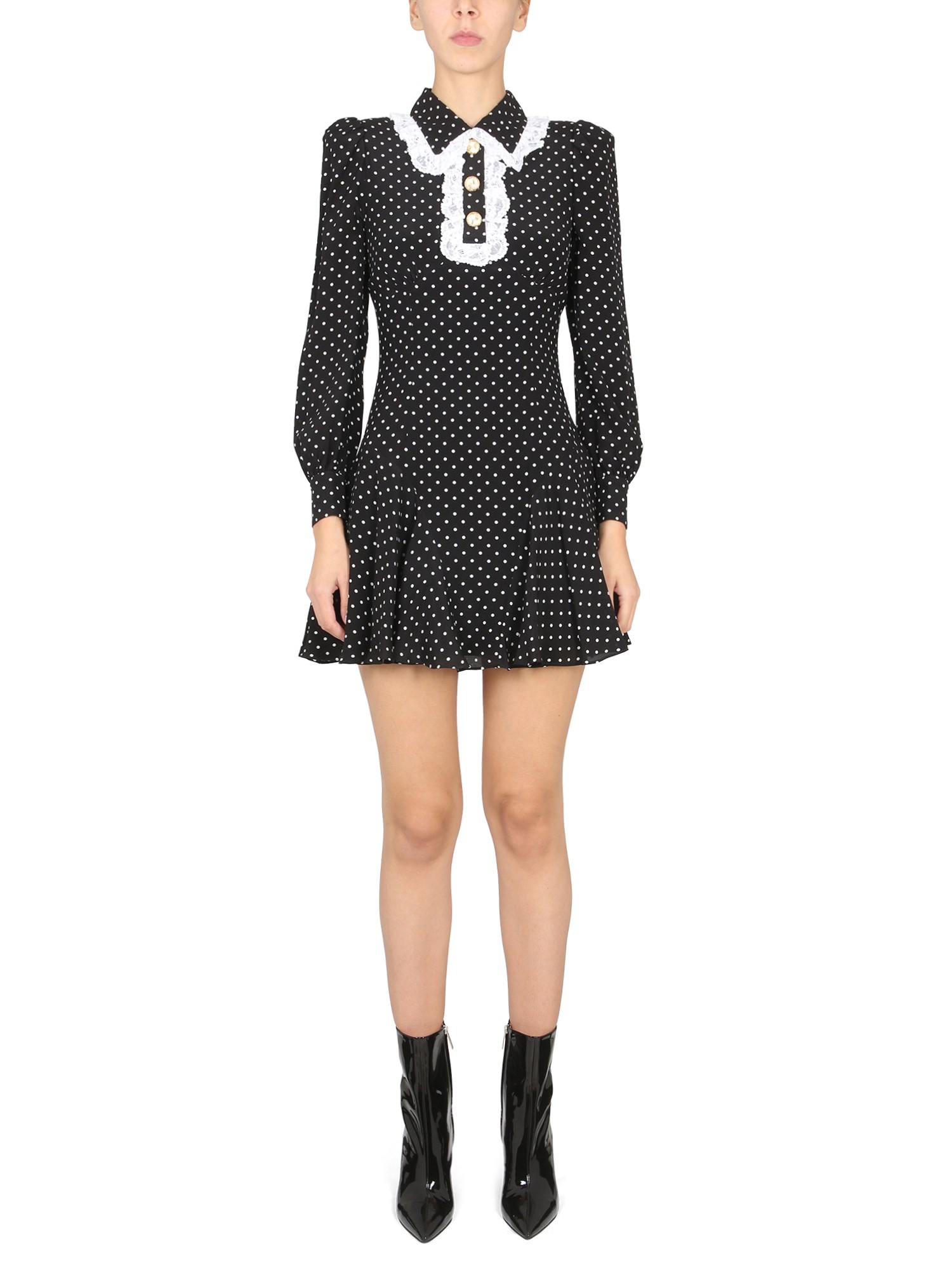 This dress from the house of Alessandra Rich is great for anyone who wants to have a dress that is both simple and cute. The polka dot pattern is adorable and the soft fabric feels amazing. It has a collar with embroidery and a back zipper closure. the dress is lightweight, making it perfect for warmer weather.