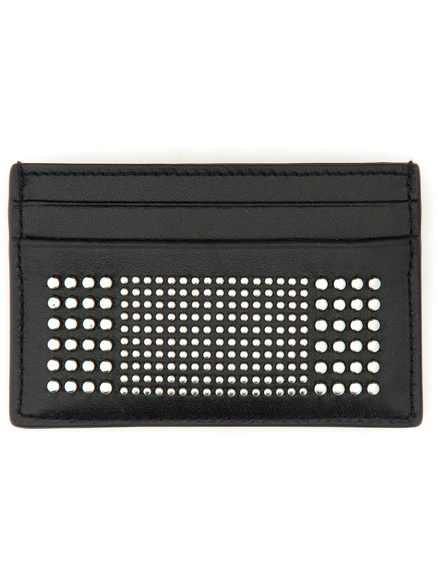 This card holder from Alexander McQueen exudes sophistication and elegance, making it the perfect companion for the discerning individual. The meticulous attention to detail is evident in the embellishments, which add a touch of glamour to this timeless piece. With its sleek design and practical functionality, this card holder effortlessly combines style and convenience, ensuring that your cards are securely stored in utmost refinement.