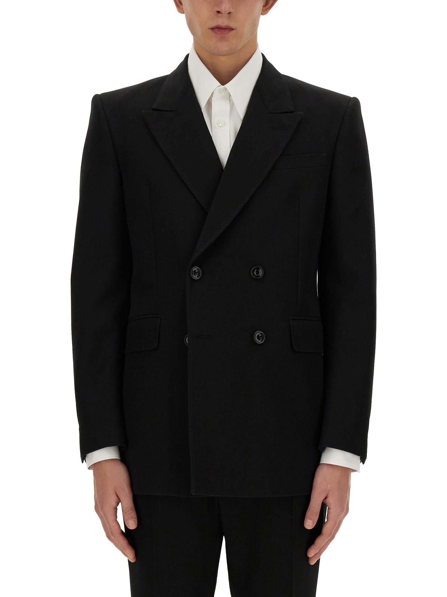 This jacket from Alexander McQueen is the epitome of class and elegance, perfect for both formal and casual occasions. Crafted from premium quality cotton fabric, it offers unparalleled comfort and durability. The lapel collar adds a touch of refinement to this jacket, creating a polished look that is sure to turn heads. Its classic double-breasted design adds a timeless appeal, while the black colour adds a sleek and sophisticated vibe.