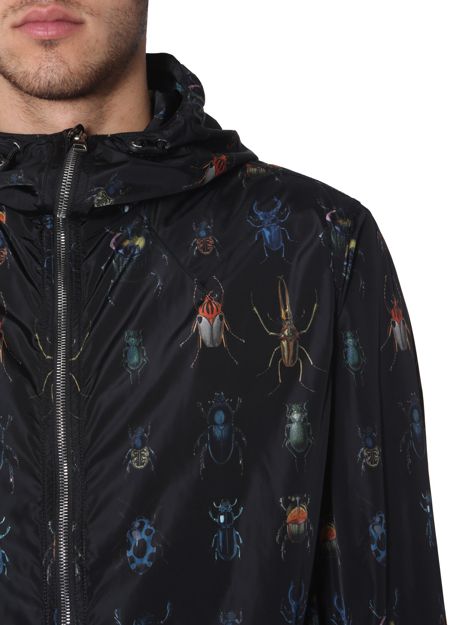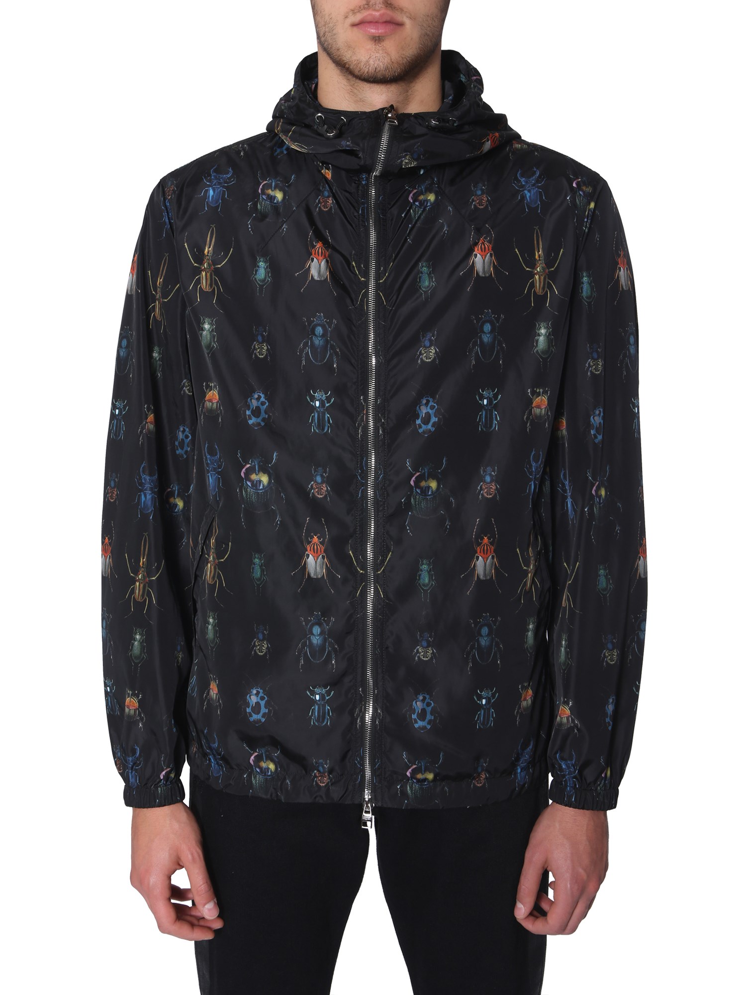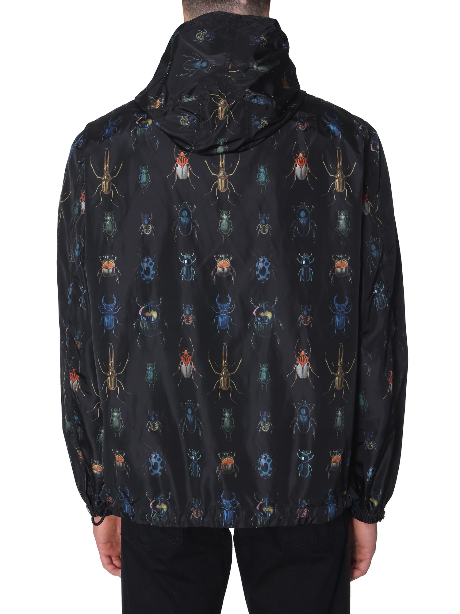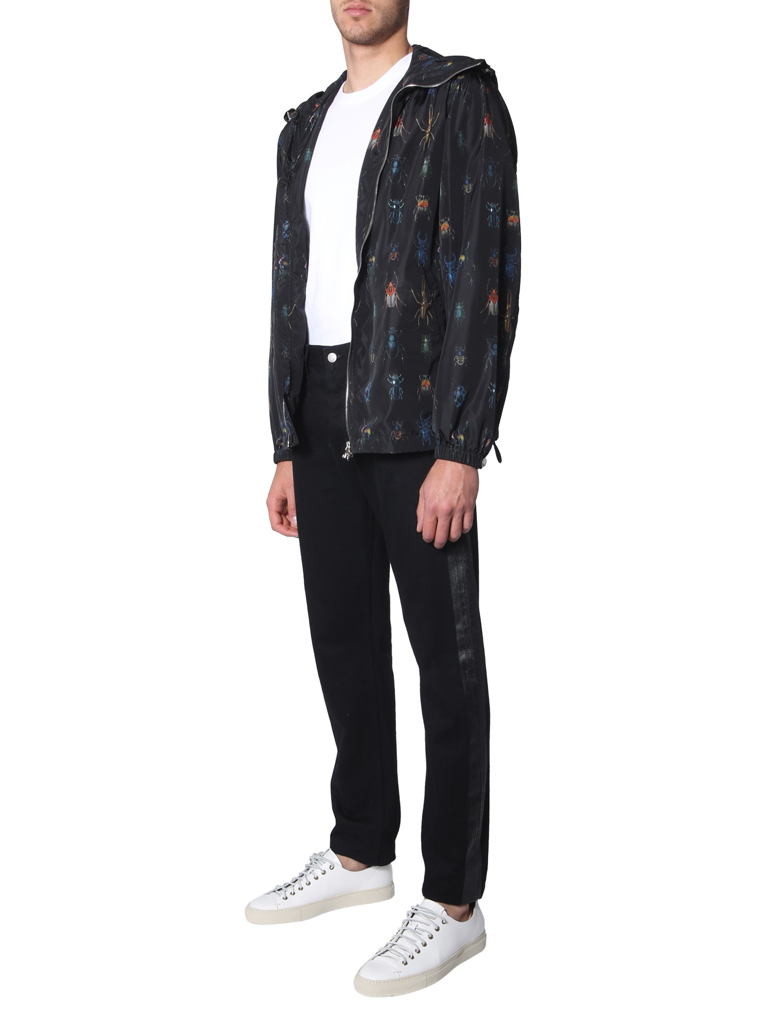 Wrap yourself in this wind jacket with hood from Alexander McQueen to stay warm and cosy all day. The jacket is fabricated from 100% polyamide that ensures easy maintenance. It features a front zip closure with two side pockets for functionality. The high neckline with hood allows you to cover your head properly during chilly winter. You can pair this jacket with black denim and sports shoes.