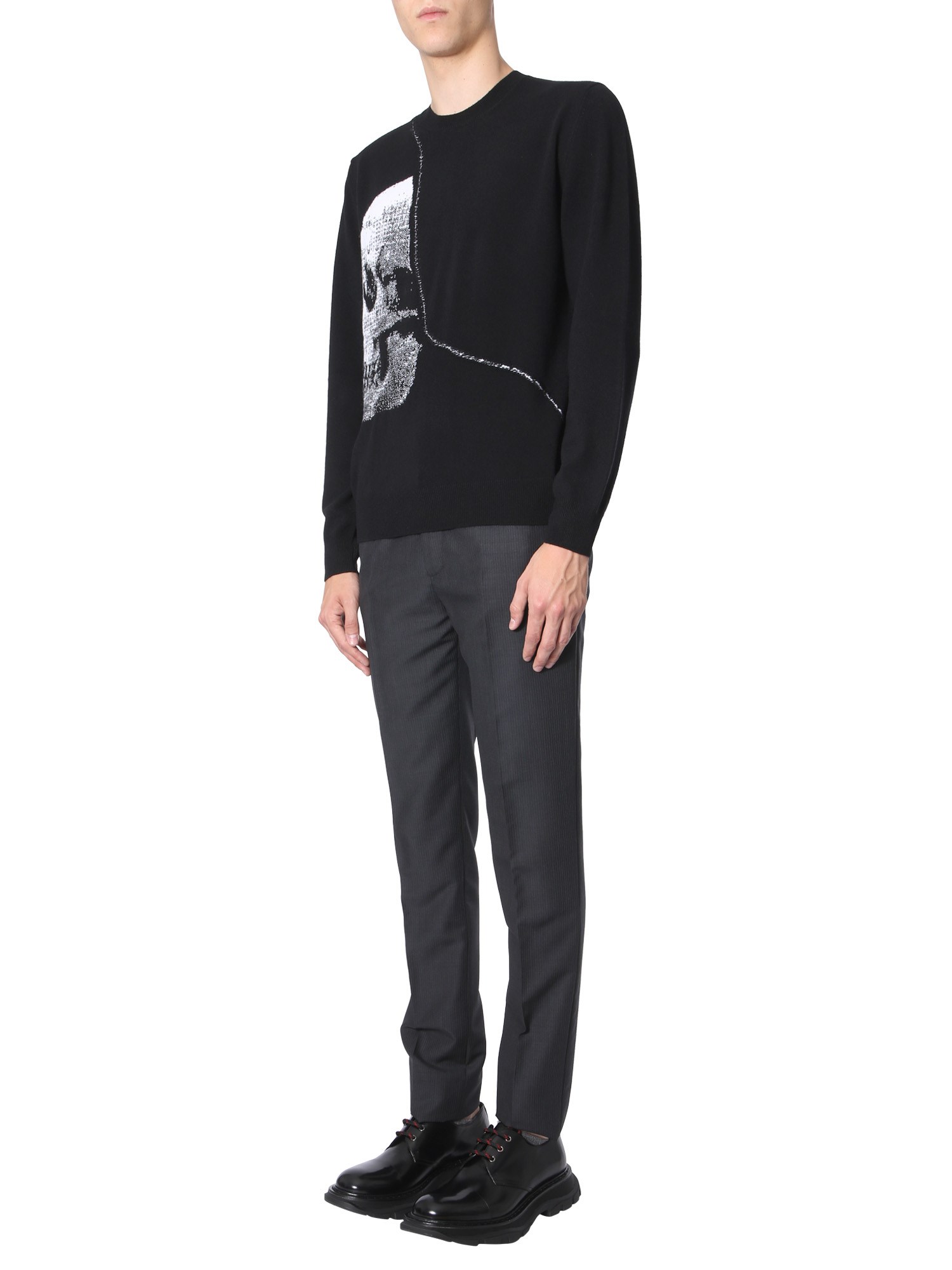 This winter, add this sweater with skull inlay from Alexander McQueen to upgrade your wardrobe. The sweater is fabricated from good quality wool that ensures utmost comfort throughout the day. With a round neck and full sleeves, this sweater features ribbed cuffs and neckline making it a perfect winter apparel. You can pair it with denim jeans and sneakers.
