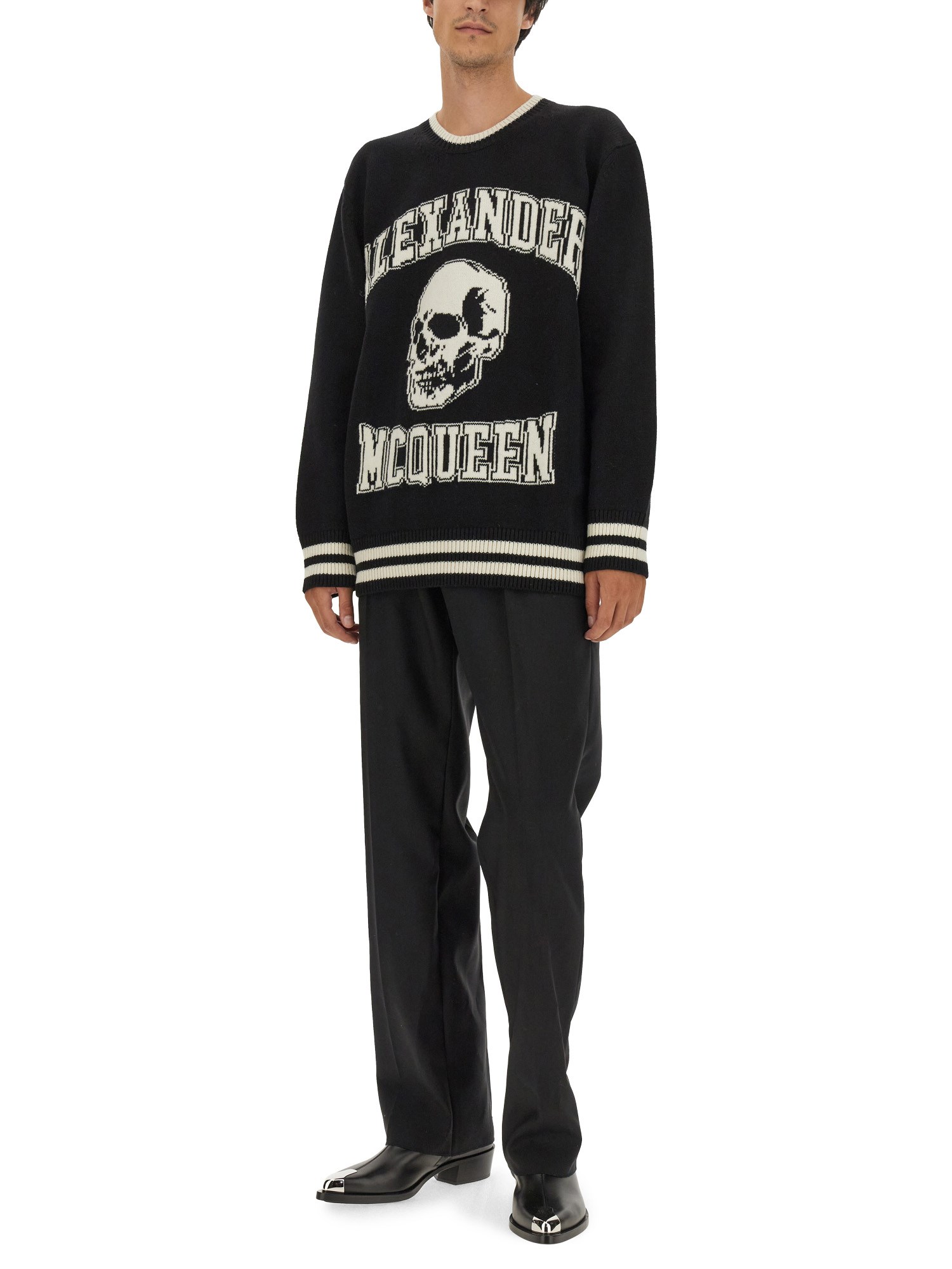 Enjoy the luxurious feel of the Alexander McQueen varsity sweater, made from the highest quality cotton. The classic varsity style of this high-end garment is heightened by the inclusion of the label's recognisable skull pattern. This gorgeous piece is ideal for the refined fashionista in your life.