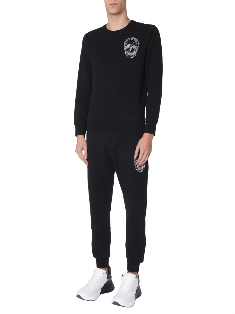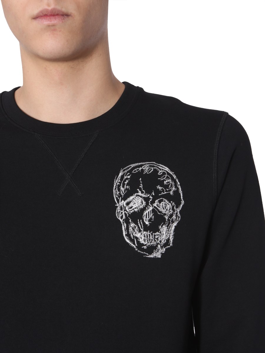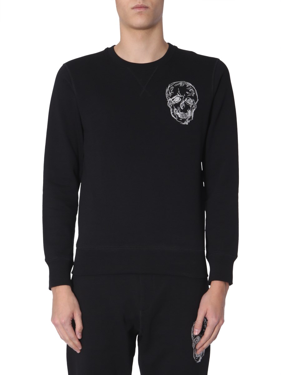 Create a style statement with the crew neck sweatshirt from Alexander McQueen. Pair this with any jeans and head out for the day. Its long sleeves and regular fit keep you cool and comfortable. This sweatshirt is made from cotton giving it durability. It has a white skull embroidered on the left.