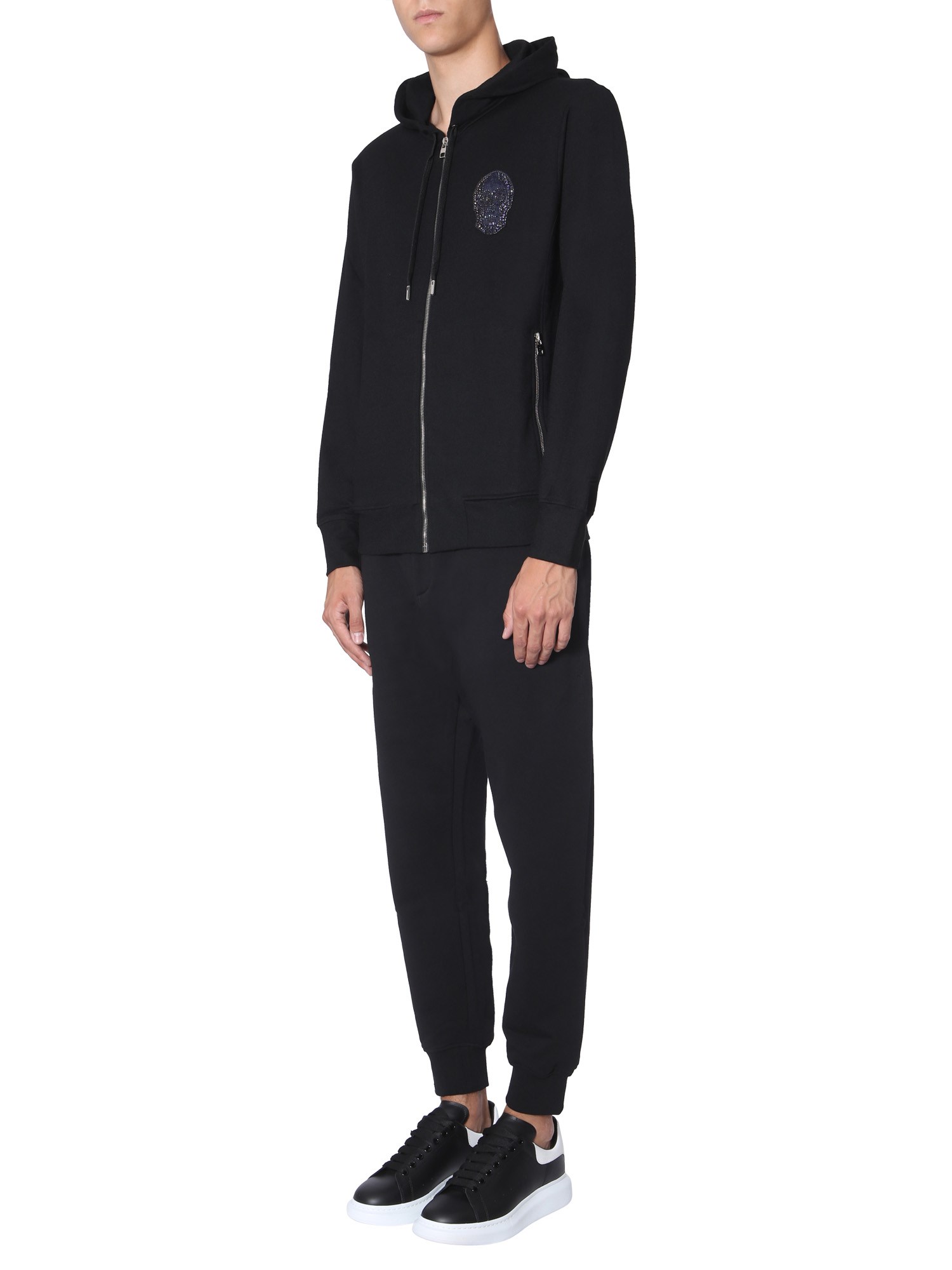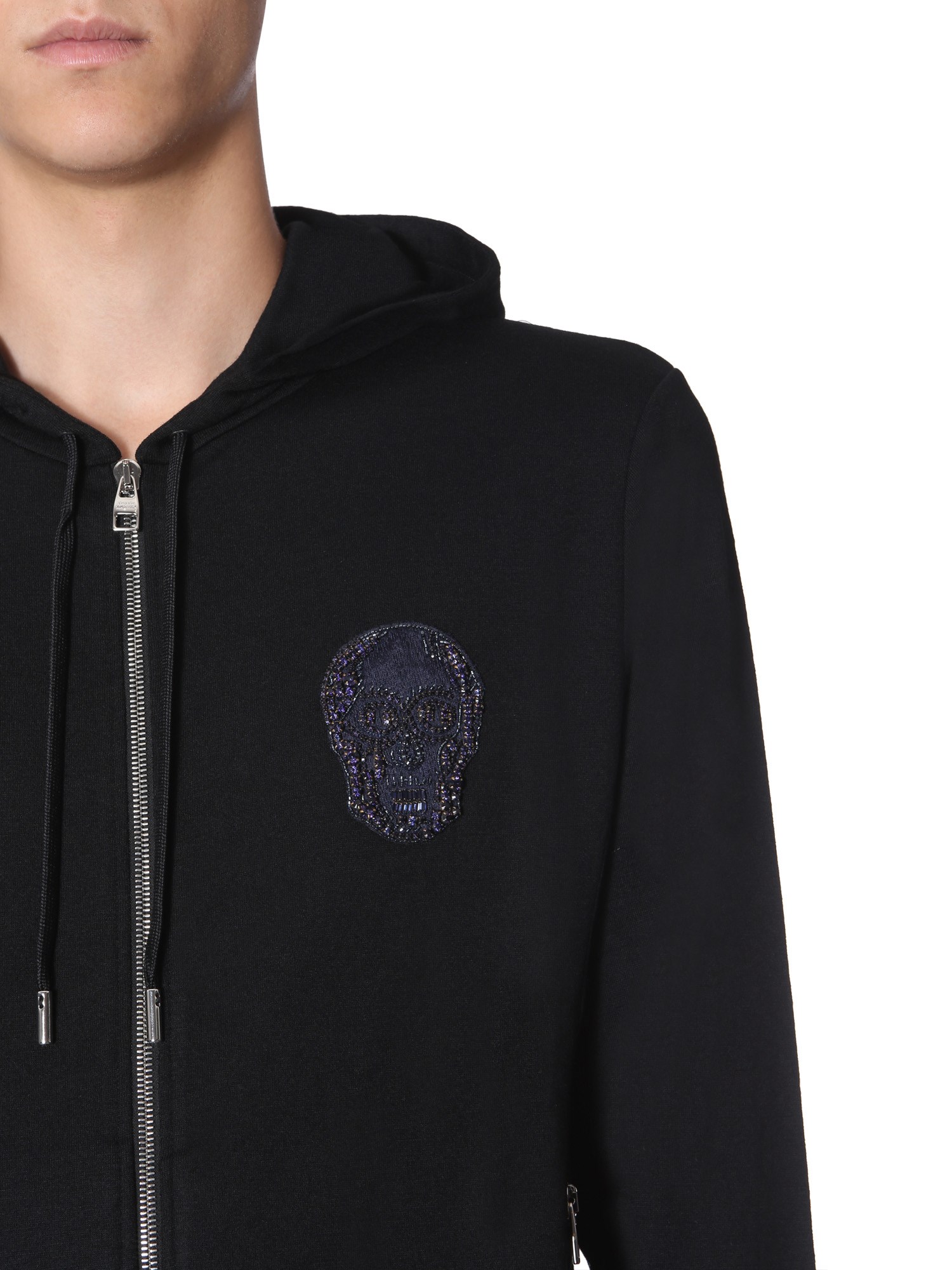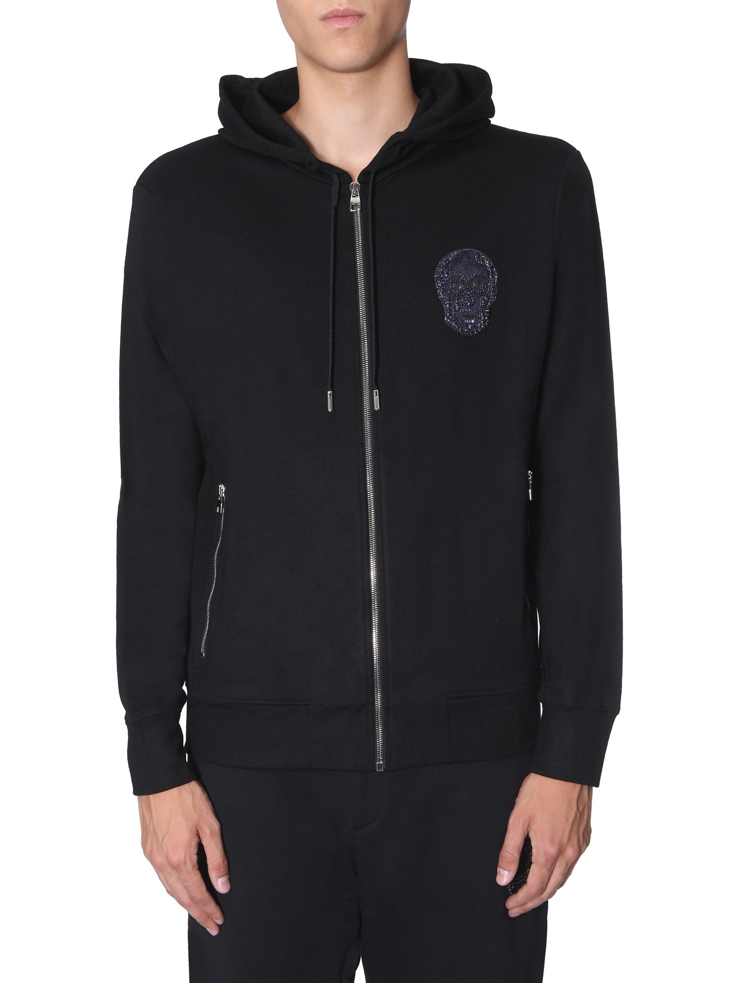 Walk with the latest trends by wearing the wool sweatshirt with embroidered skull from Alexander McQueen. The regular-fit, hooded jacket is suitable to complement any of your party or casual looks. It is stretchable and highly conformable to all body types. The 100% wool construction gives strength and resistance to the jacket.