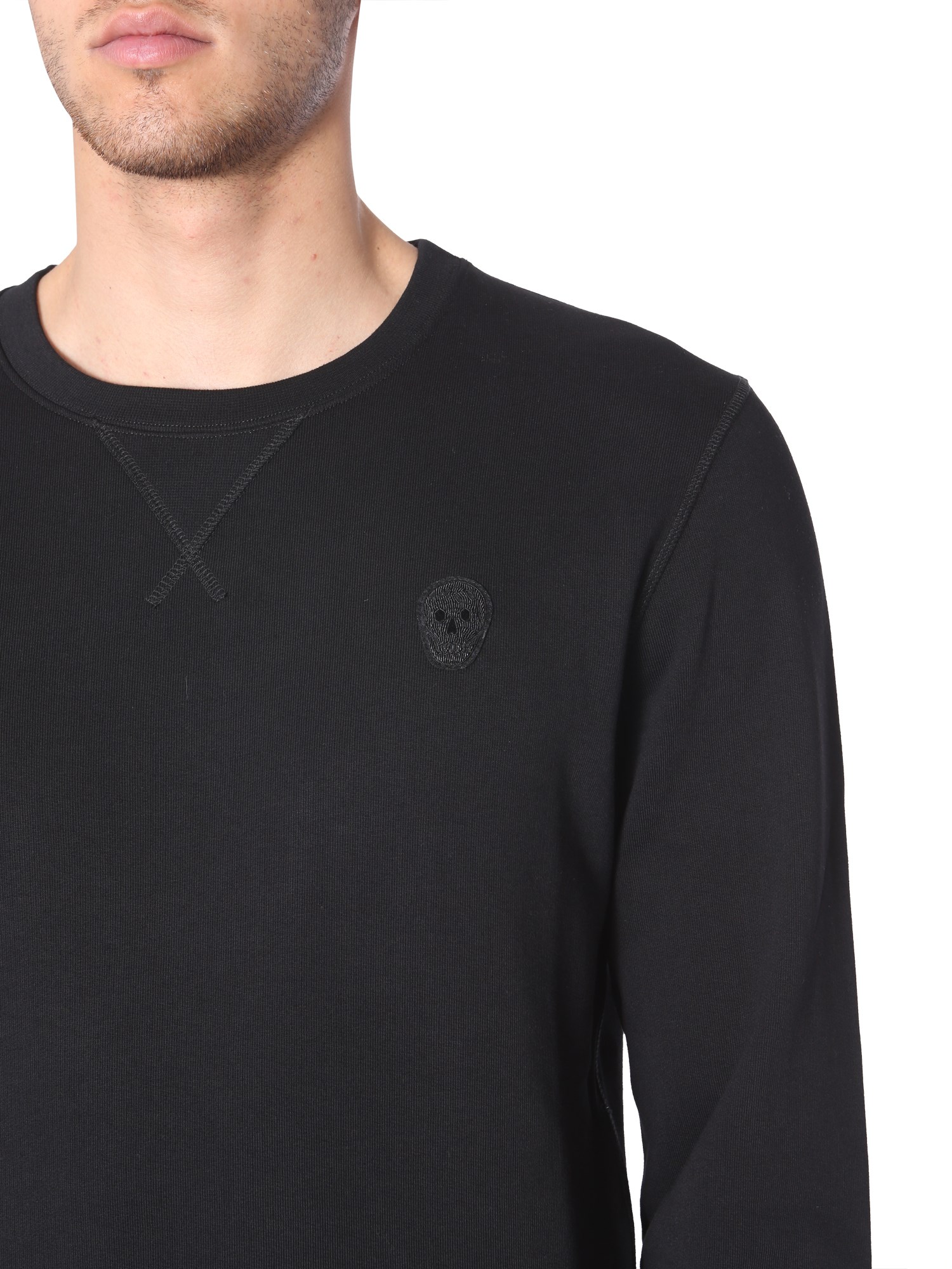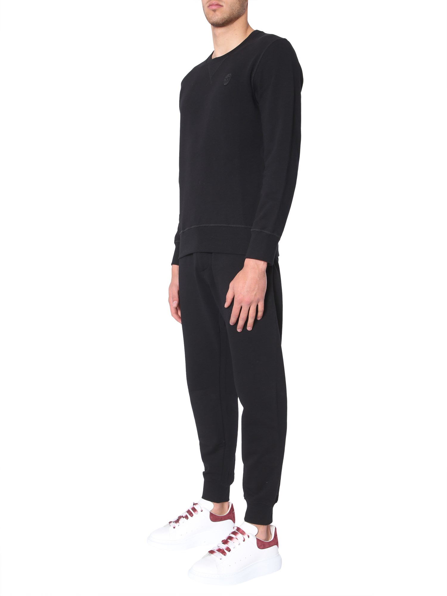 Add this patch skull sweatshirt from Alexander McQueen to excite your winter wardrobe. Fabricated from good quality cotton with brushed interior, this sweatshirt is breathable and resistant to shrinkage. The plain and simple front surface allows you to pair this sweatshirt with various bottom wear. Wear it for morning exercise routine after pairing it with black trousers.