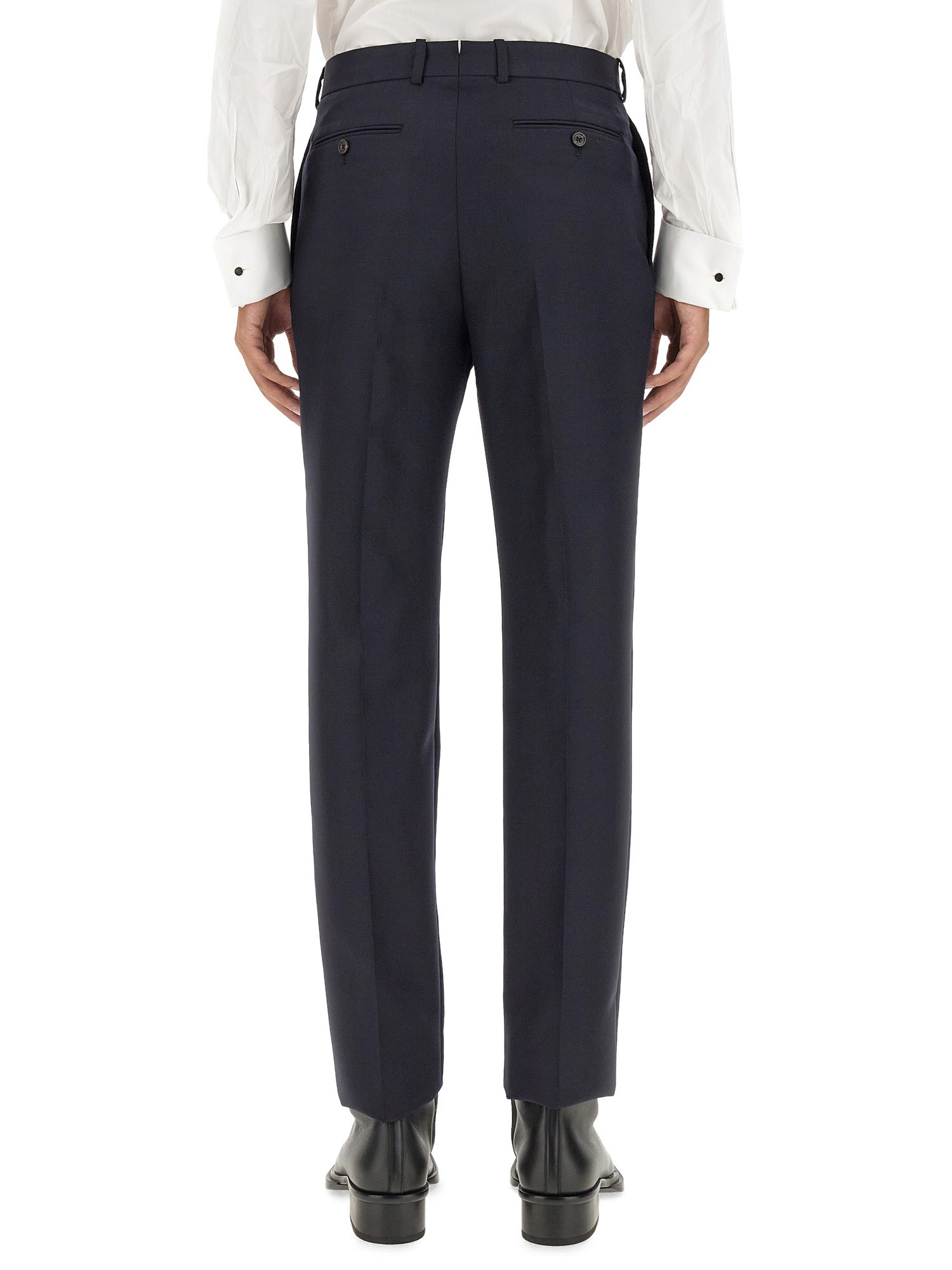 Let’s introduce you to Alexander McQueen's fitted black pants. These precisely tailored pants have a stylish button fastening for a snug fit. They are ideal for every event and are made to enhance your style. Wear these classic pants to embrace sophistication and create an impression. accessible right now.