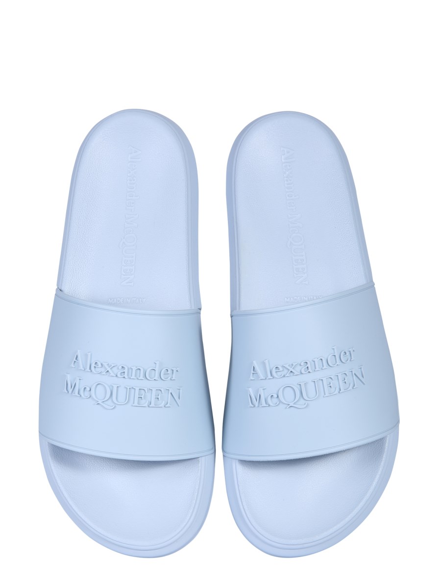 These colourful sandals from Alexander McQueen are designed for comfort and style, perfect for the summer. The sturdy sandals are designed to be worn on and off the foot, so they're perfect for all seasons. This sleek slide features a large logo and a toe loop strap.