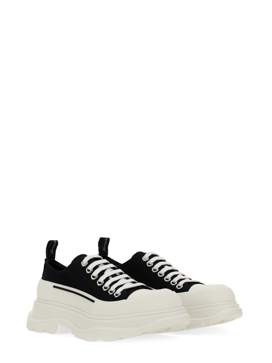 There's no denying the classic look of Alexander McQueen's Canvas Tread Slick sneakers. With a canvas upper and rubber sole, these sneakers are perfect for casual wear. The rubber sole makes them ideal for active wear, while the canvas upper is a breathable material that keeps feet cool and comfortable.
