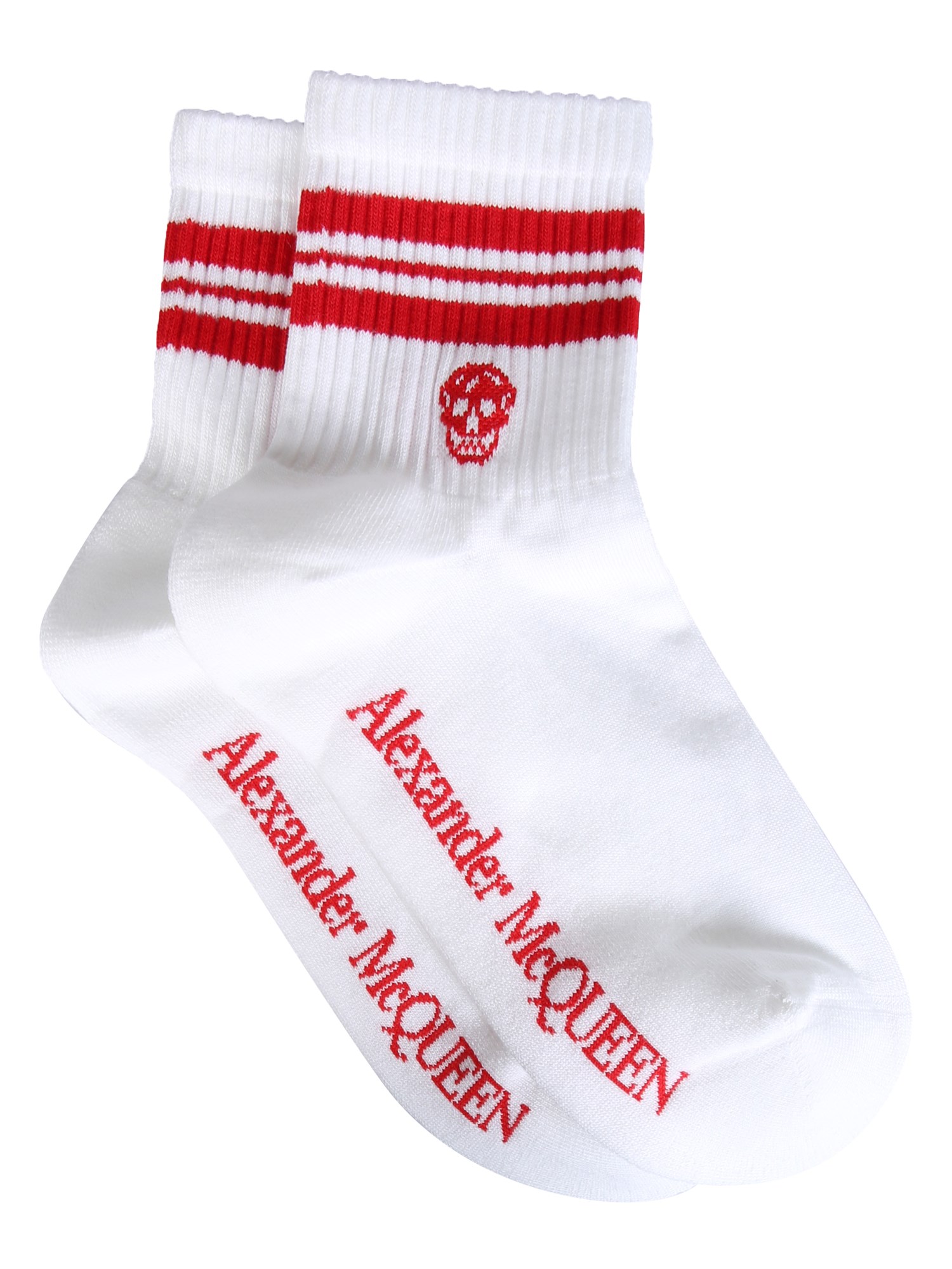 These ribbed socks from Alexander McQueen are the perfect thing to add a bit of style to your outfit. Made from cotton, these socks are soft and cosy. They are embellished with a skull logo at the ankle. Made with cotton blend, these ribbed socks feature a skull logo and are perfect for layering.