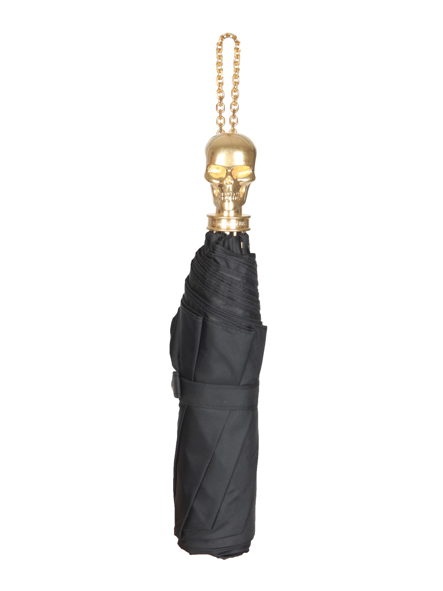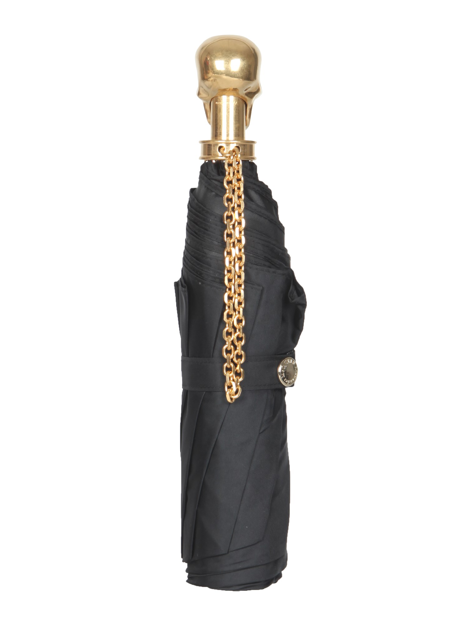 - ICONIC HANDLE WITH GOLD FINISH METAL CHAIN SKULL - FOLDABLE STRUCTURE- STRAP WITH SNAP BUTTON- 100% POLYAMIDE- MADE IN ITALY