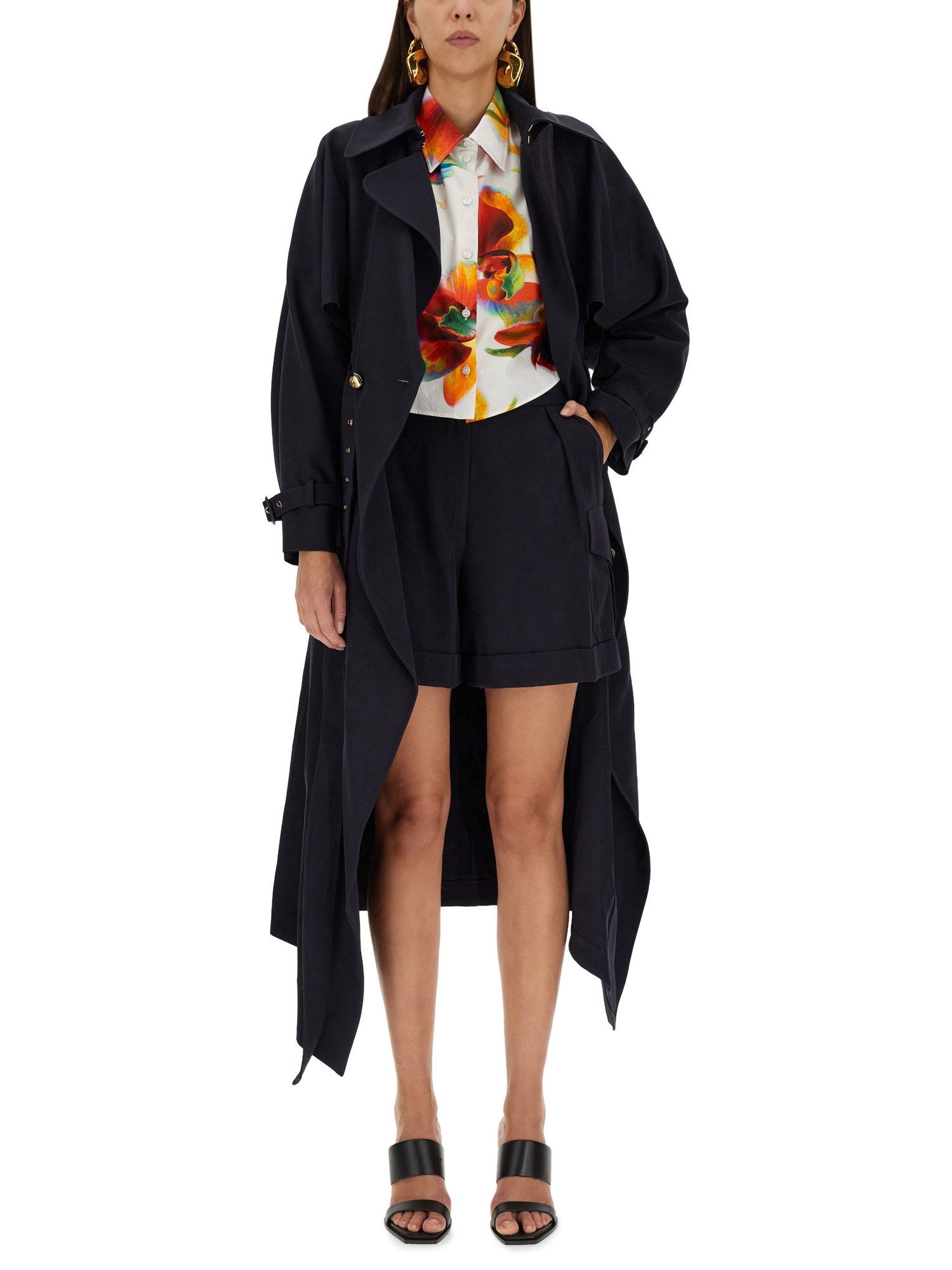 Alexander McQueen's button closure cotton cargo shorts are the ultimate of style and comfort. These precision-crafted shorts are the ideal combination of usefulness and fashion. They are a must-have addition to your wardrobe due to their adaptable design and durable cotton fabric. Easily elevate your summer appearance!