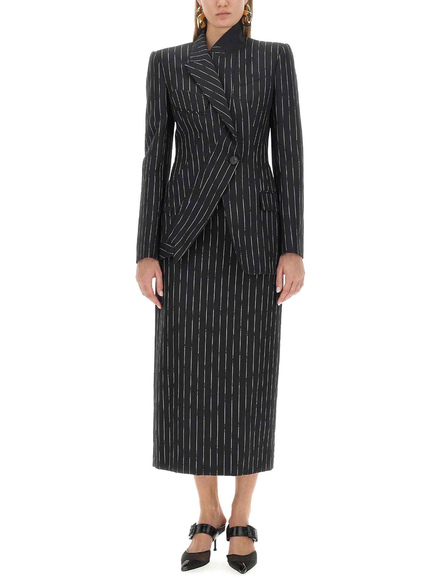 This skirt from Alexander McQueen is suitable for various occasions, from casual outings to formal gatherings. Pair it with a simple blouse and heels for a professional and polished look, or dress it down with a cosy sweater and boots for a more relaxed ensemble. The versatile nature of this skirt allows you to effortlessly transition from day to night, making it a must-have piece in your wardrobe