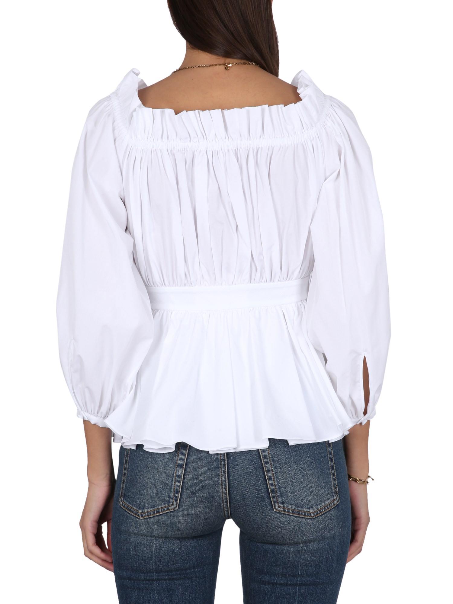 This top from Alexander McQueen is made of 100% cotton and is incredibly soft. It features an elastic waistband and a round neckline. This is a great piece to wear to work or to go out with friends. It is made of 100% organic cotton and is machine washable. The white colour is perfect for spring and summer.