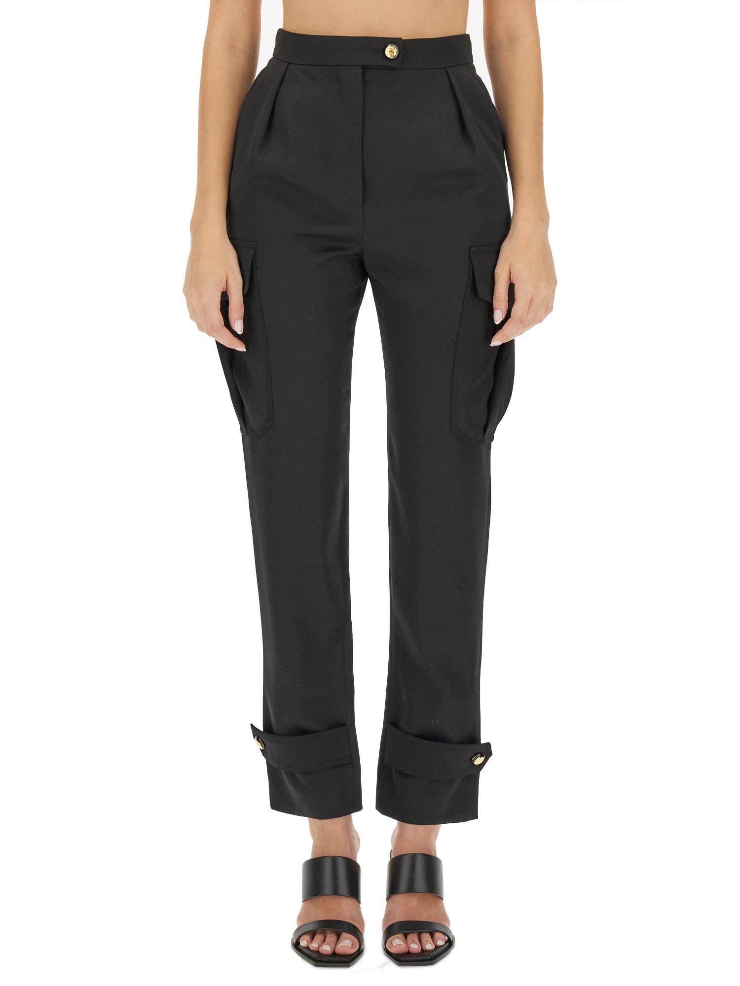 The wool straight pants from Alexander McQueen are a fashionable way to dress up any outfit. They are not only practical but also fashionable. The zipper closure makes the pants easy to put on and take off. The relaxed fit and straight leg design of these pants will make you feel like you're wearing leggings, but with more comfort and style.