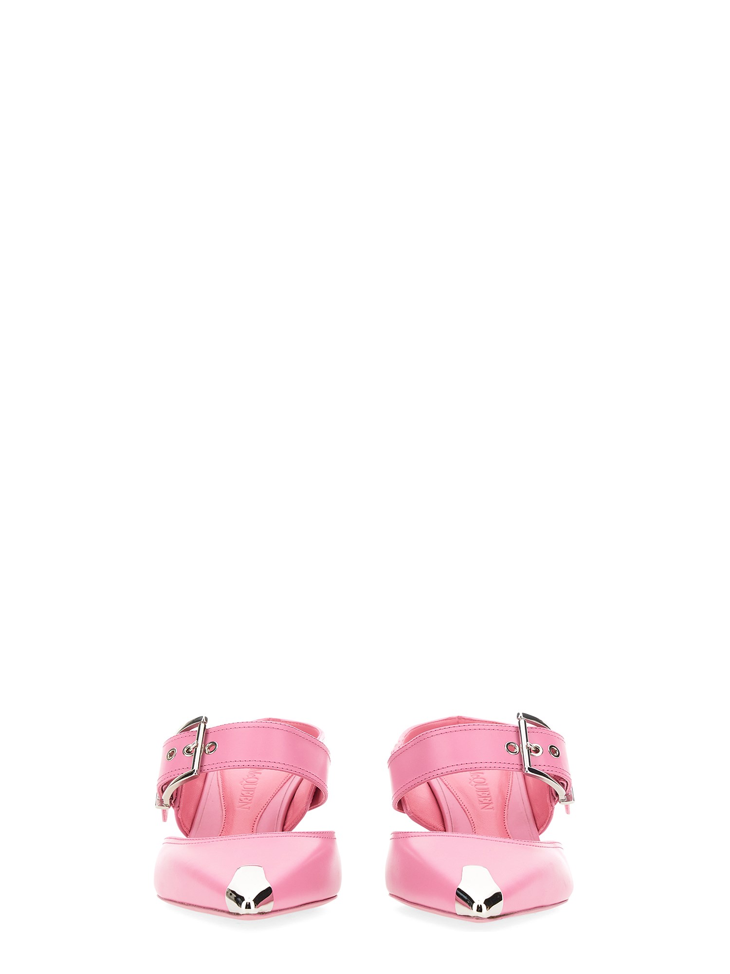 The shoes from Alexander McQueen are made from soft, supple, and durable leather that is detailed with a buckle, pointy toe, and polished shine. The adjustable buckle and pointy toe allow for a comfortable fit for any foot. The upper of the shoe is adorned with leather, creating a sleek and sexy look.