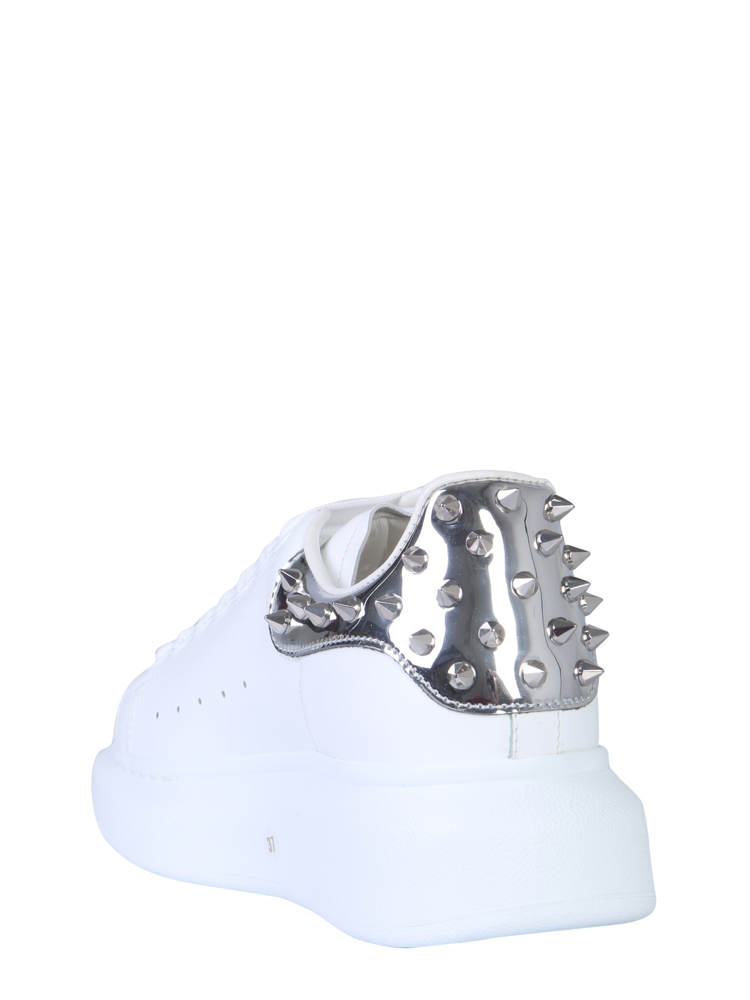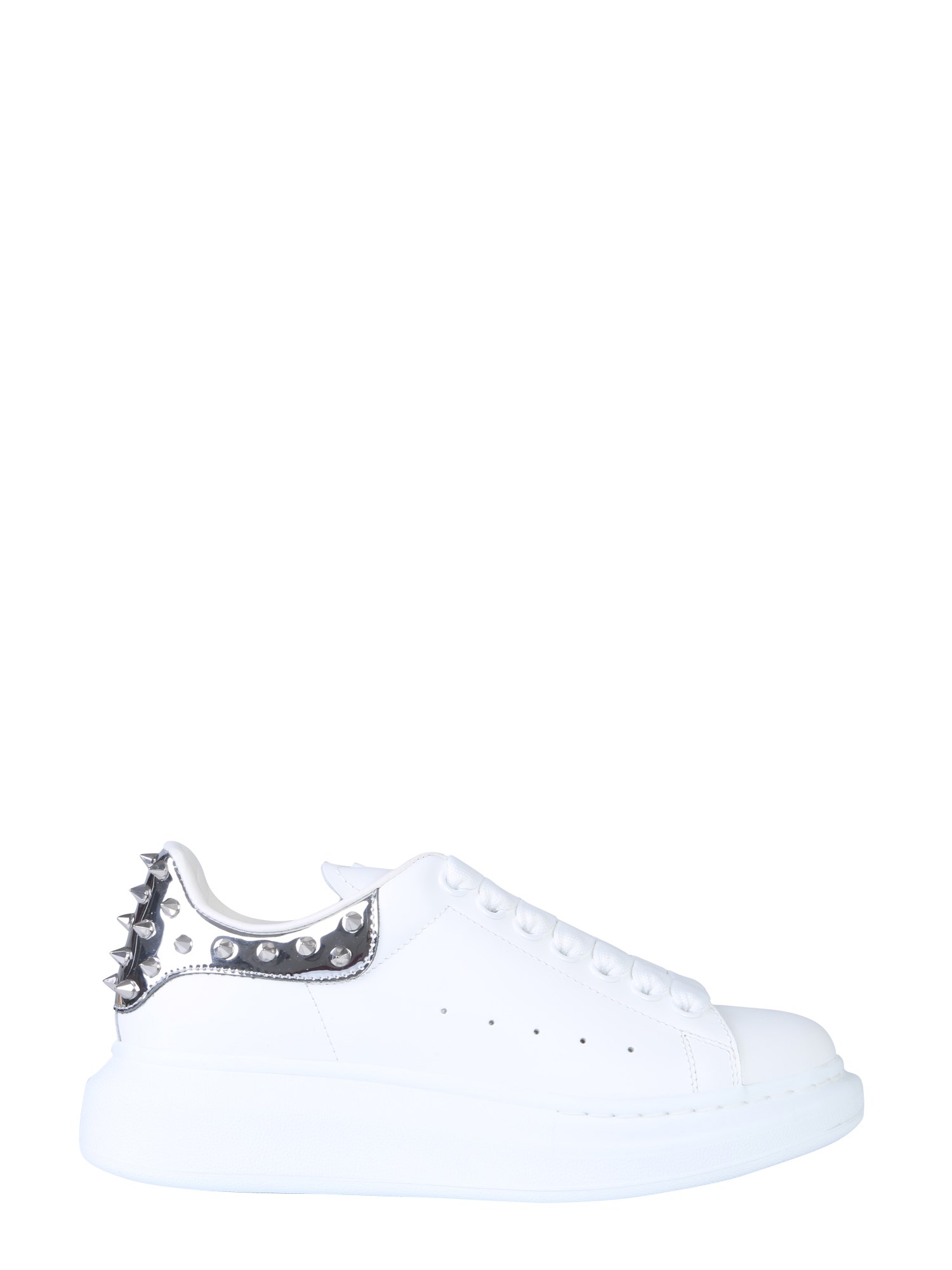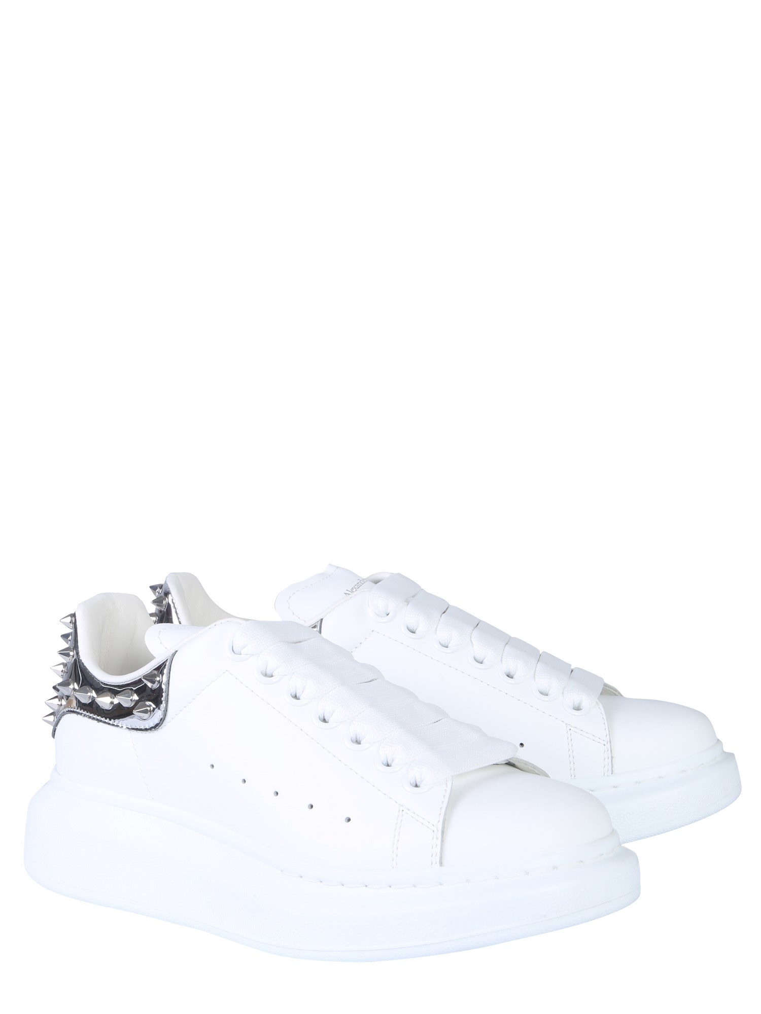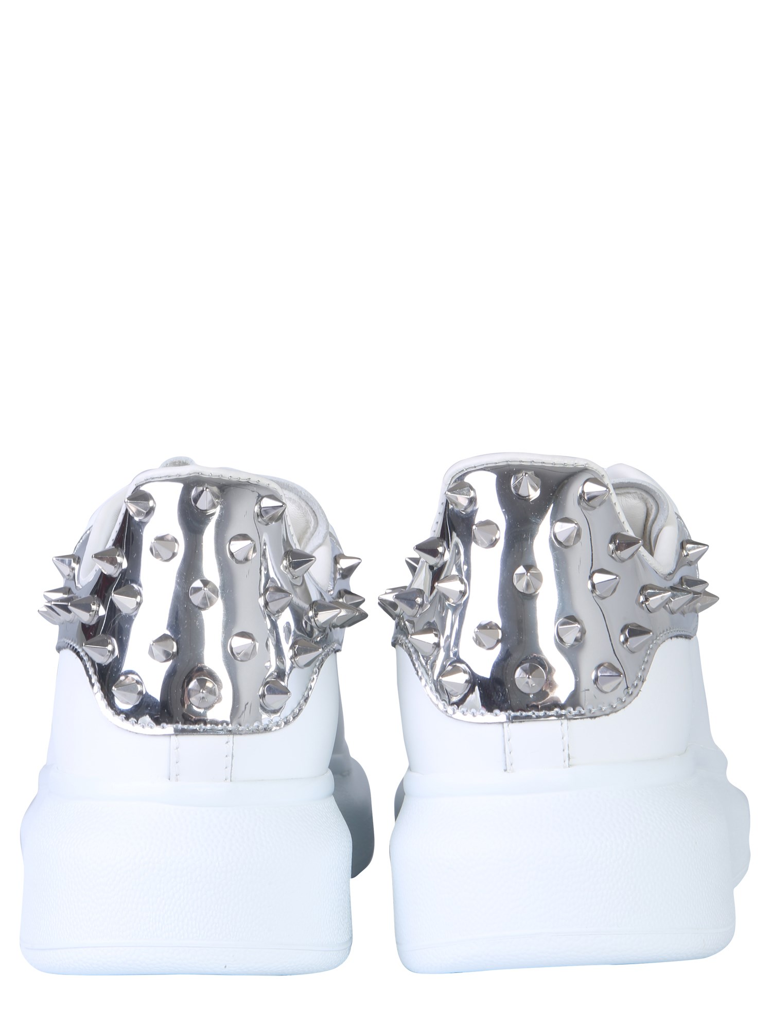 Complete your casual look by wearing these oversize sneakers from Alexander McQueen. The sneakers feature a spiked detailing on the heel counter that aptly complements its light colour scheme. With a lace-up closure, they come with reinforced eyelets that enhance its style quotient. You can wear them for your casual day out after pairing them with denim jeans and a shirt.