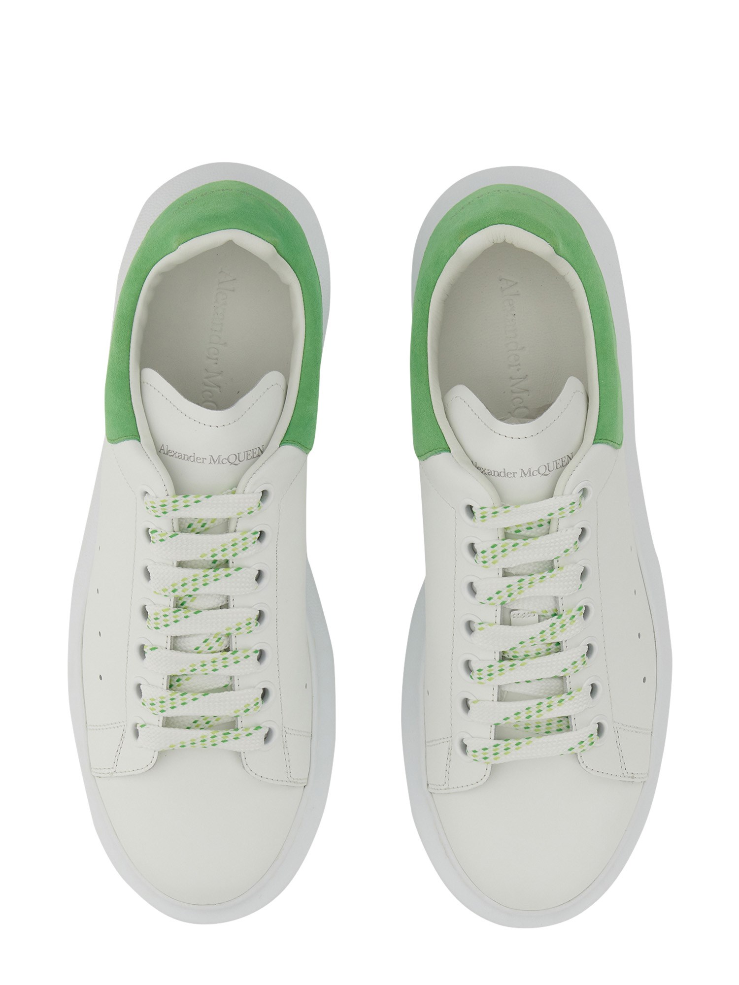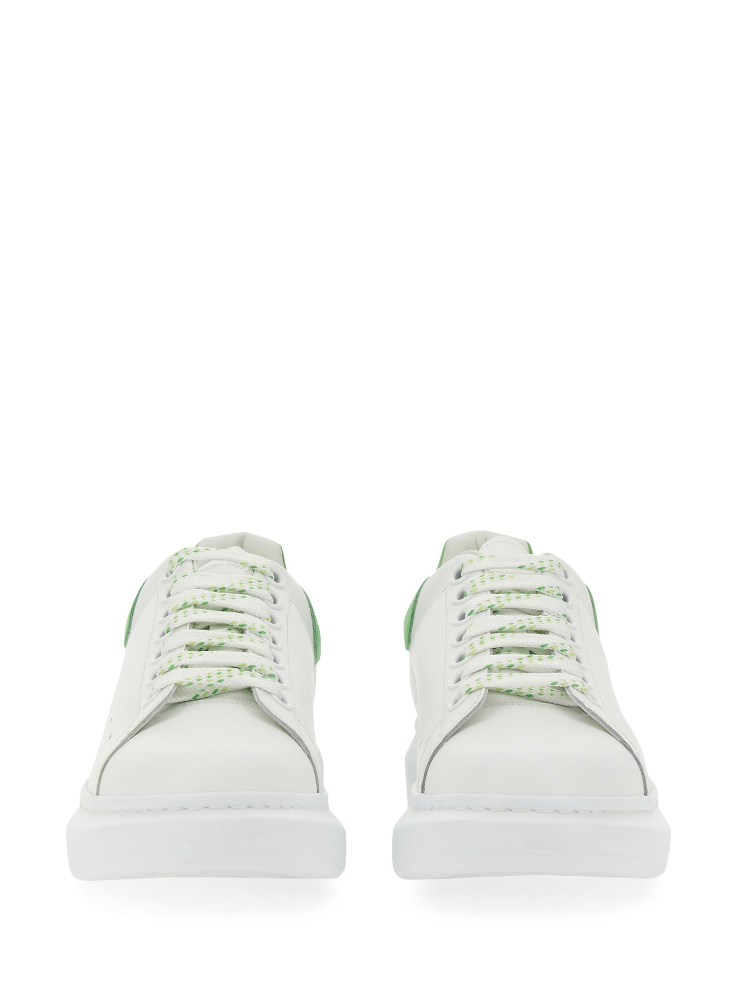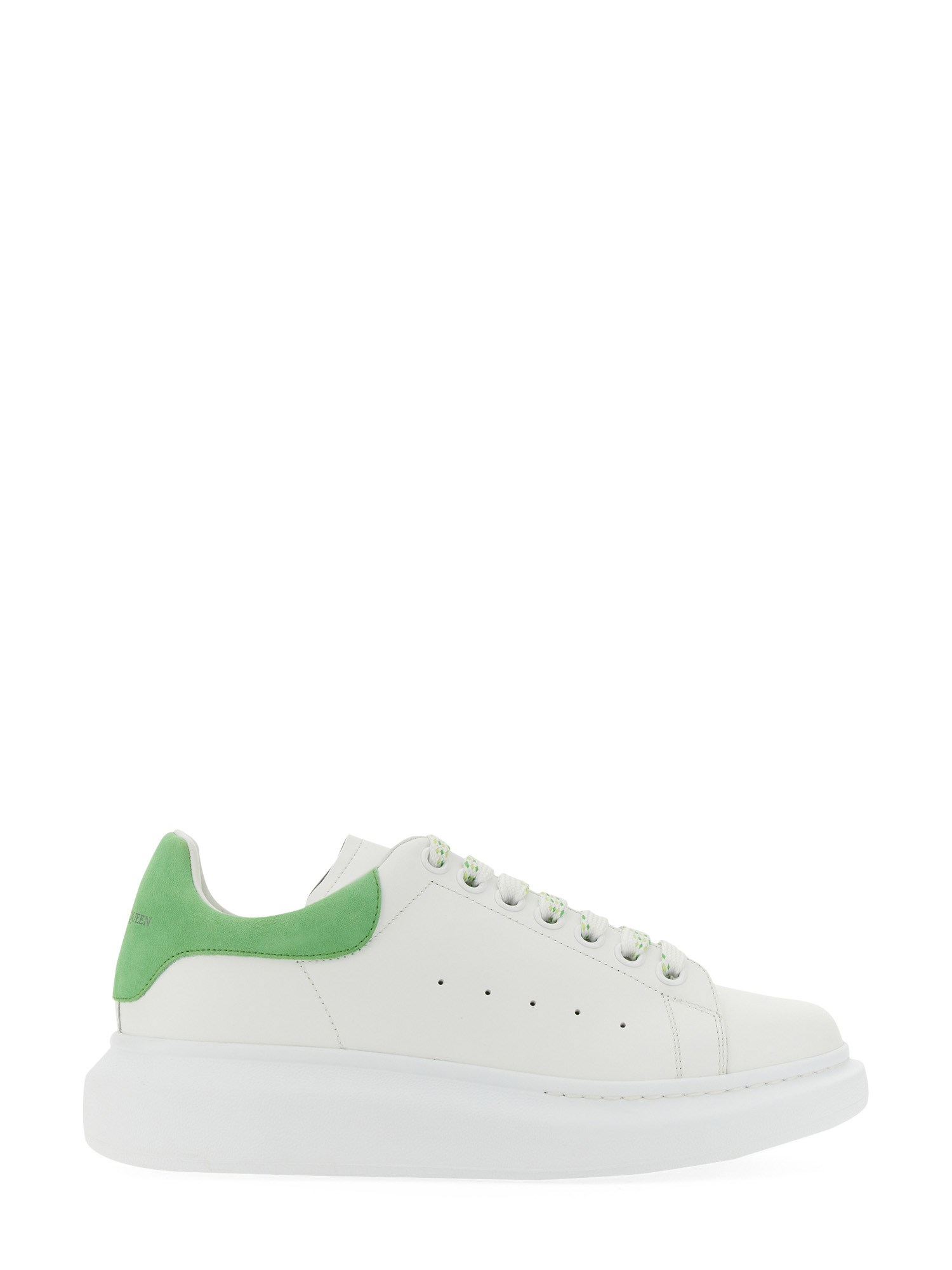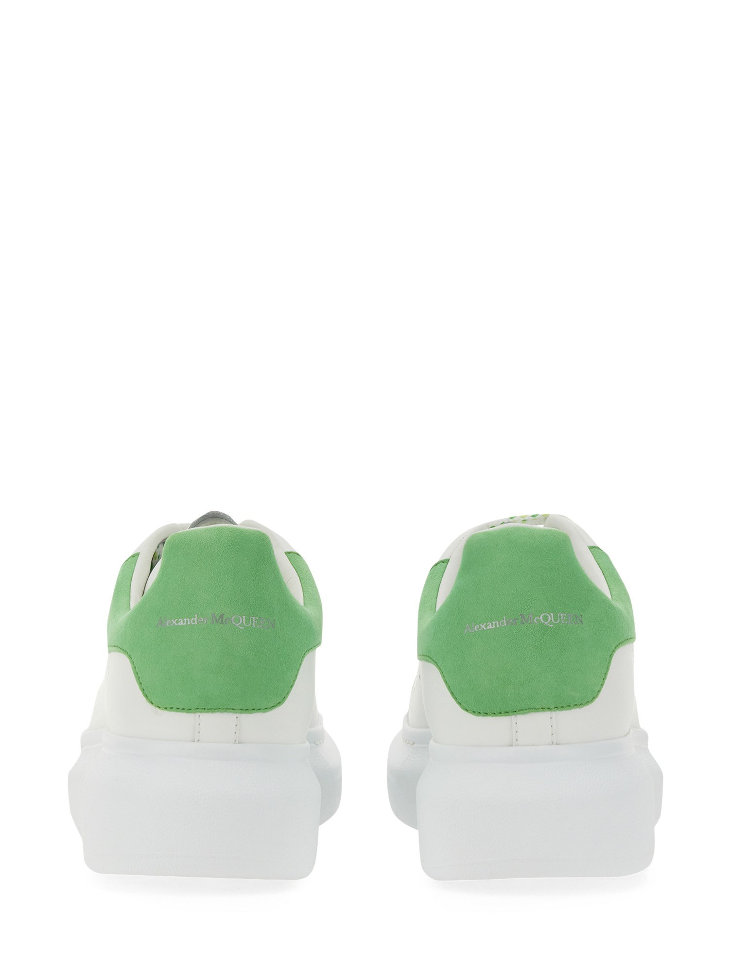 You're going to adore these Alexander McQueen shoes. Their rubber soles are tied around the back of the heel using laces. They're an enormous sneaker with a suede heel and a lot of cushioning. They have a roomy cut, making them ideal for lounging around in or packing for a trip.