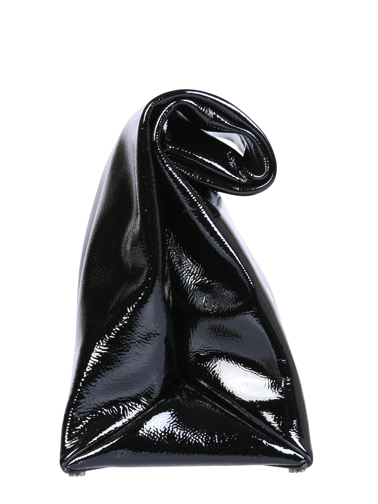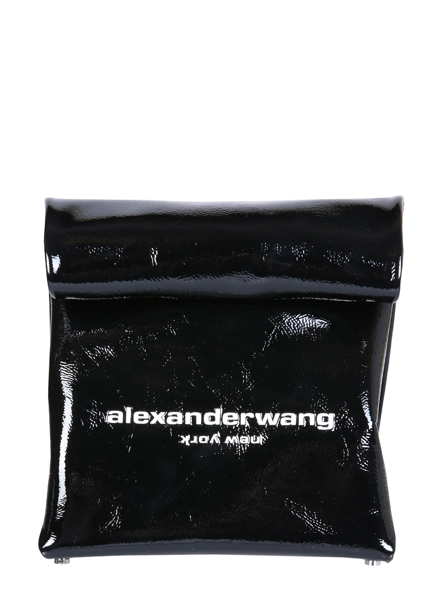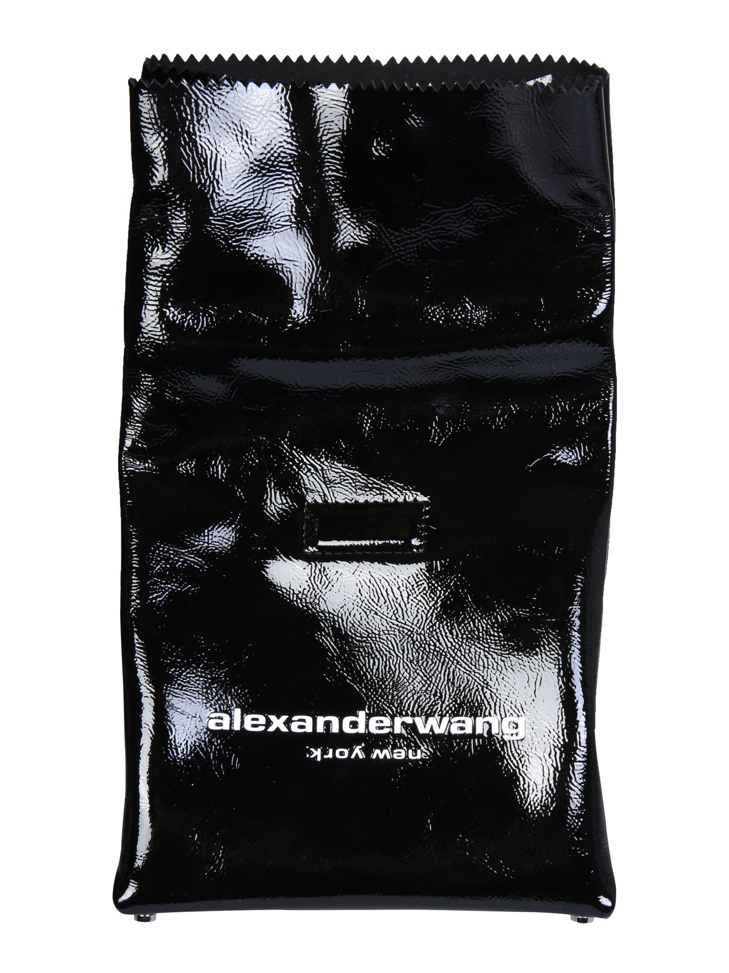 Embrace the latest fashion with the amazing and unique Lunch Bag Clutch from Alexander Wang. This pouch is made of quality leather for a classy appearance. It has suede inner for added durability. Featuring four metallic feet, you can place it wherever you want without worrying about anything. A hidden magnetic button closure makes this pouch an ultimate addition to your accessory collection.