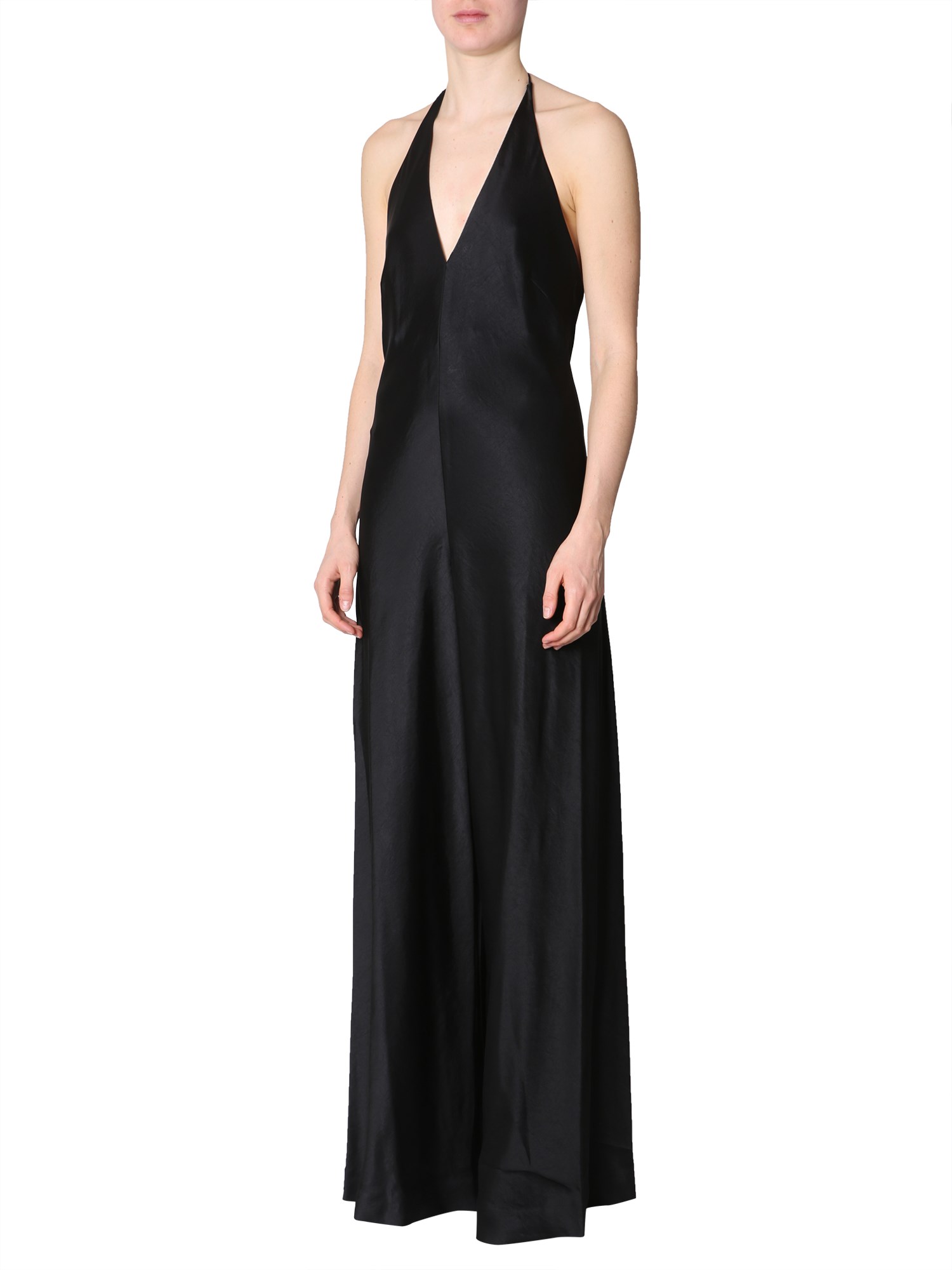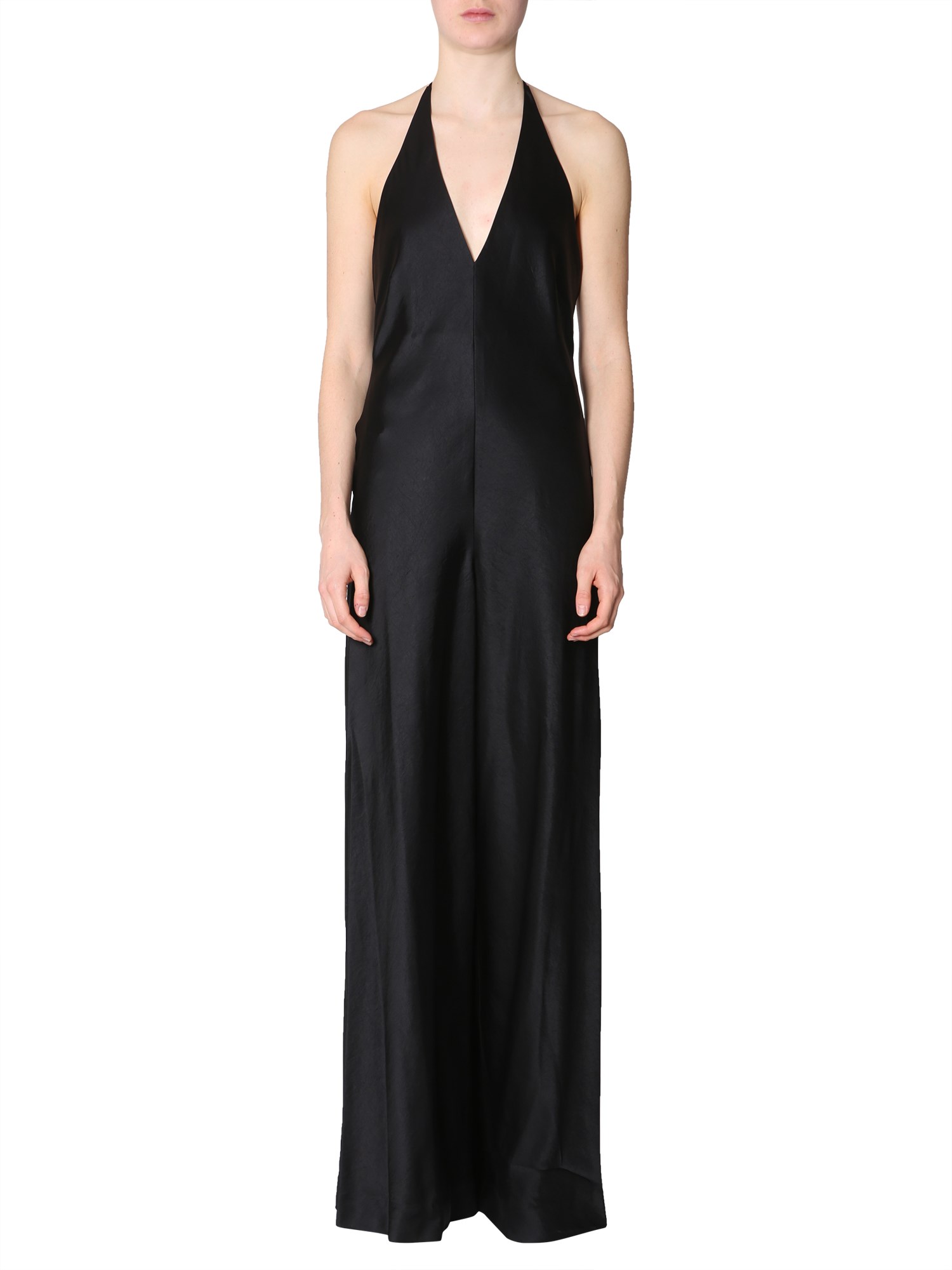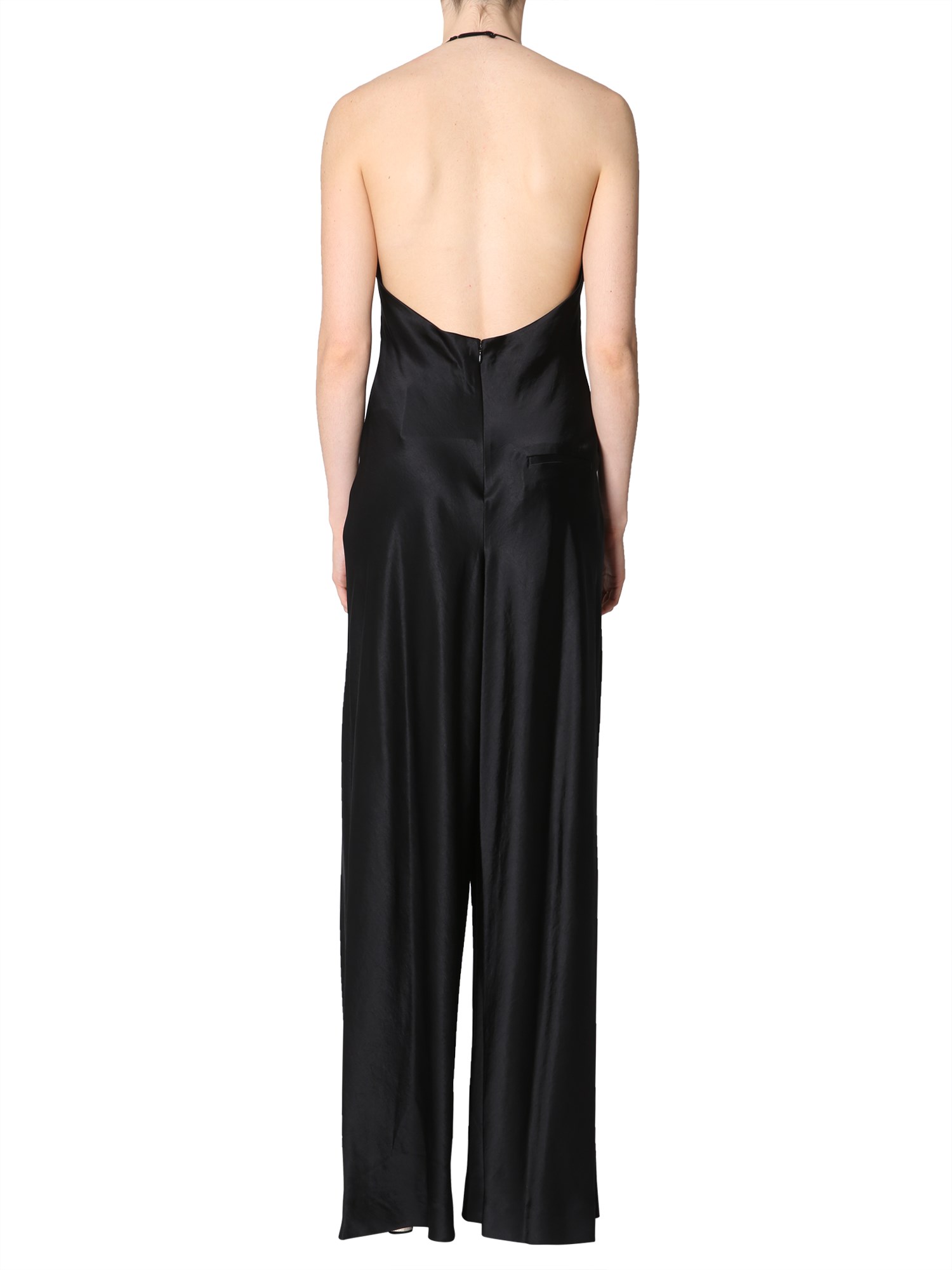 Talk about being simple and classy at the same time! This sleeveless jumpsuit by Alexander Wang. Elegance oozes from its loosely fit silhouette that begins with a plunging V-halter neck and ends with flared palazzo pants. An open back adds sumptuous edge to its style. The jumpsuit called in for platform heels or pointed toe pumps.