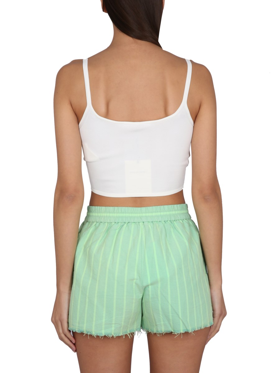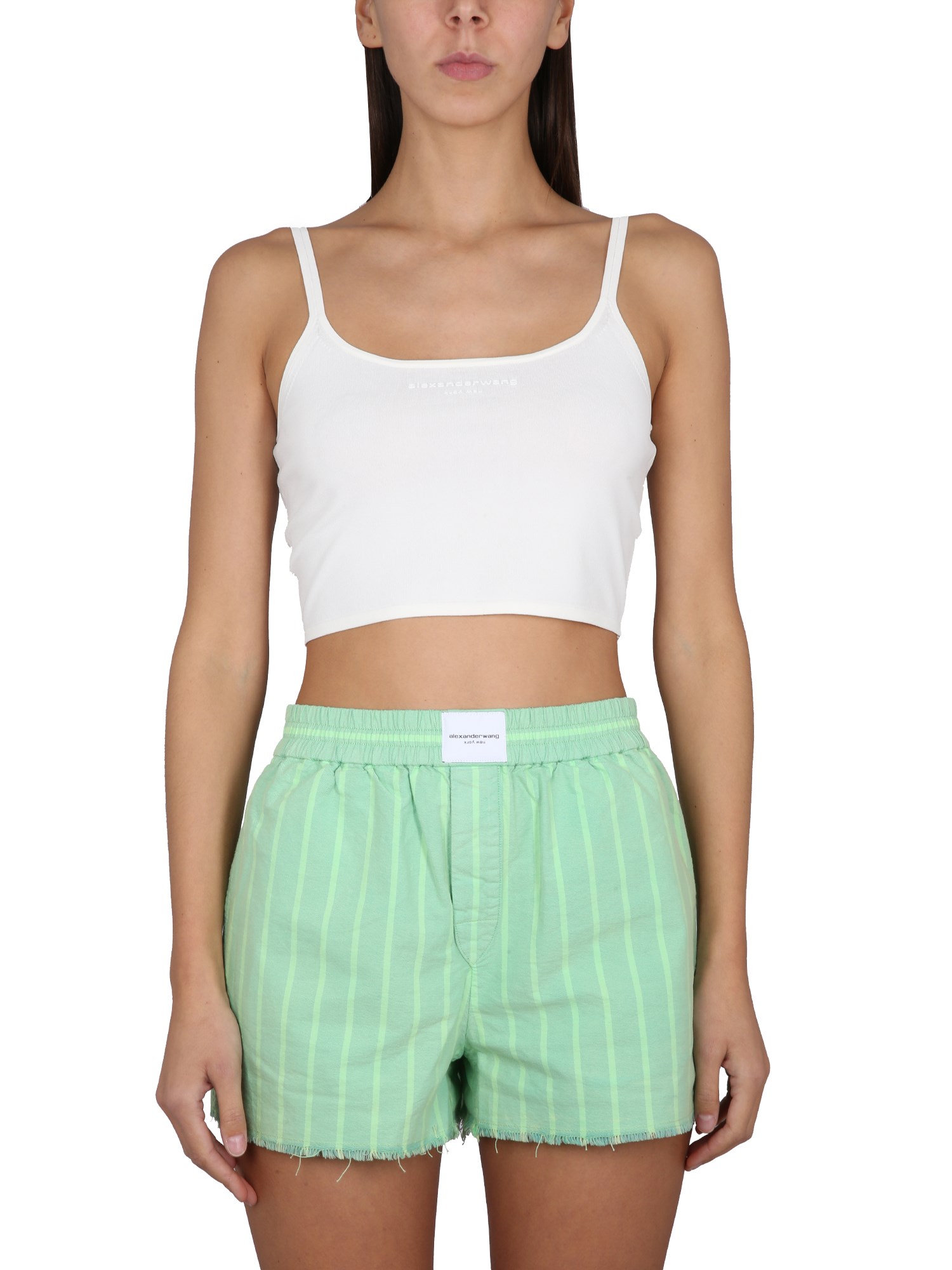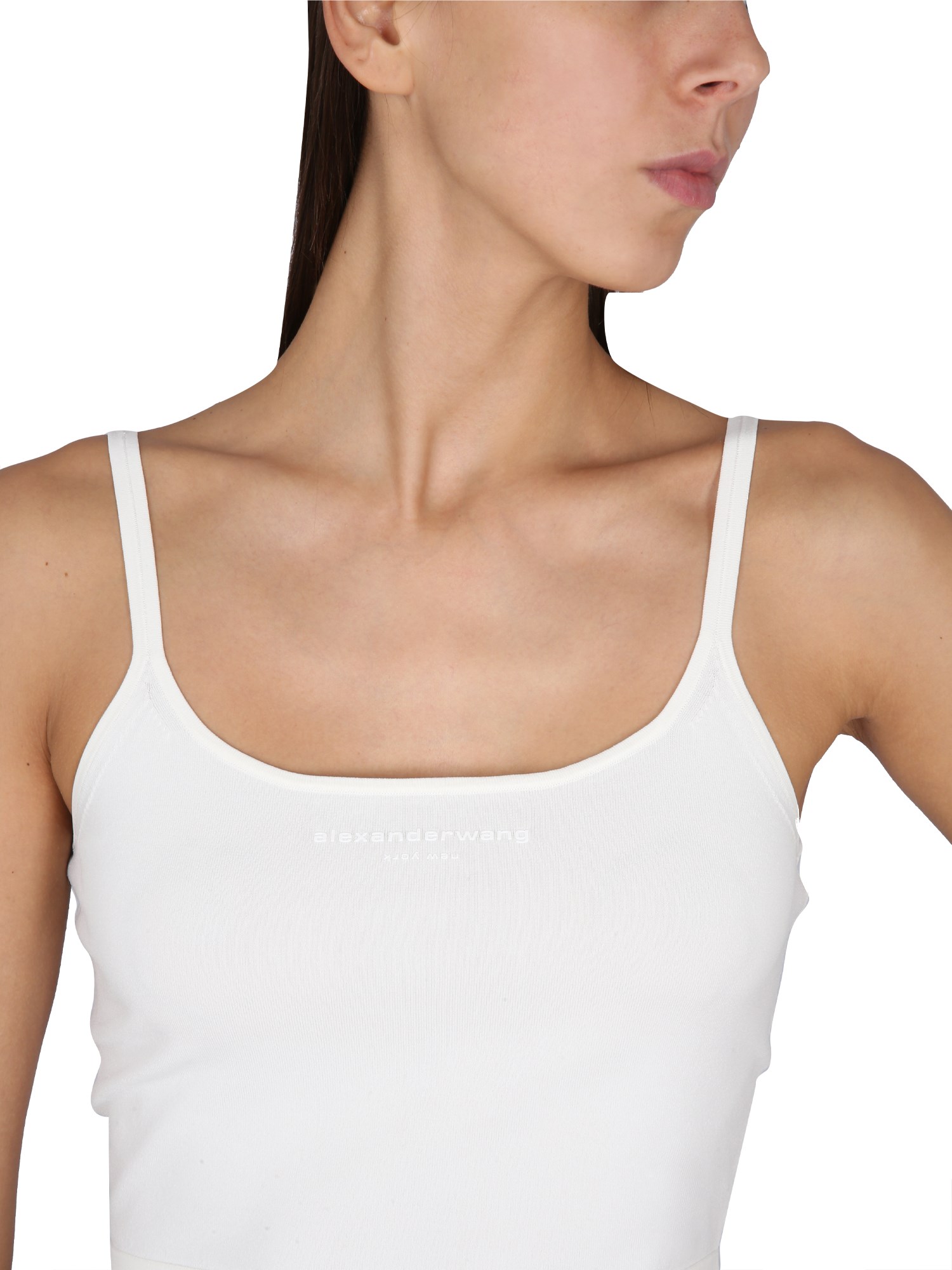 This top from Alexanderwang T. is perfect for the summer weather. With a round-shoulder design, it is perfect for adding a little flair to your outfit. With thin straps, it is the perfect go-to piece for a day of running errands. It is made of a stretchy, lightweight cotton and features a small logo detail at the front.