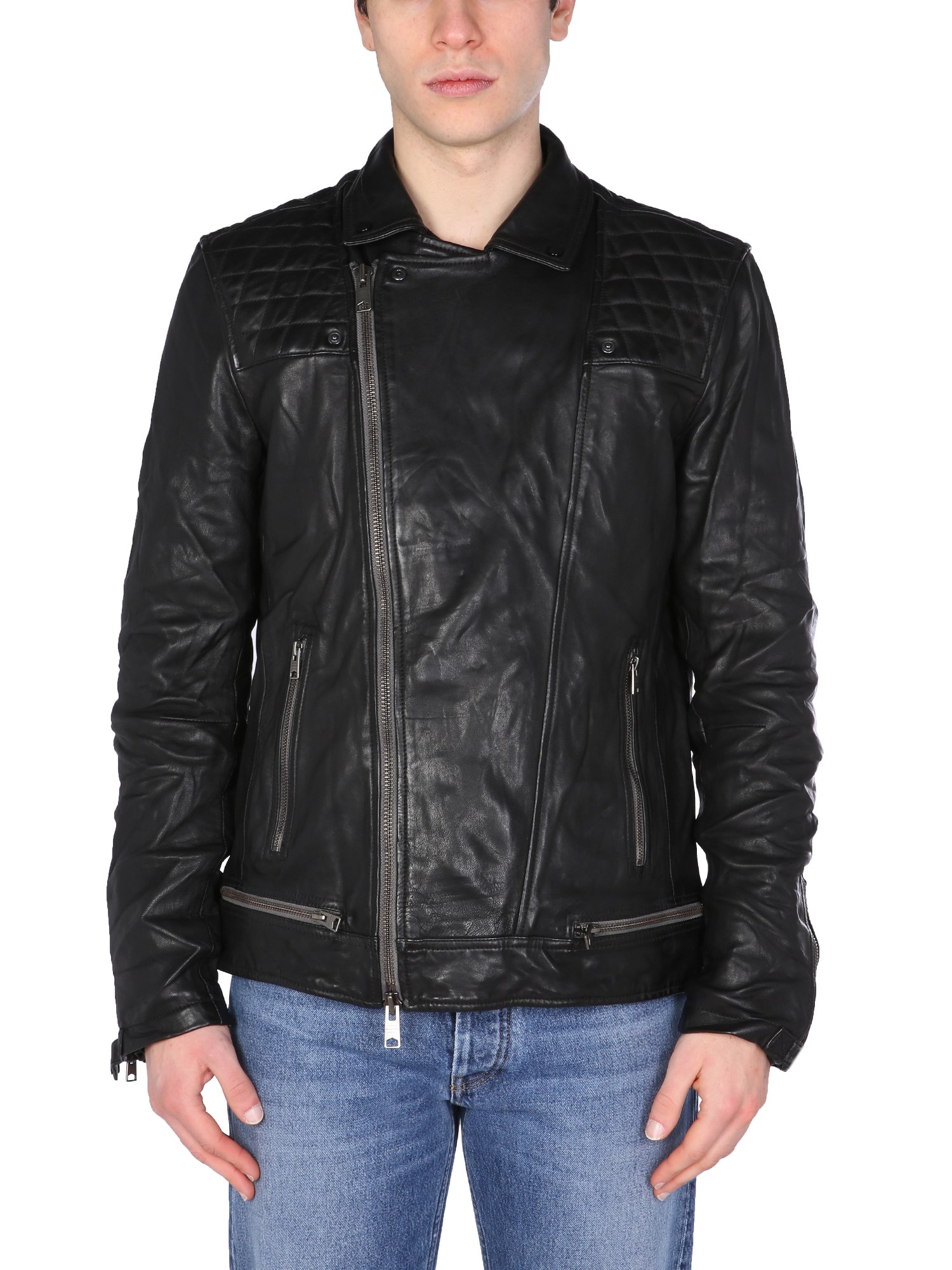 The Allsaints Front Zipper Leather Jacket is a staple piece that will keep you looking and feeling stylish. The front zipper closure will make this the perfect jacket for cold weather. This stylish jacket is made from genuine leather and features a zipper closure. This item is designed to be worn both in the office and out and will make a great addition to any wardrobe.
