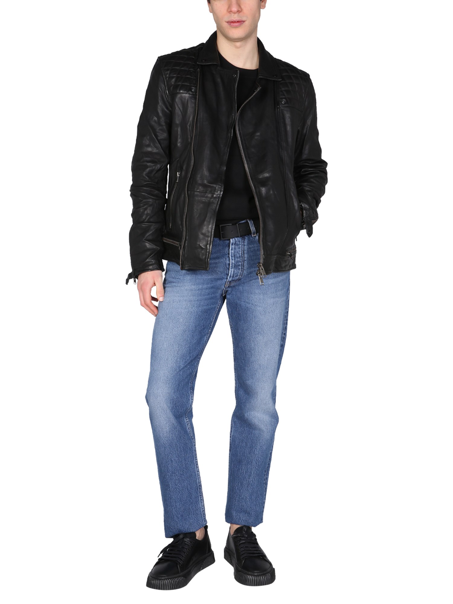 The Allsaints Front Zipper Leather Jacket is a staple piece that will keep you looking and feeling stylish. The front zipper closure will make this the perfect jacket for cold weather. This stylish jacket is made from genuine leather and features a zipper closure. This item is designed to be worn both in the office and out and will make a great addition to any wardrobe.