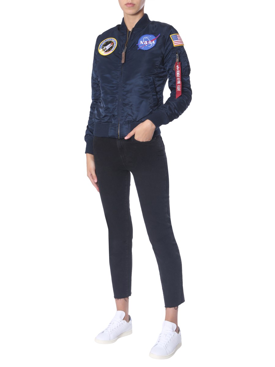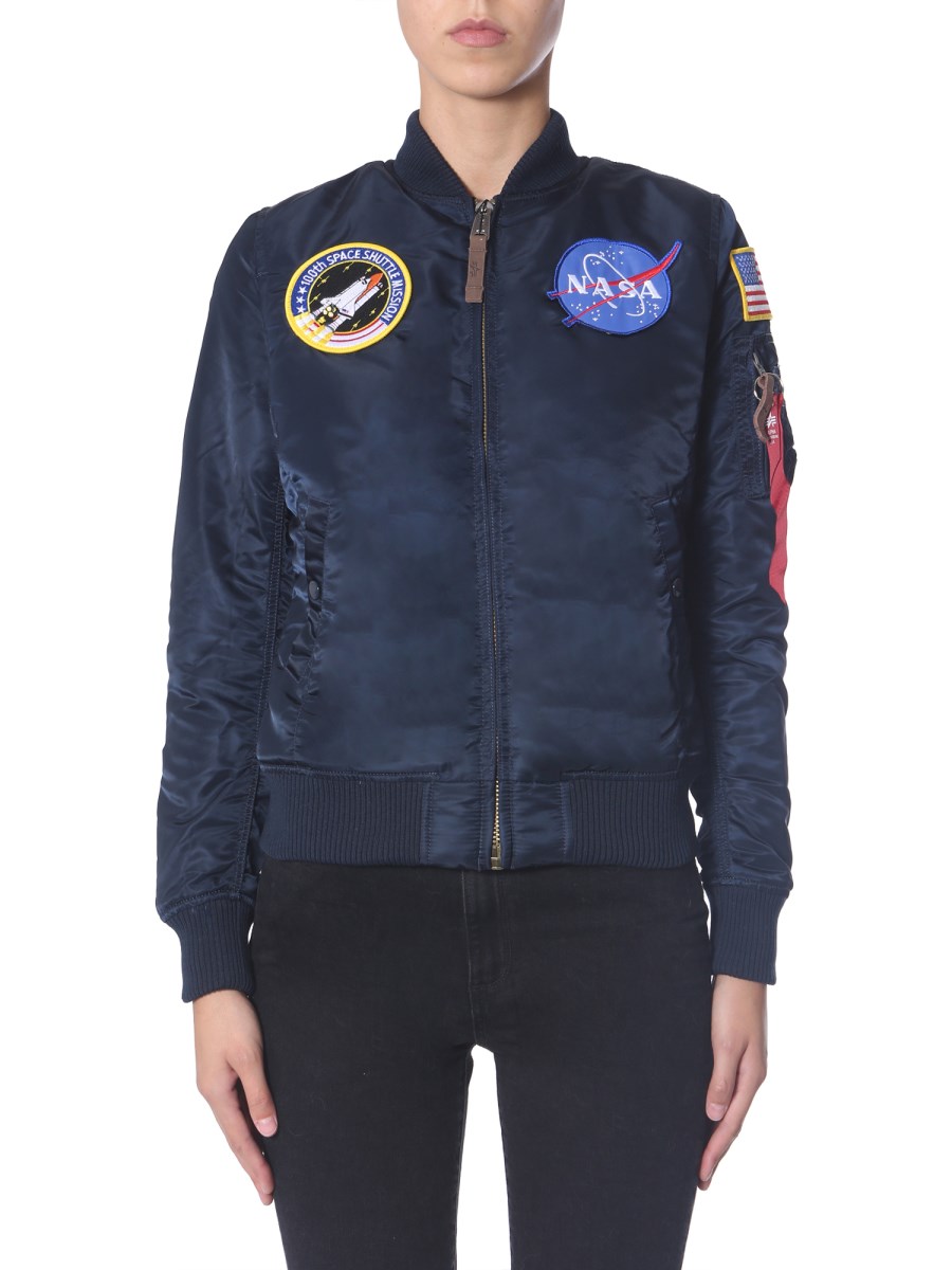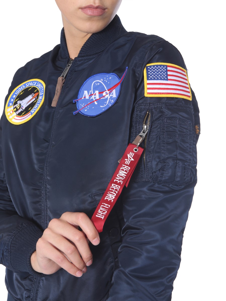 Show off your love for space by adding this MA-1VF NASA jacket from Alpha Industries to your closet. With a nylon exterior and polyester padding, along with a full zip closure at the front, this jacket keeps you warm and snug. Moreover, the two side pockets are enclosed with pressure buttons for keeping small things.