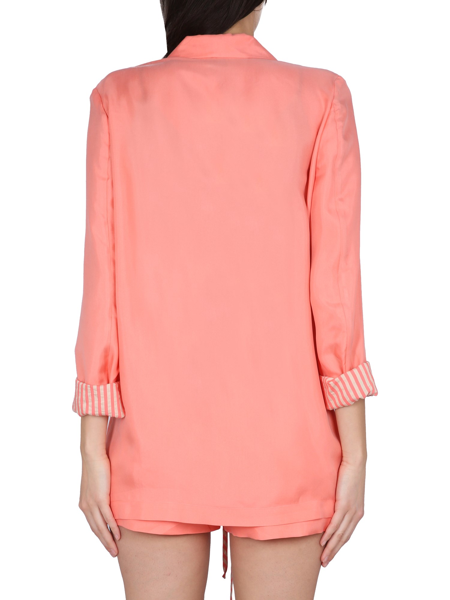 The silk twill jacket from Alysi is made from a breathable and moisture-wicking fabric that makes it a comfortable piece to wear all day long. It features peaked lapels, long sleeves, and front button closure. The regular-fit jacket has one chest pocket and two front patch pockets.