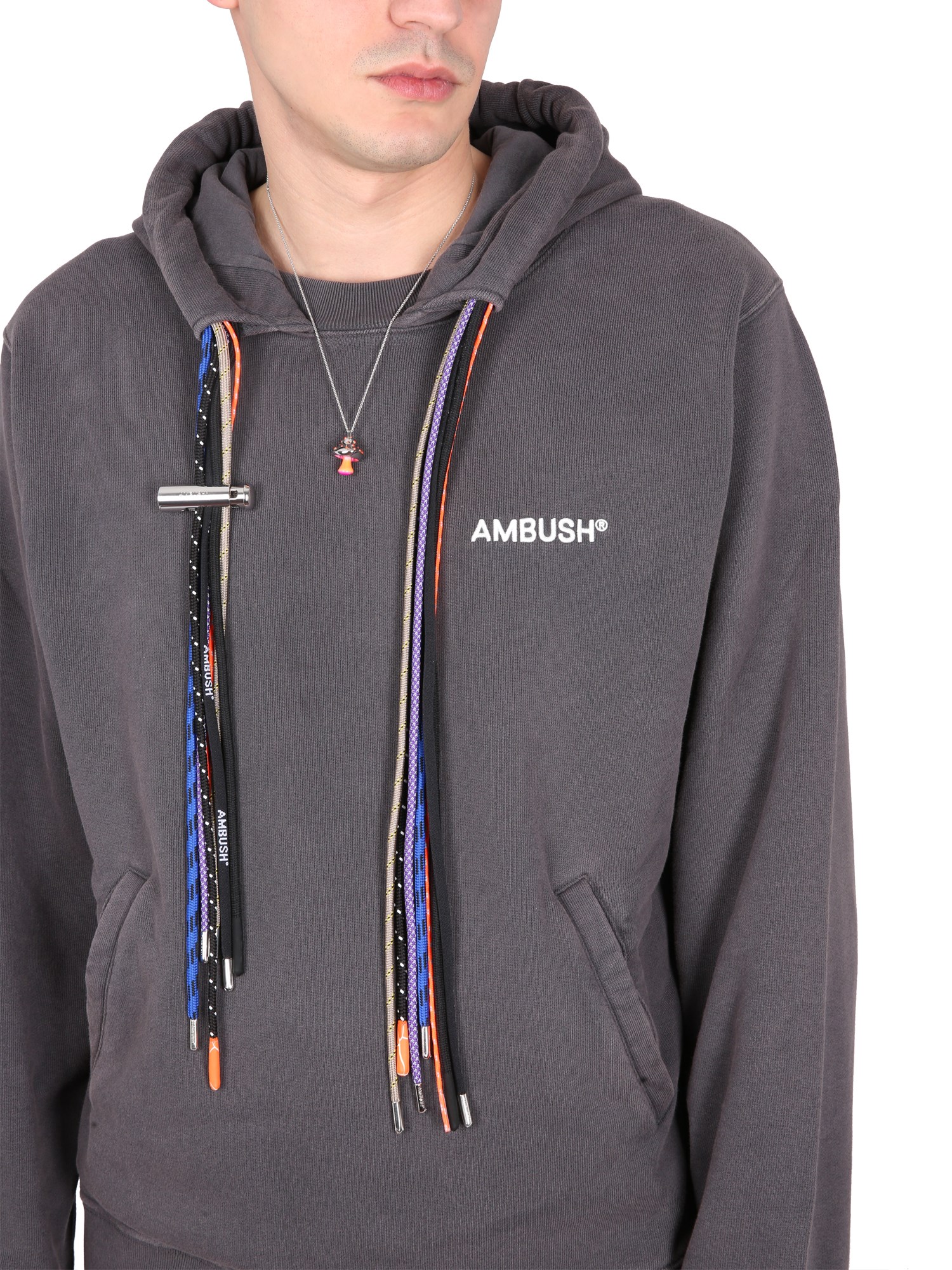 This cosy hoodie from Ambush is perfect for fall and winter, and the oversized hood and drawstring make it perfect for keeping the chill off. This is a super comfortable and stylish hoodie that is perfect for any season. It has a large hood that covers your entire head, a pouch pocket, and a relaxed fit.