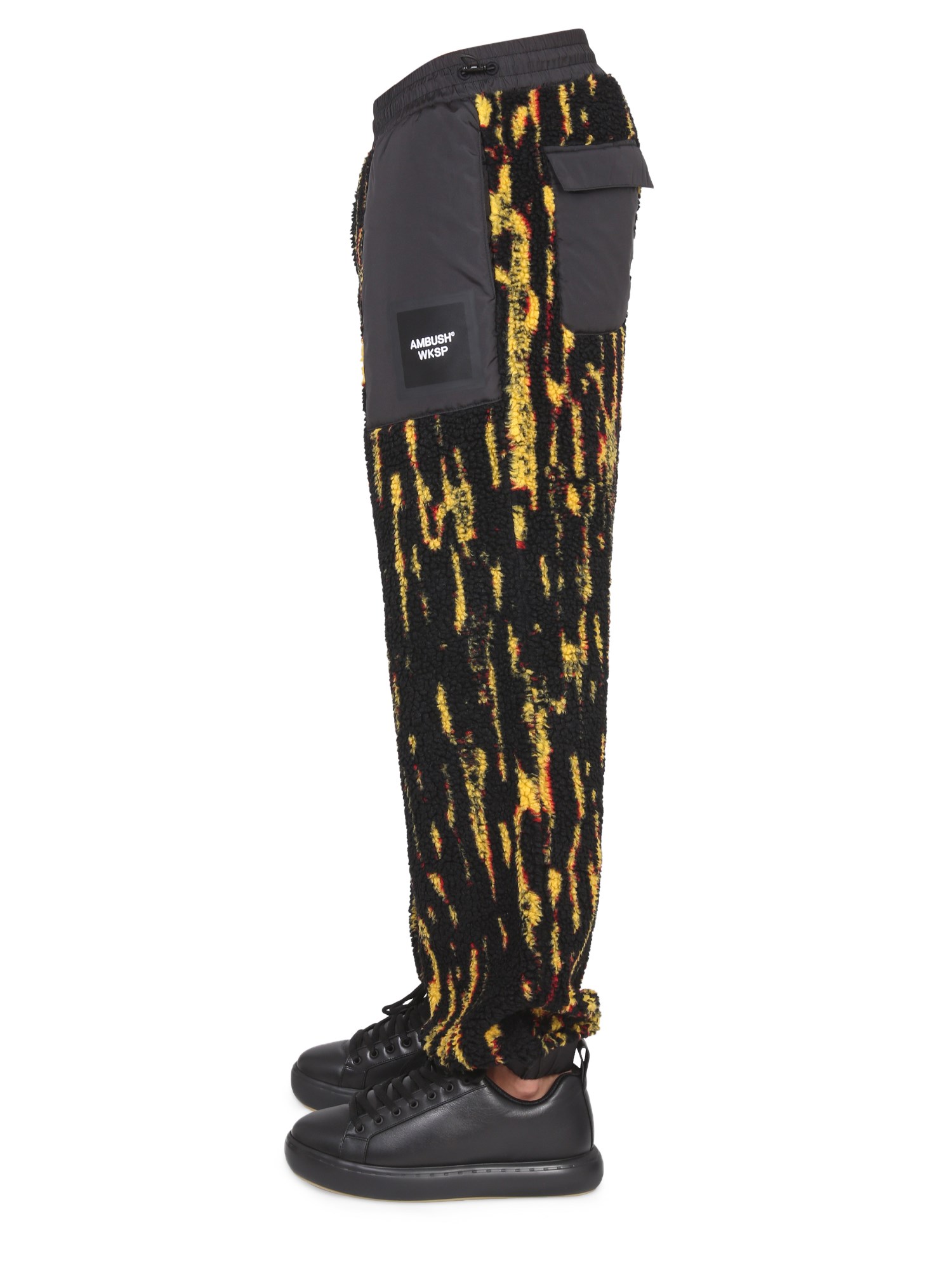 These jogging pants from Ambush are a perfect fit for active people looking for a relaxed fit. They have a drawstring waistband with an elastic band and a jacquard pattern. They are made of 100% polyester that is soft and comfortable, making them a perfect pair for relaxing and casual wear.