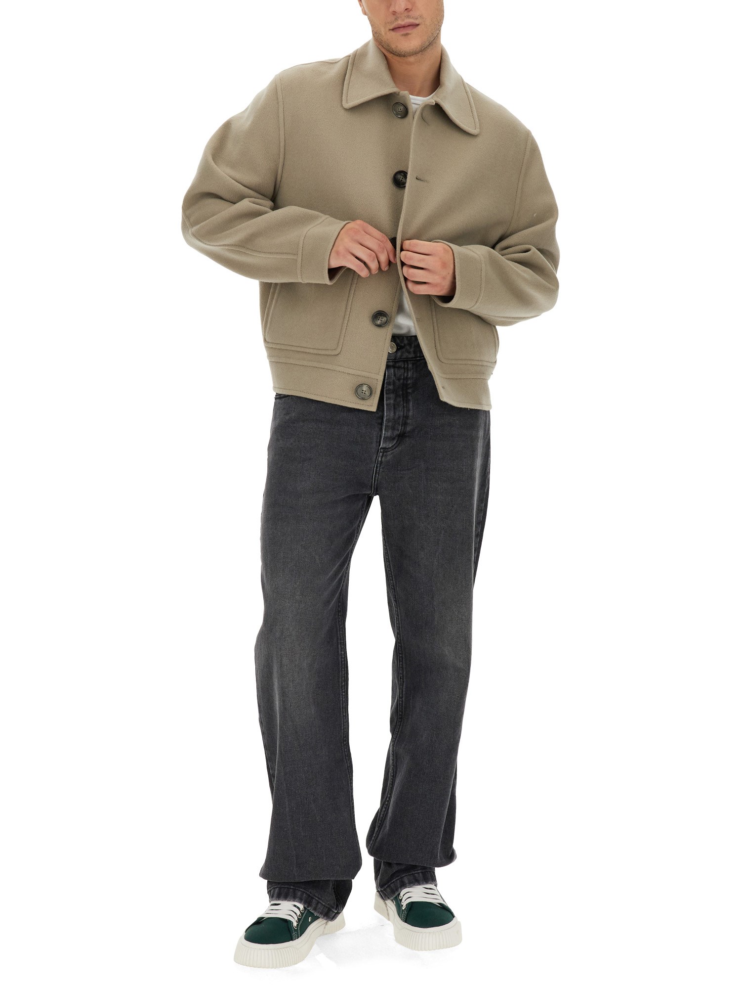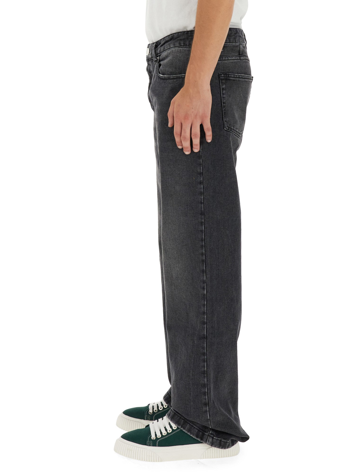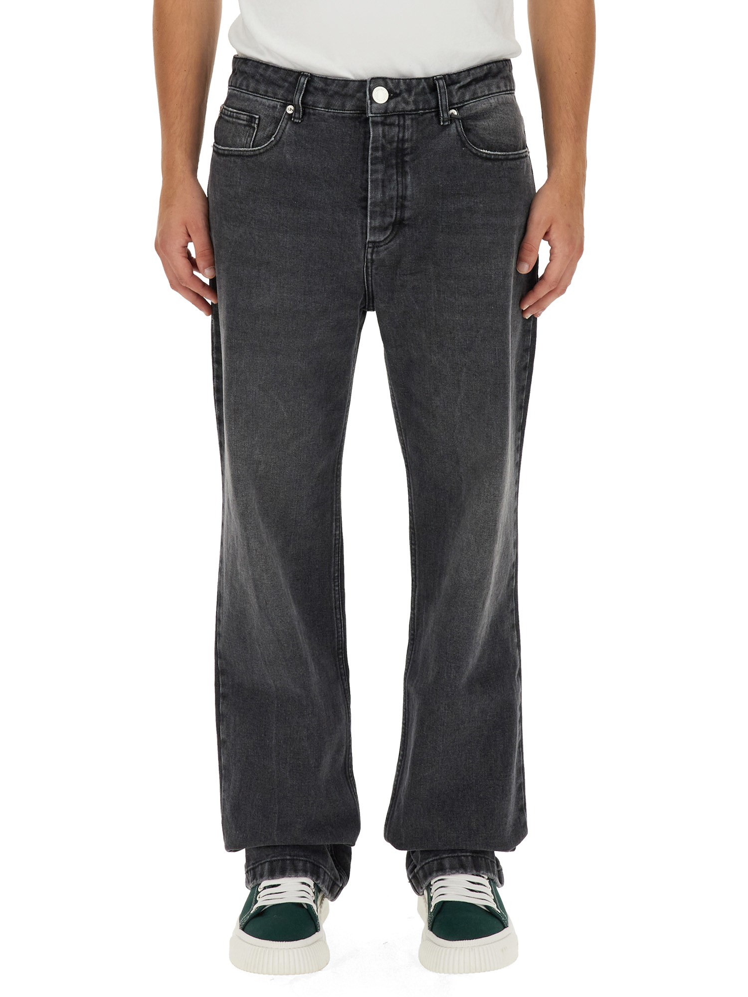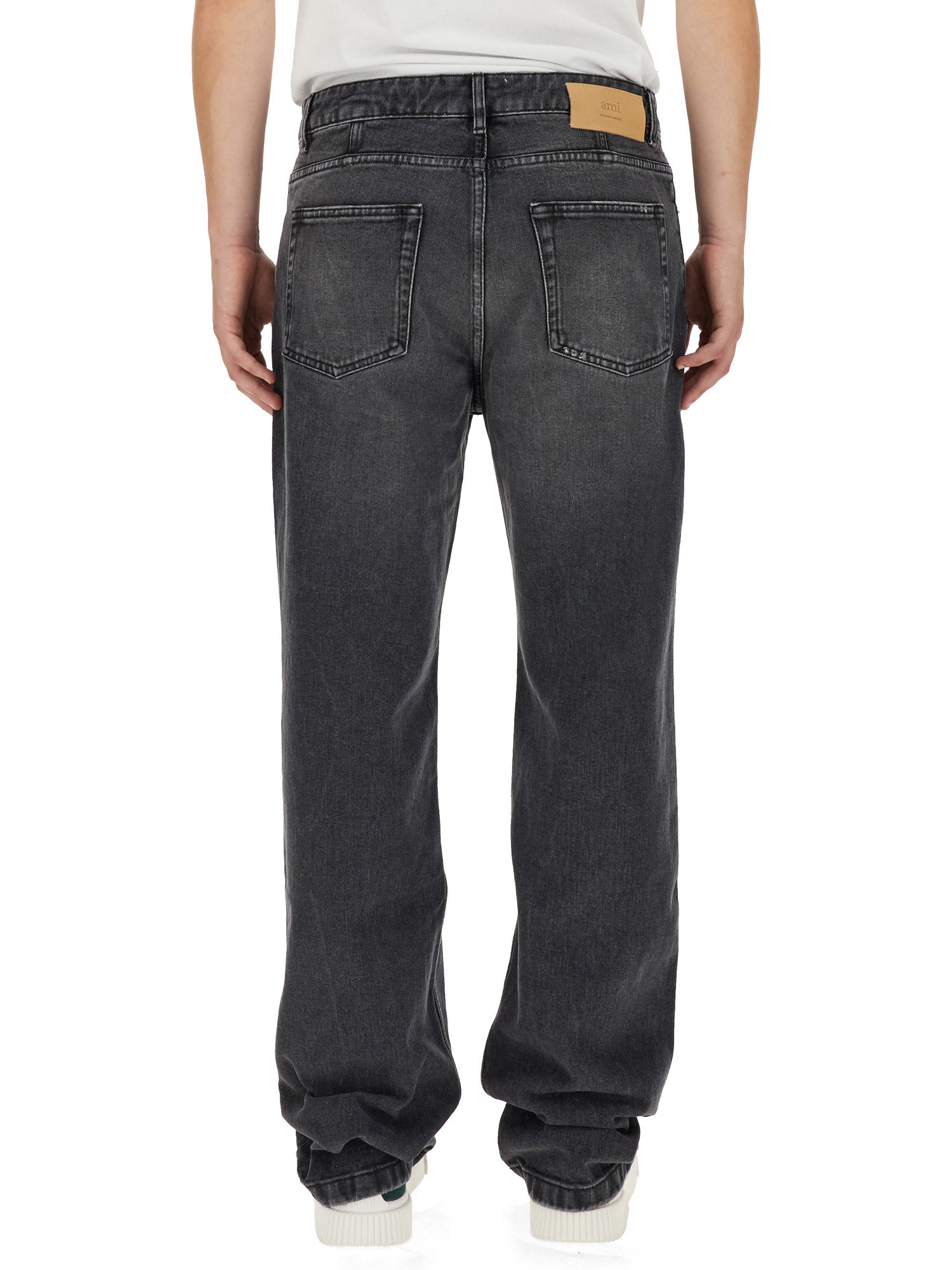 In this straight-leg, Ami Paris jeans with a button and zip closure, dare to expose. The classic style of these jeans has a contemporary twist. They have a relaxed appearance thanks to the dark denim. A timeless pair of jeans with a straight leg is always a good choice. These jeans come in a fashionable design that has been popular for a while.