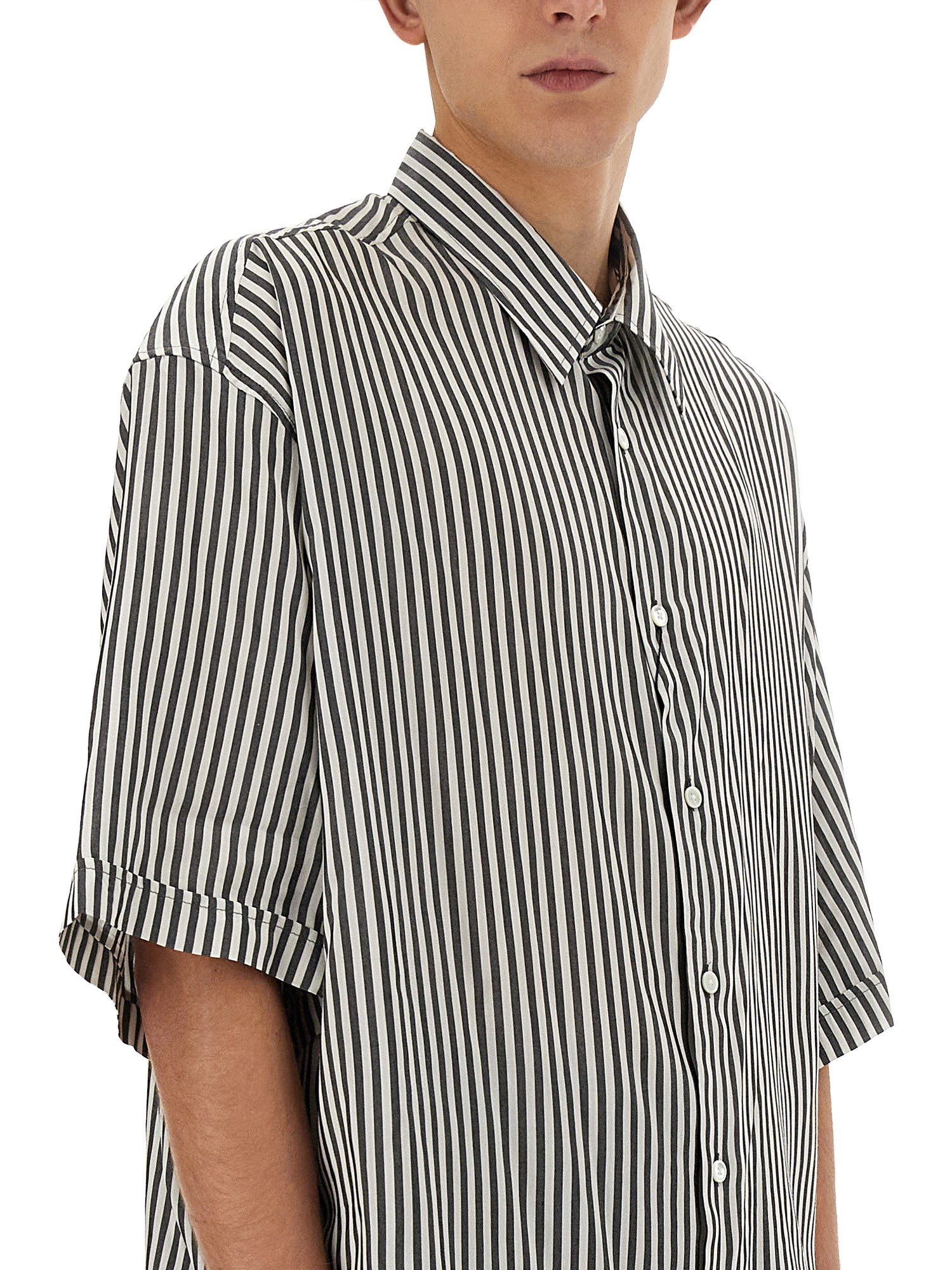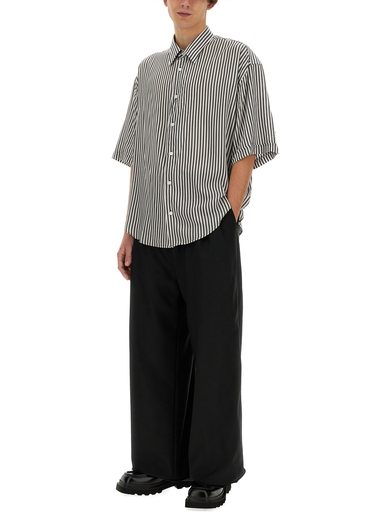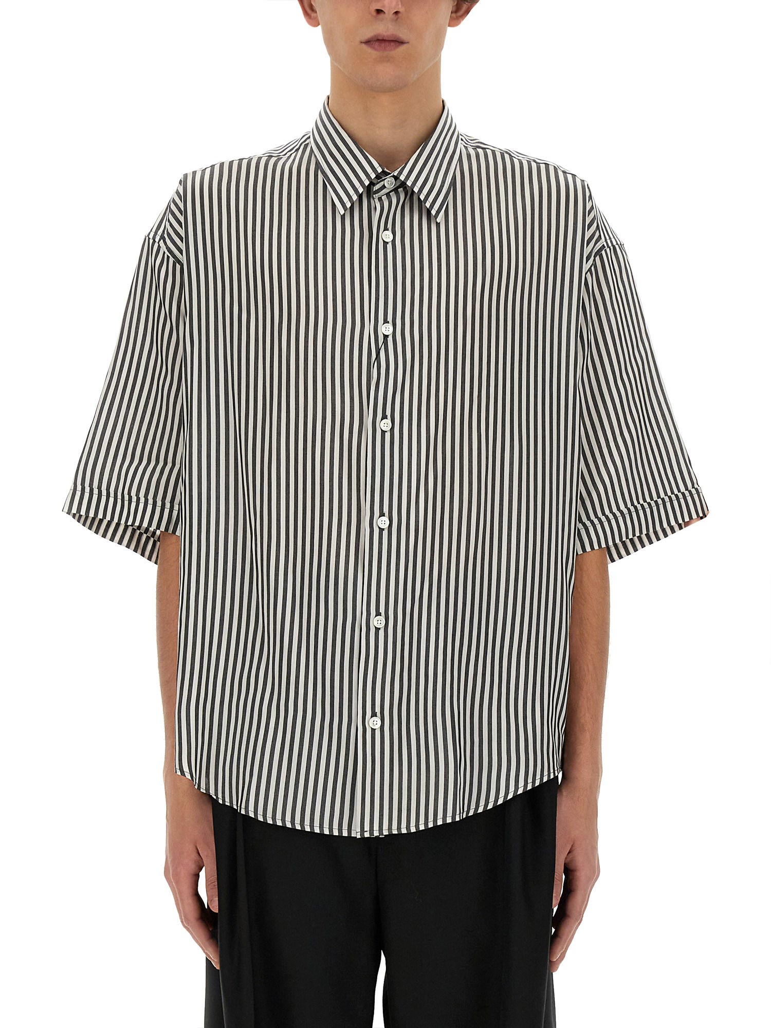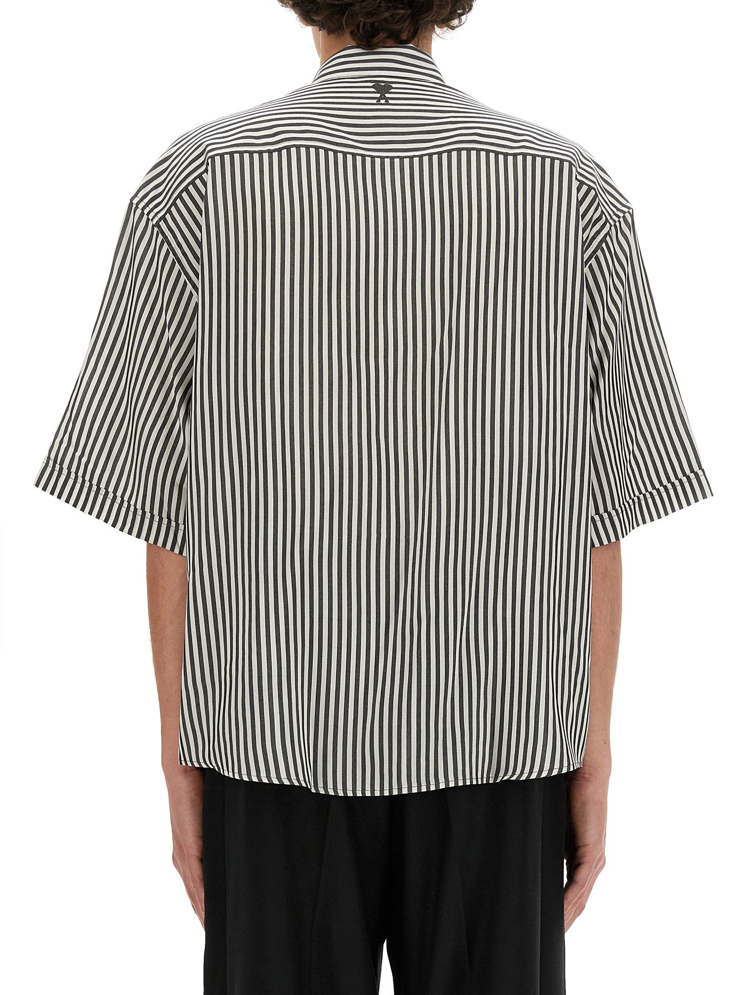This shirt from Ami Paris combines comfort, style, and versatility, making it a staple in any wardrobe. The boxy fit of this shirt provides a relaxed and effortlessly chic look, allowing for ease of movement and a comfortable fit. The striped design adds a touch of sophistication, bringing a classic and timeless appeal to your ensemble.