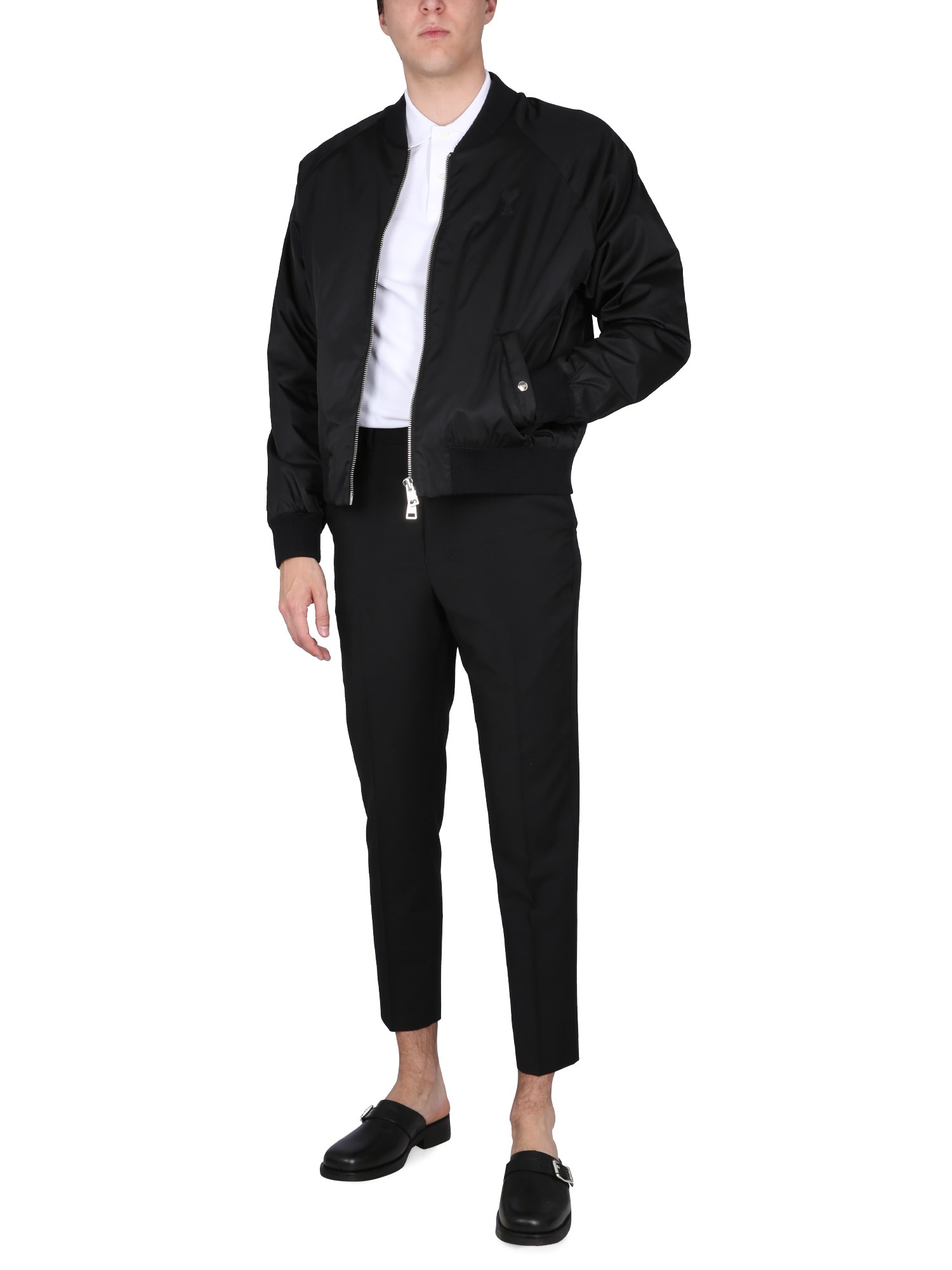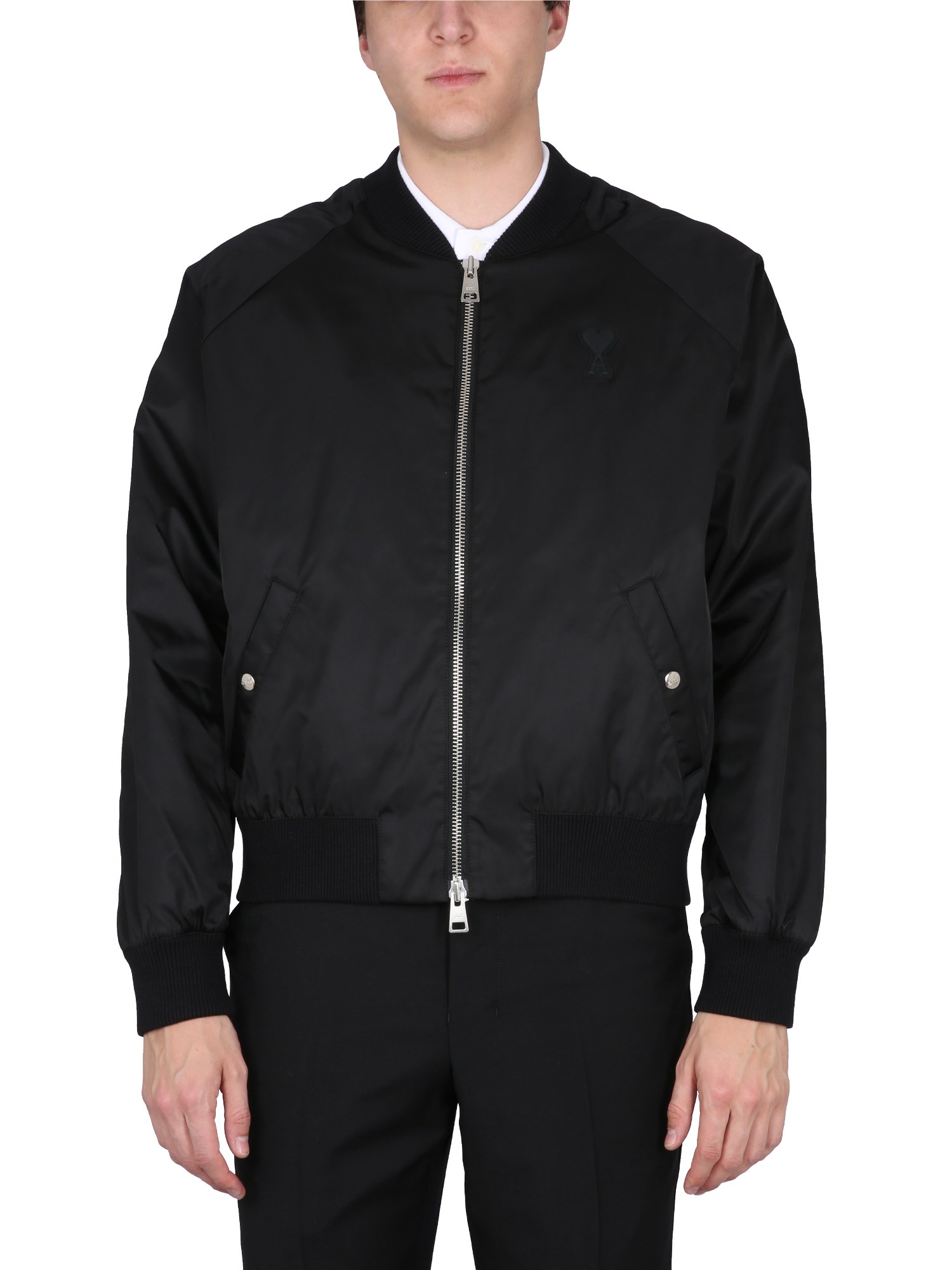 This Bomber Jacket from Ami Paris is made of a durable, yet lightweight material. It features a zipper closure, two side pockets, and a patch on the chest with the name of the brand. The two side pockets are ideal for storing your small belongings, and the zipper closure adds to the functionality.