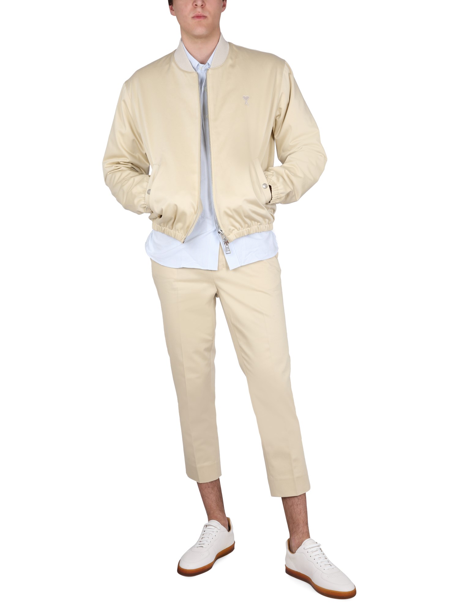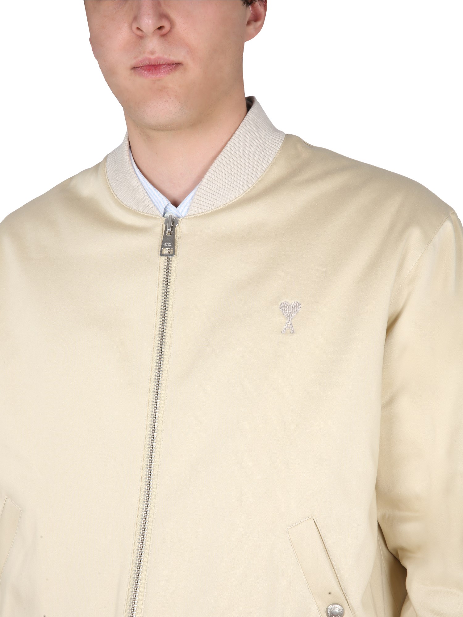 The ideal fall layering piece is this bomber jacket from Ami Paris. It has a cotton blend construction, varsity collar, front zipper fastening, tone-on-tone front logo embroidery, and. A smooth and cosy cotton blend is used to make the jacket. This bomber jacket is a necessity for every fashionista's closet because they are a wardrobe classic.